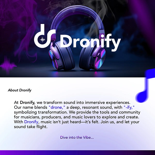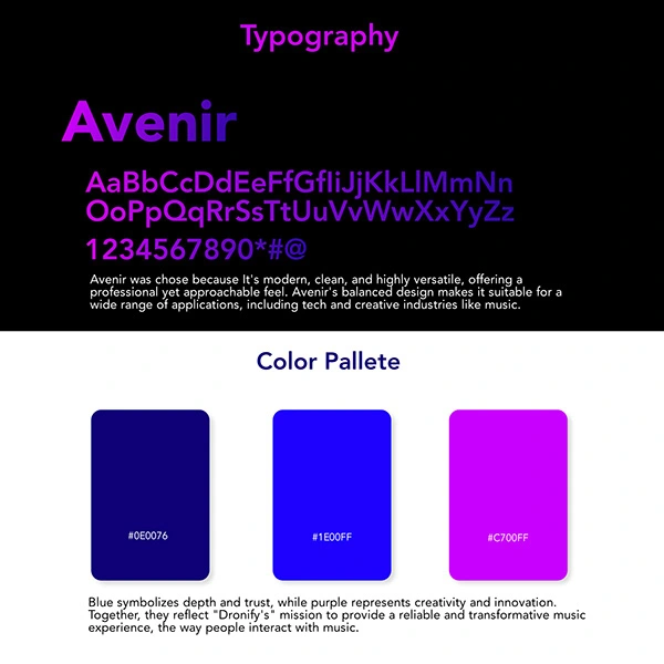 I Designed a bold, modern identity for Dronify to help them compete visually with major music apps and build instant trust with young digital users.