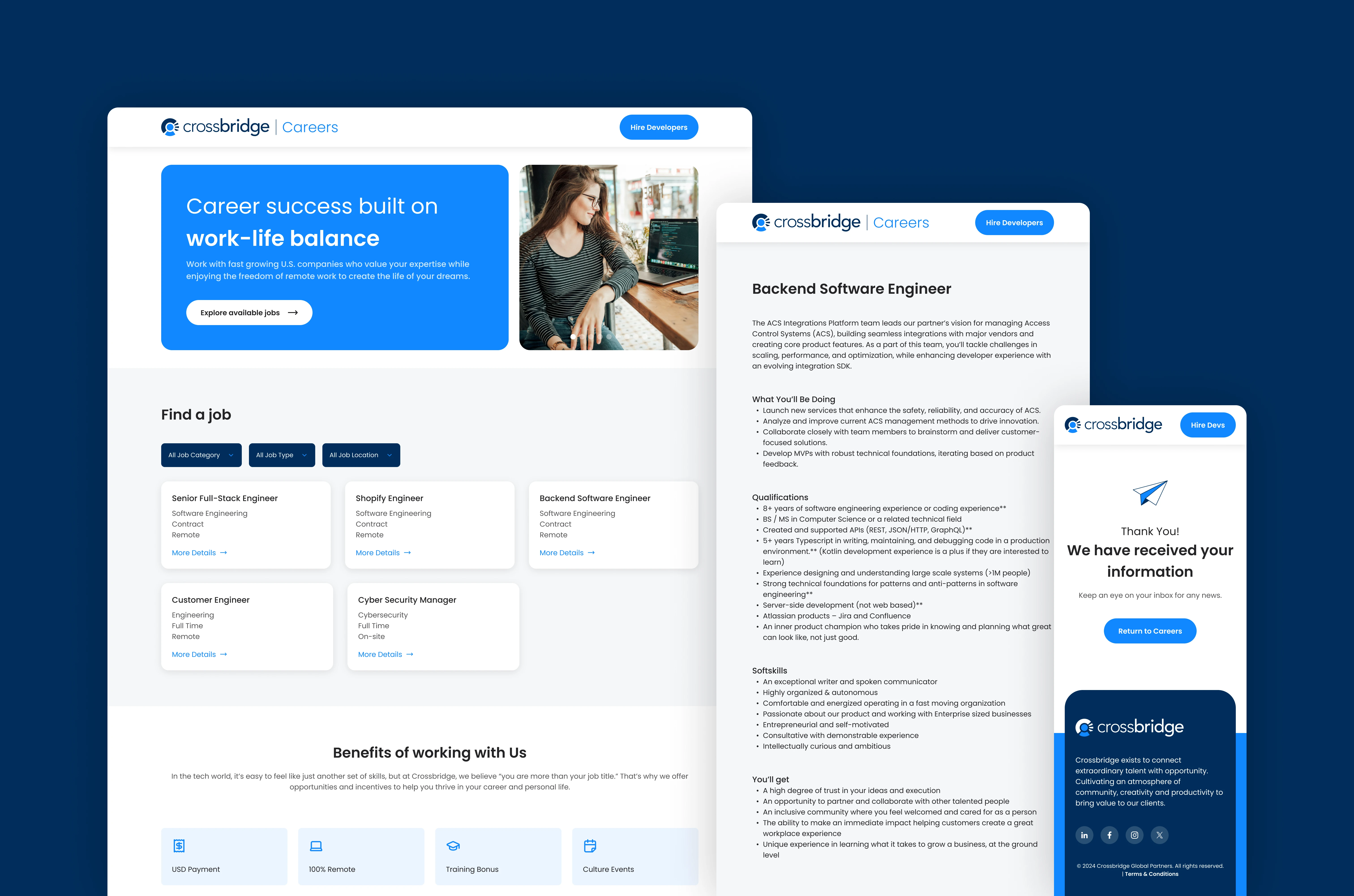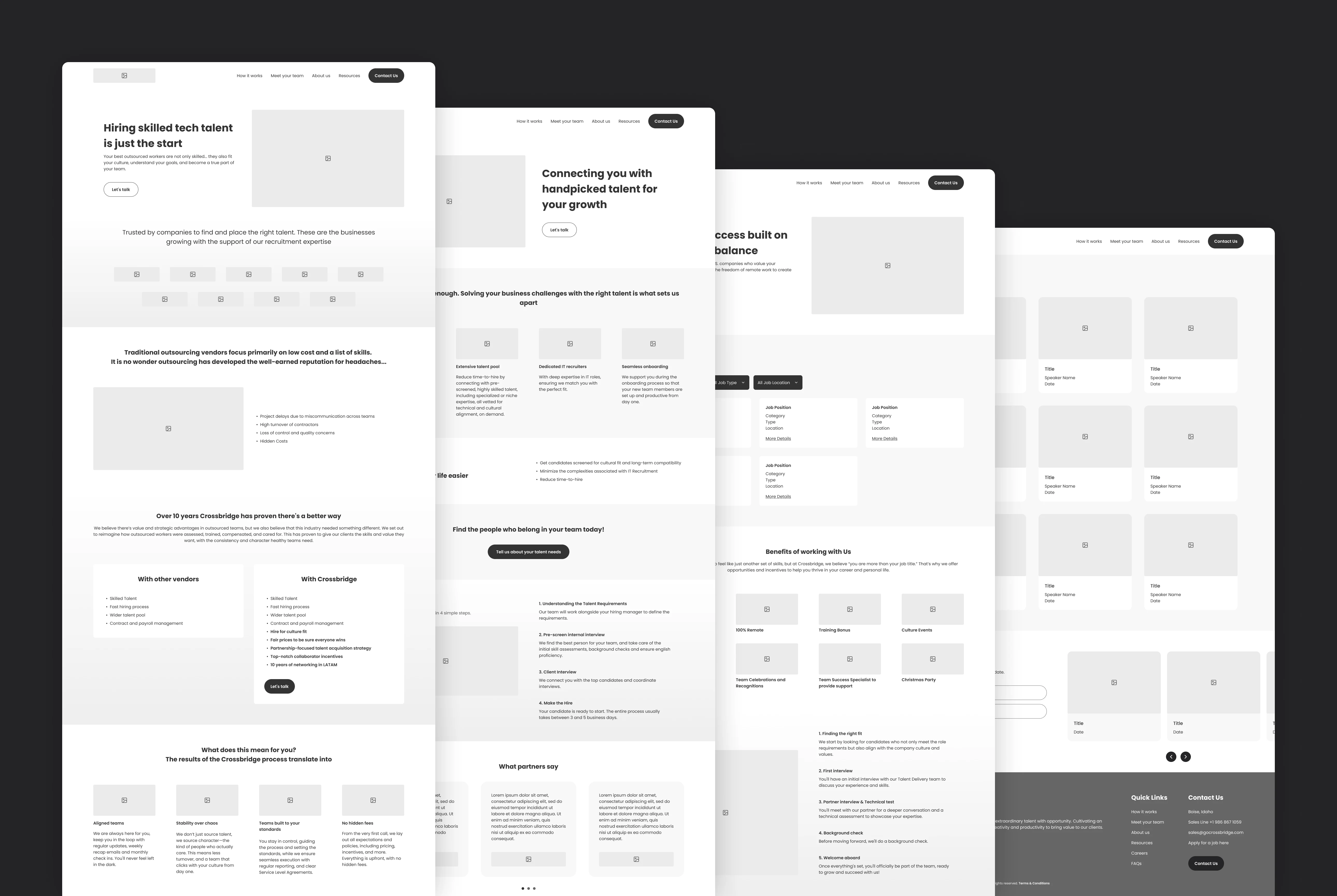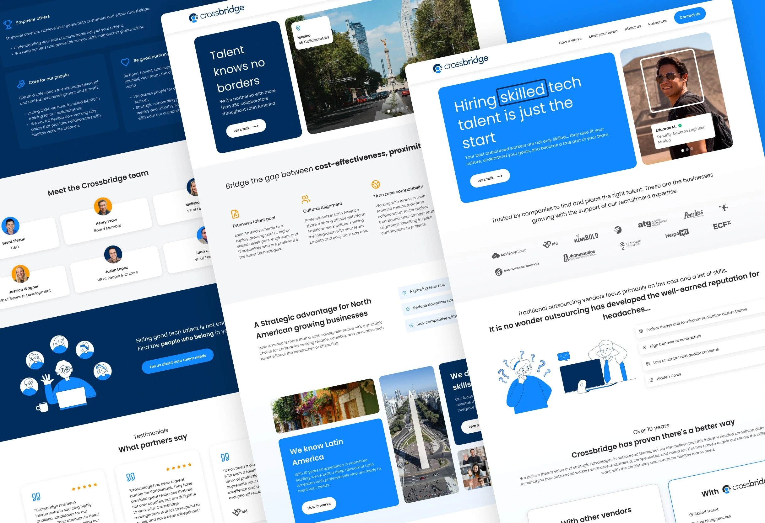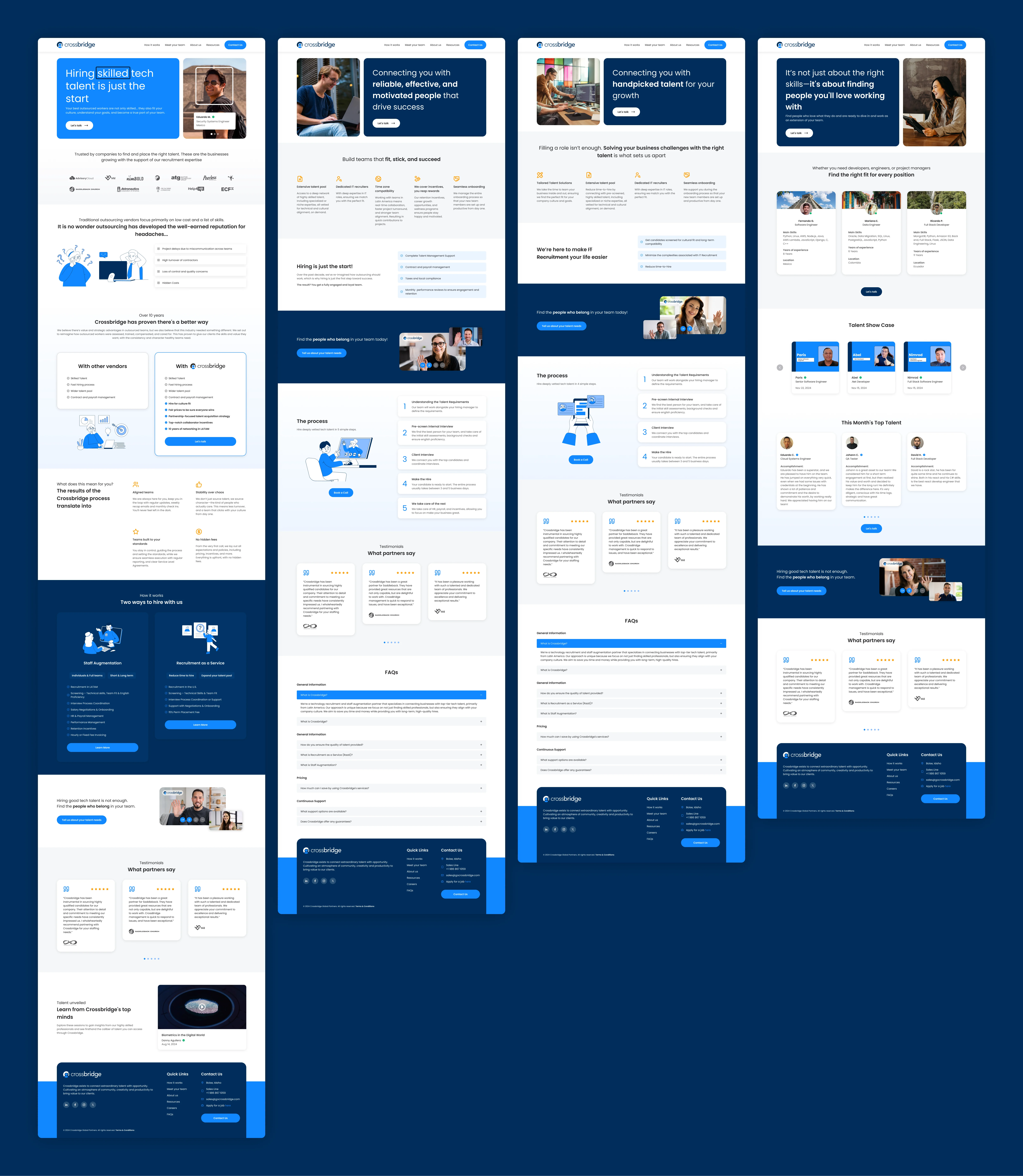 Before the latest redesign, Crossbridge’s website underwent two earlier versions. The first had a dark and outdated aesthetic, with limited functionality that did not effectively showcase the company’s services or mission. I joined the project during the second version, where my role was to refine the existing design by aligning it with the company’s brand colors, unifying typography, ensuring responsiveness, standardizing margins and paddings, and removing distracting text animations. While these adjustments brought some improvements, the site retained a dark theme and lacked the thorough, user-focused approach implemented in the latest version.
