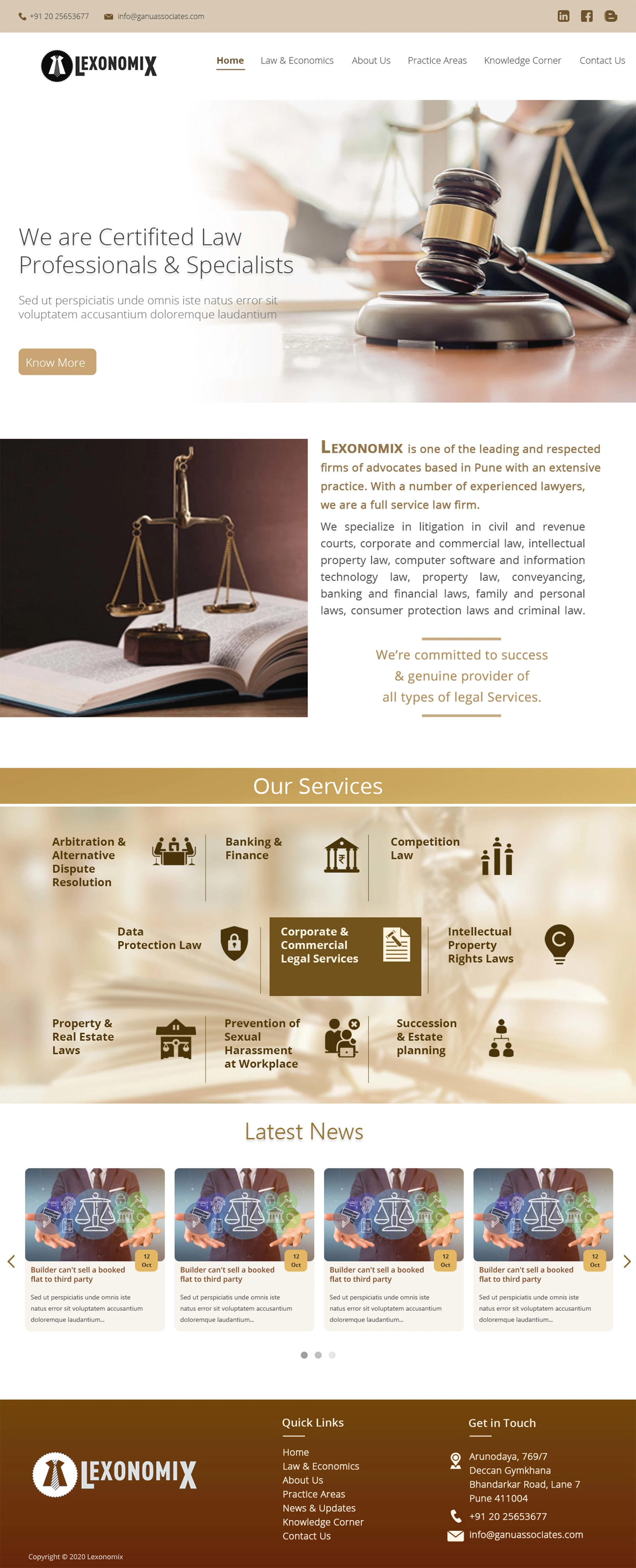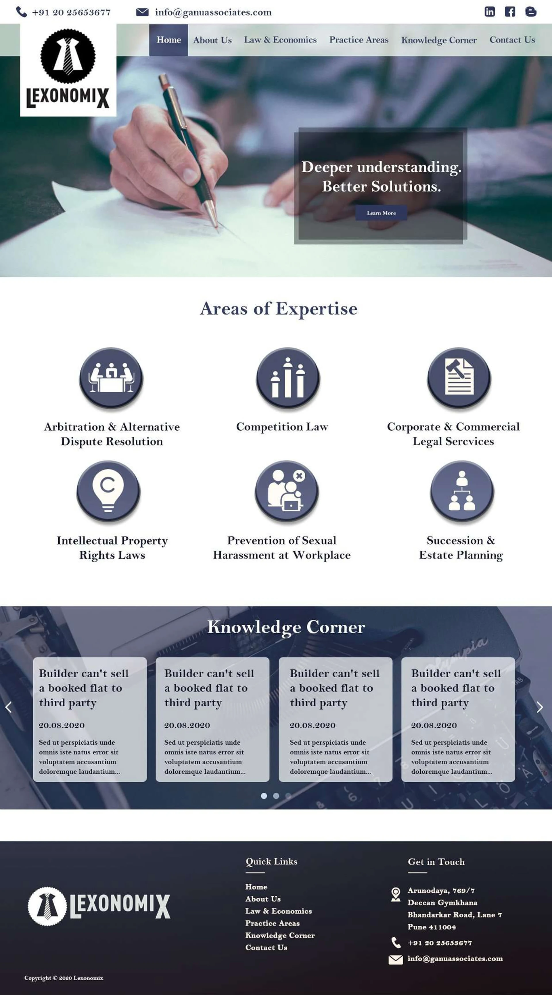 Lexonomix is a legal advisory firm based in Pune, India. Equipped with a team of dedicated legal professionals with academic qualifications and specializations in law for different industries, they wanted to create a landing page that will not only advertise the services that they offer but also the various minutiae regarding legal rights and current legal news. I prepared two themes—one is yellowish with a light, eloquent thematic scheme and another with royal bluish with a darker, more serious ambience.