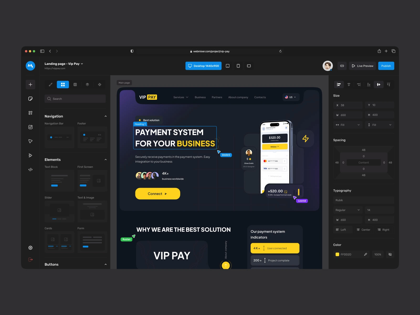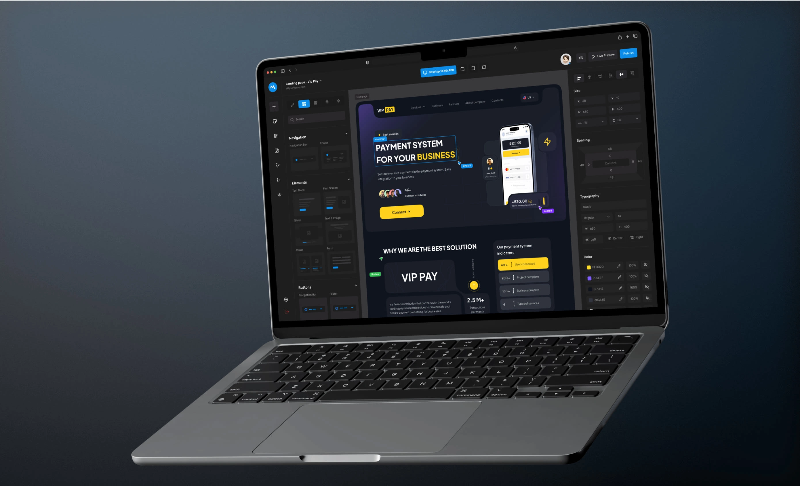 An advanced no-code builder for creating websites and web projects block by block — with a ready-to-use library of pre-designed components for faster and more flexible development