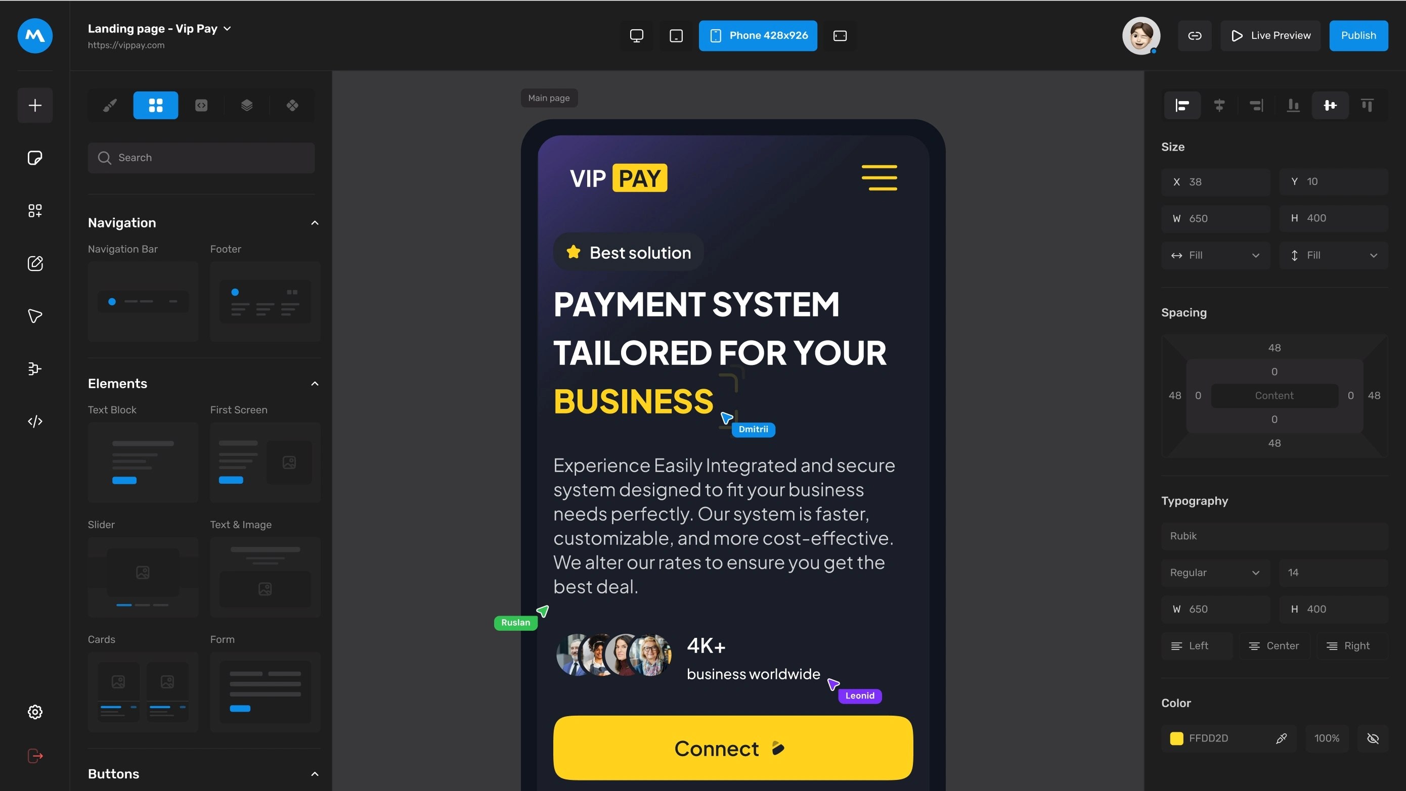 Collaborated with developers to implement a drag-and-drop constructor with a library of pre-built blocks. Delivered complete UI kits and interaction logic to ensure accurate, scalable, and efficient feature implementation