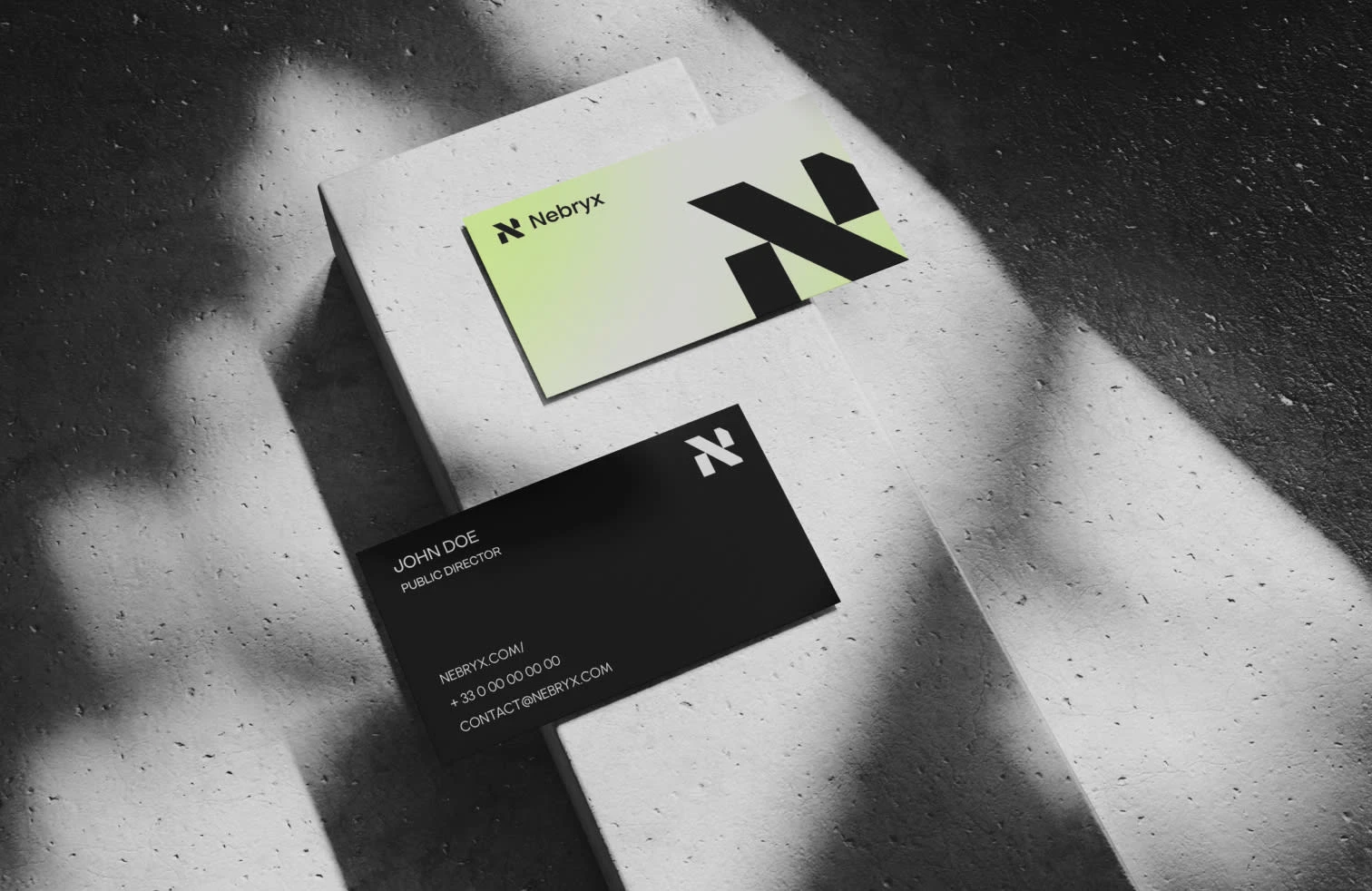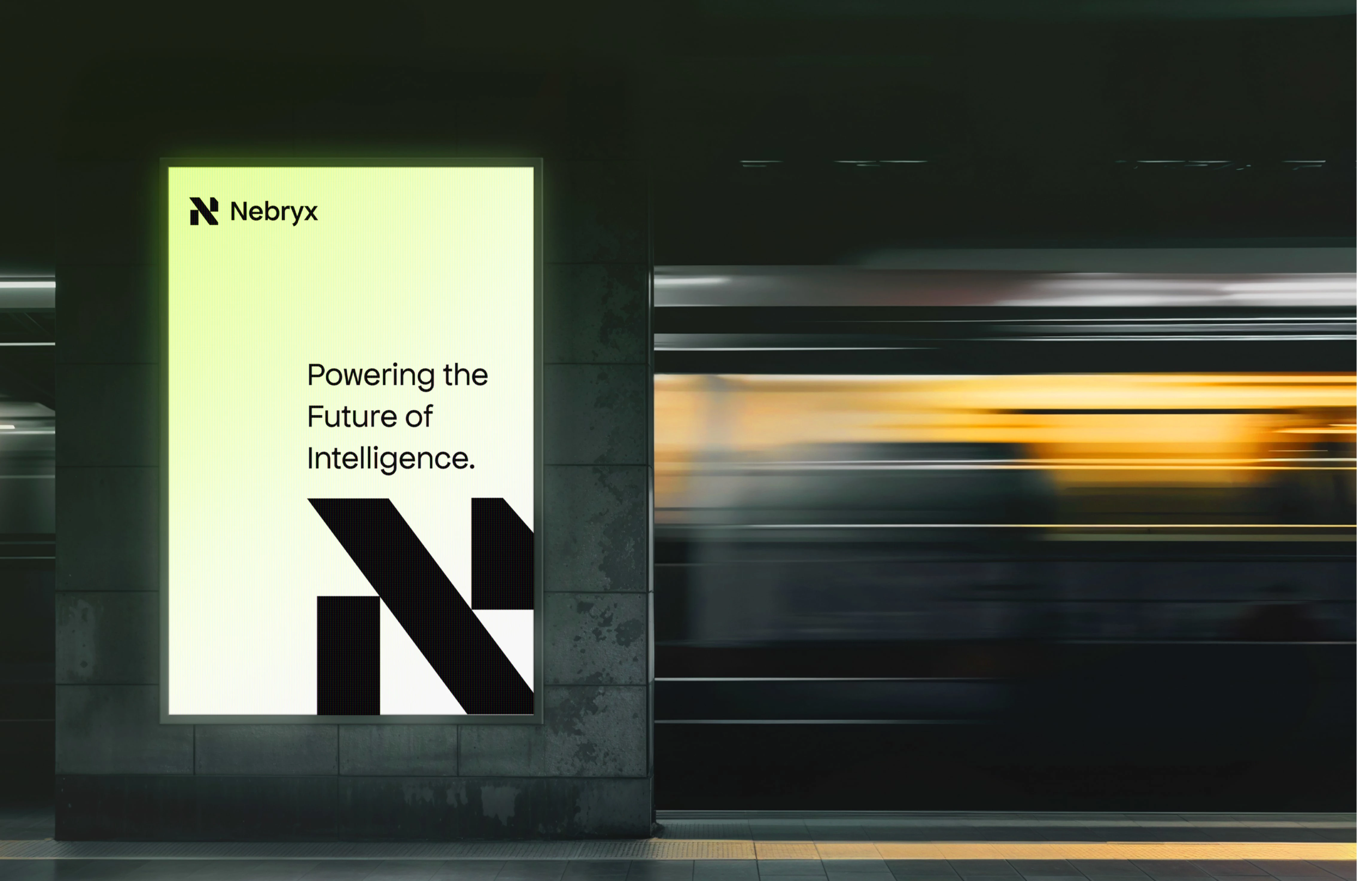 Visual identity for Nebryx, an AI company. Capturing innovation and speed in a tech-forward brand.
