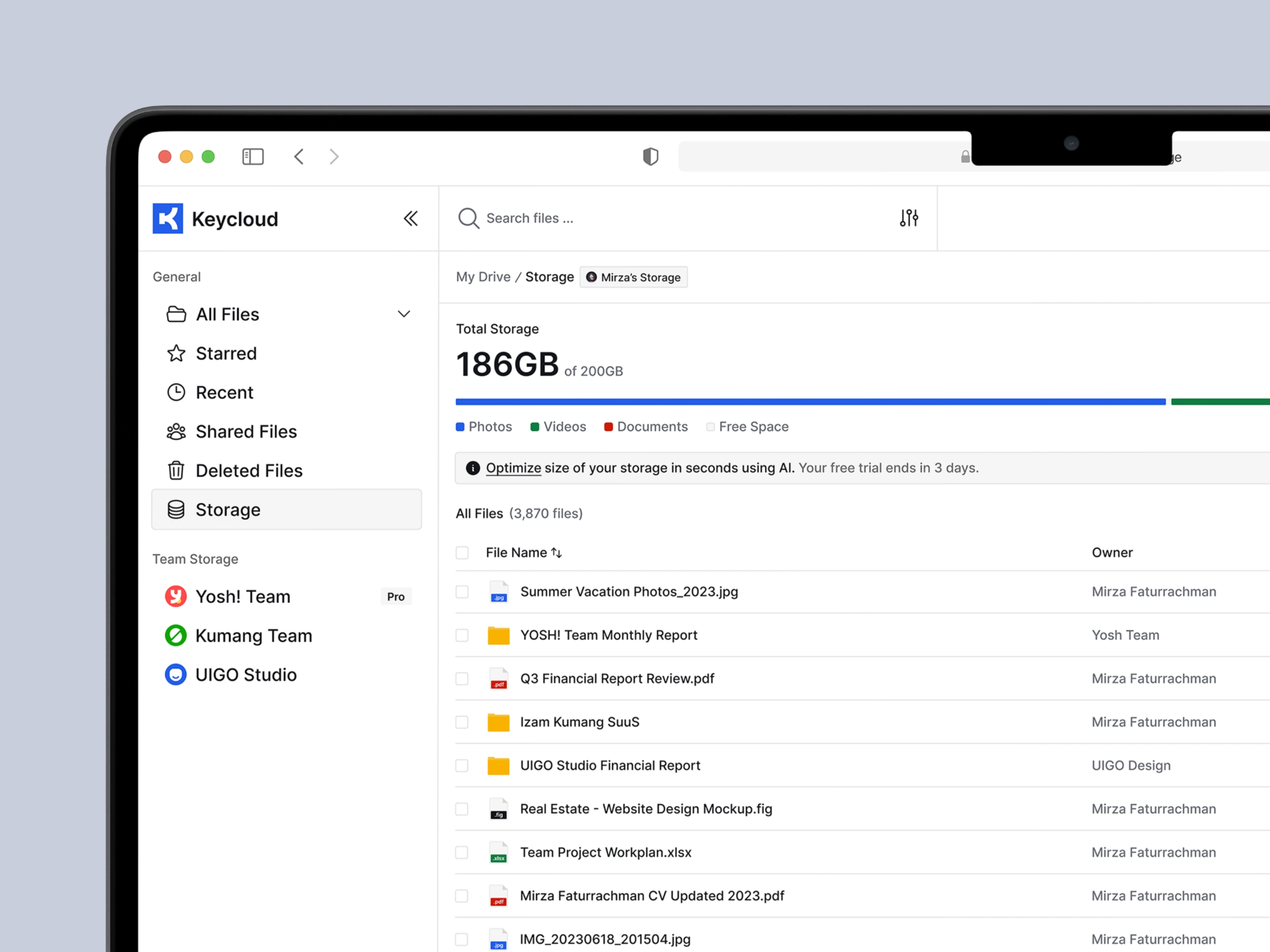 The first look at a powerful, intelligent cloud storage dashboard that uses AI to organize, search, and manage your digital files effortlessly.