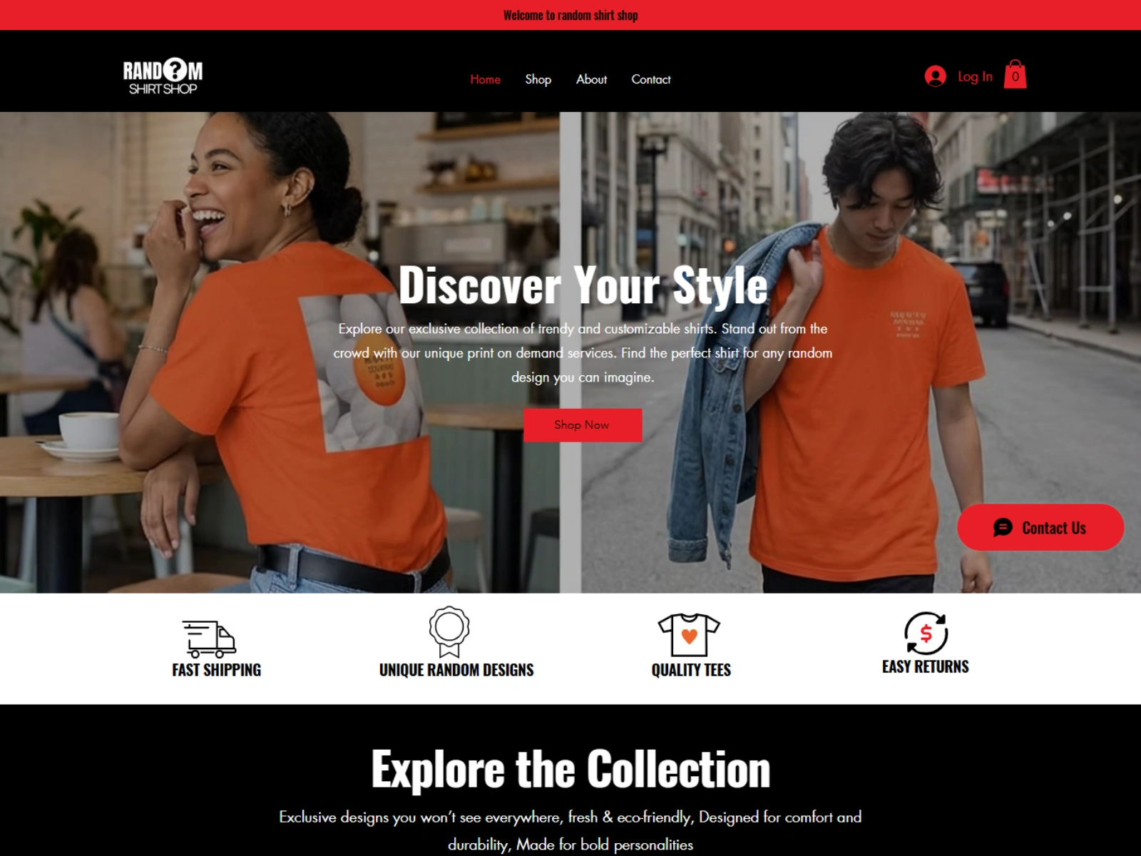 RandomShirtShop is a print-on-demand clothing brand that needed a fresh, modern Wix website to relaunch their business and start converting visitors into customers. The goal was to create a store that feels fun, bold, and trustworthy, while keeping the shopping experience simple and smooth.