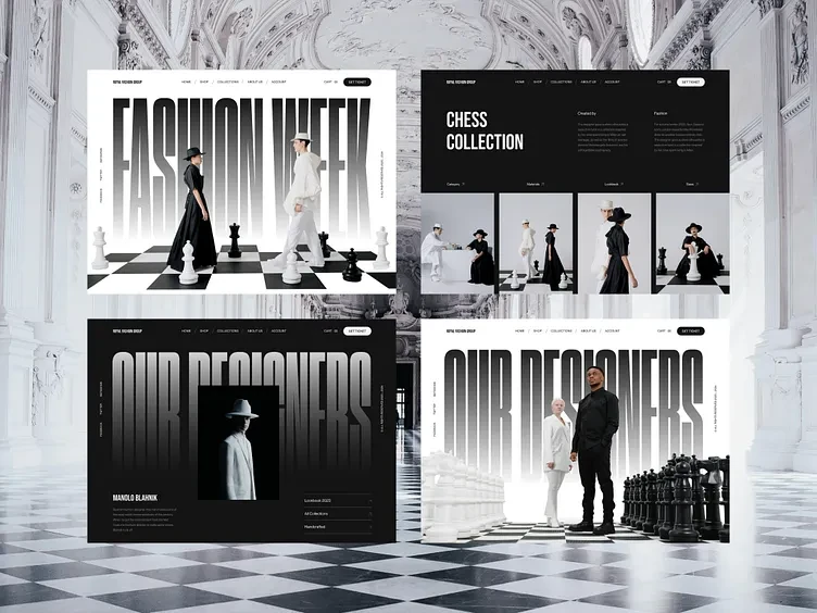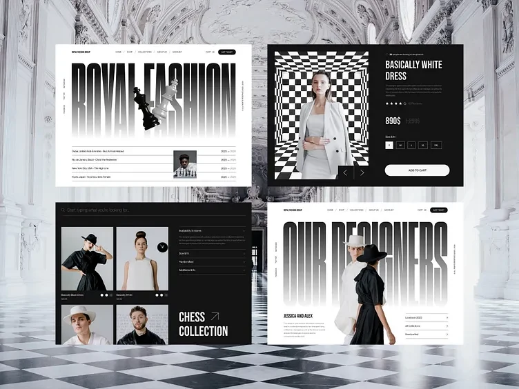 Designed a bold and immersive fashion e-commerce experience inspired by chess aesthetics and high-contrast editorial layouts.