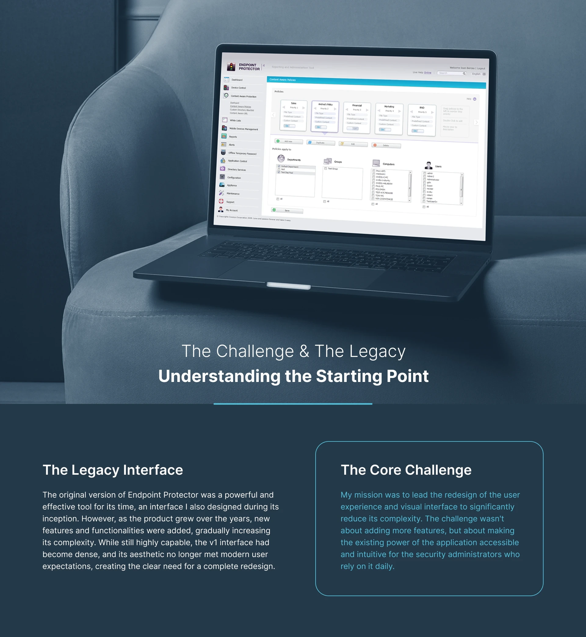 To guide the v2 redesign, we moved beyond assumptions and partnered directly with several of our largest enterprise clients. We conducted a series of feedback sessions with their IT and security engineers—the people who use Endpoint Protector every day.