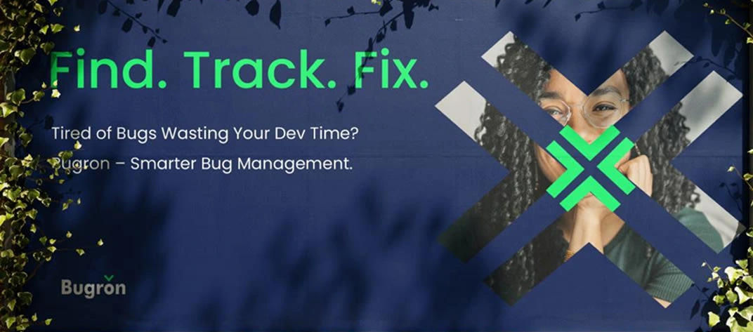 The creative idea behind the logo is to show an arrow that informs users about the bugs for a solution. Elements from the logo were used to develop the brand visuals.
