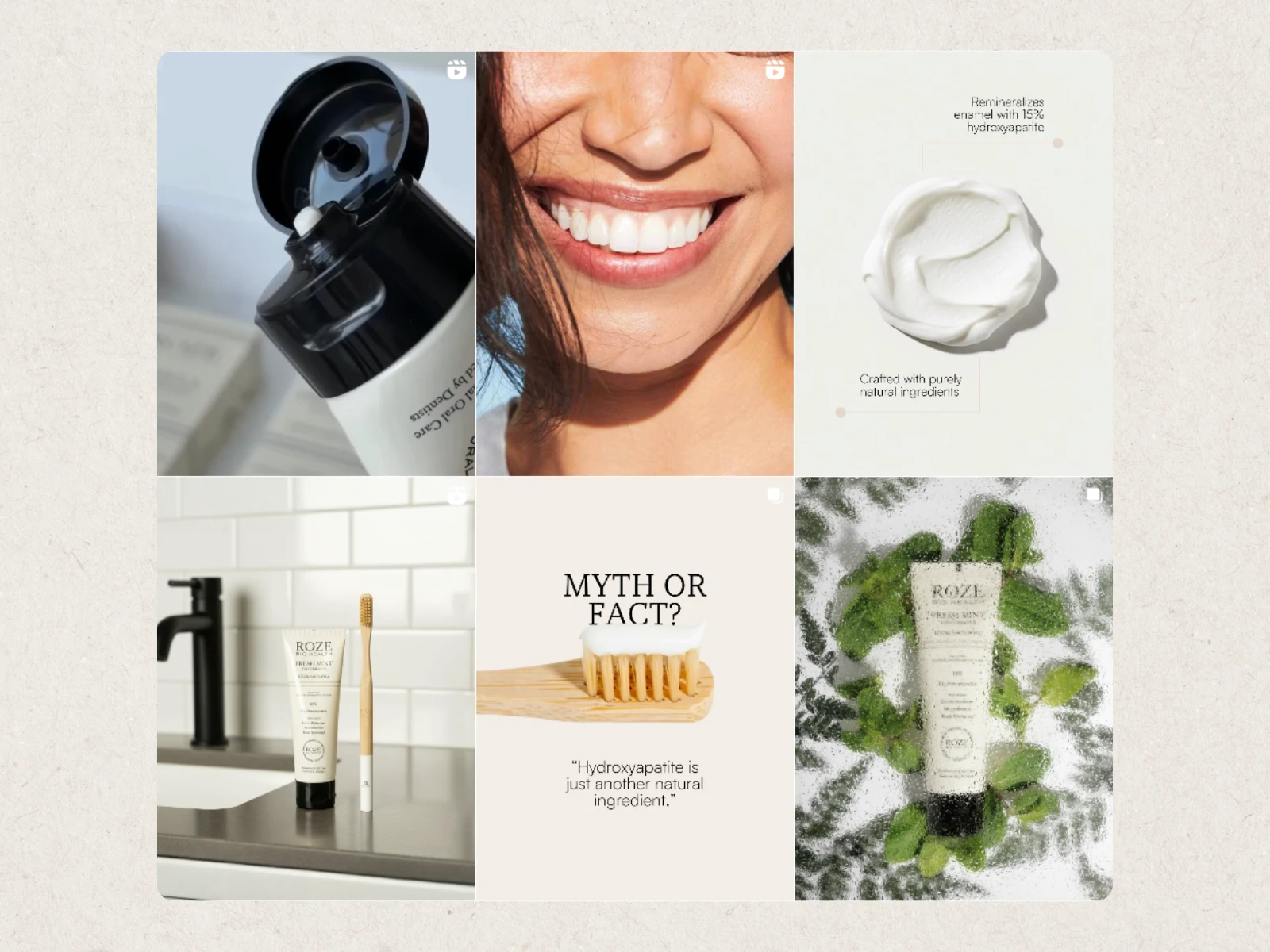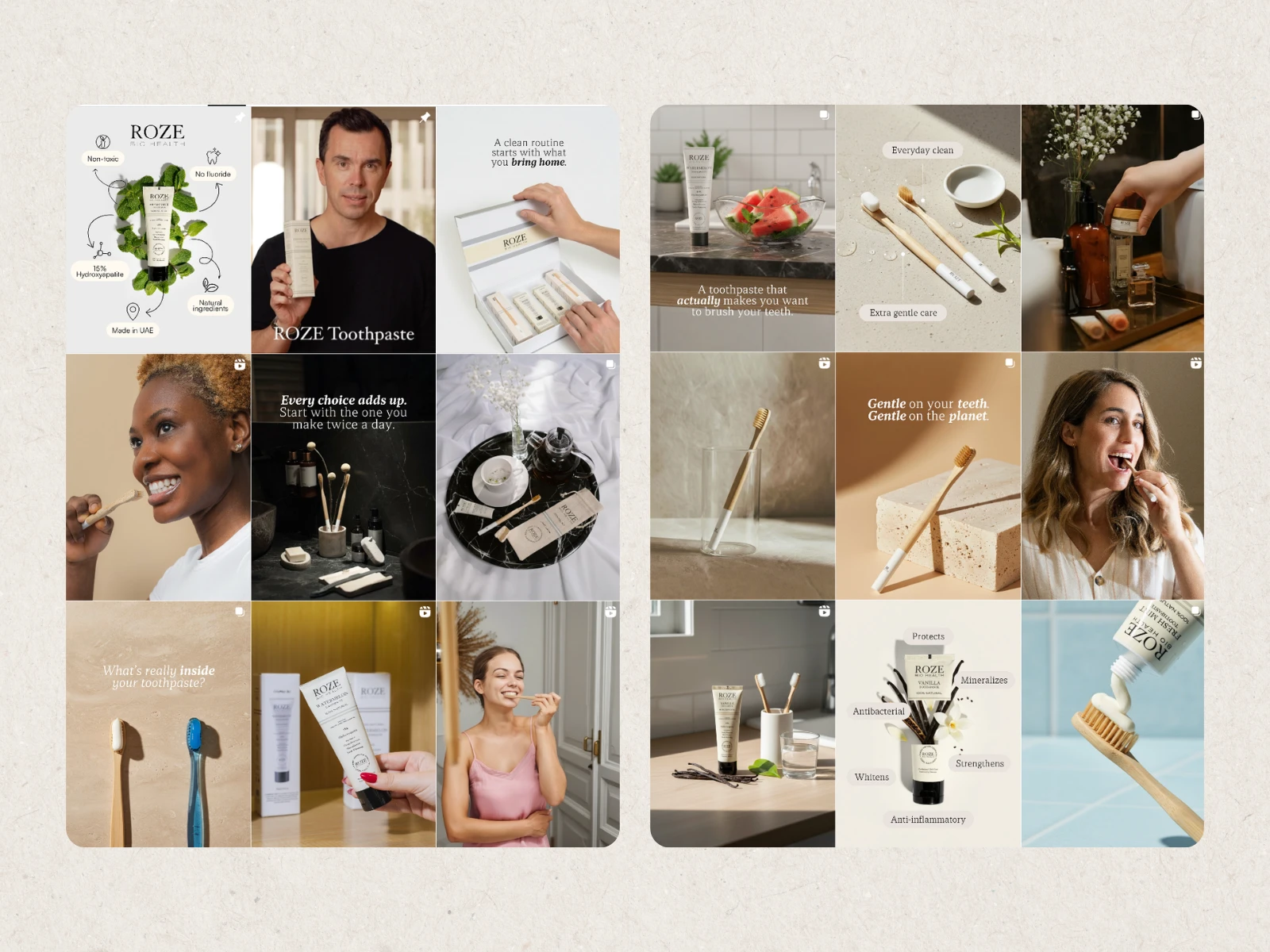 I helped ROZE Toothpaste elevate their online presence with a refined social media strategy and premium content that matched the brand’s clean, luxury aesthetic. The goal was simple: create a visually consistent, aspirational brand identity while driving growth and engagement across social platforms.