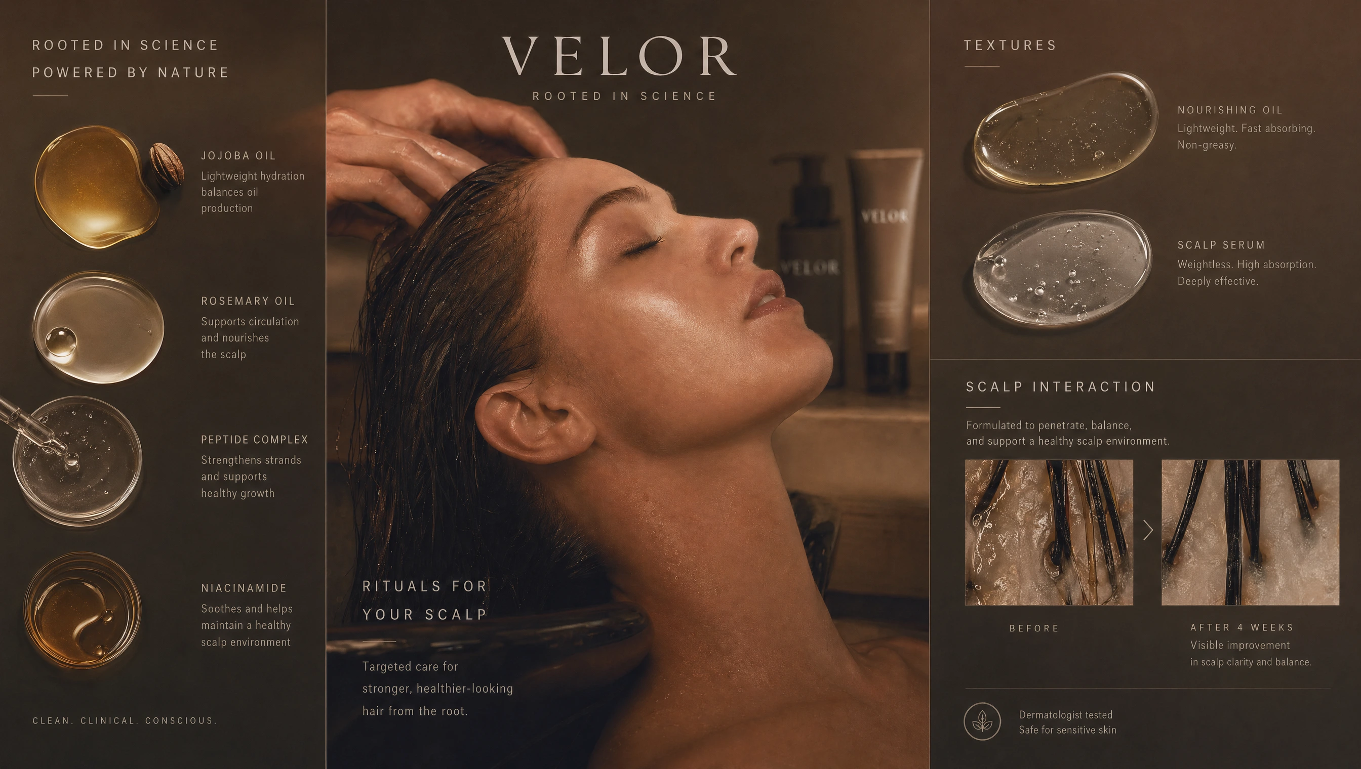 The goal was to create a brand that feels both clinically credible and emotionally indulgent — where scalp health becomes a ritual, not a routine.