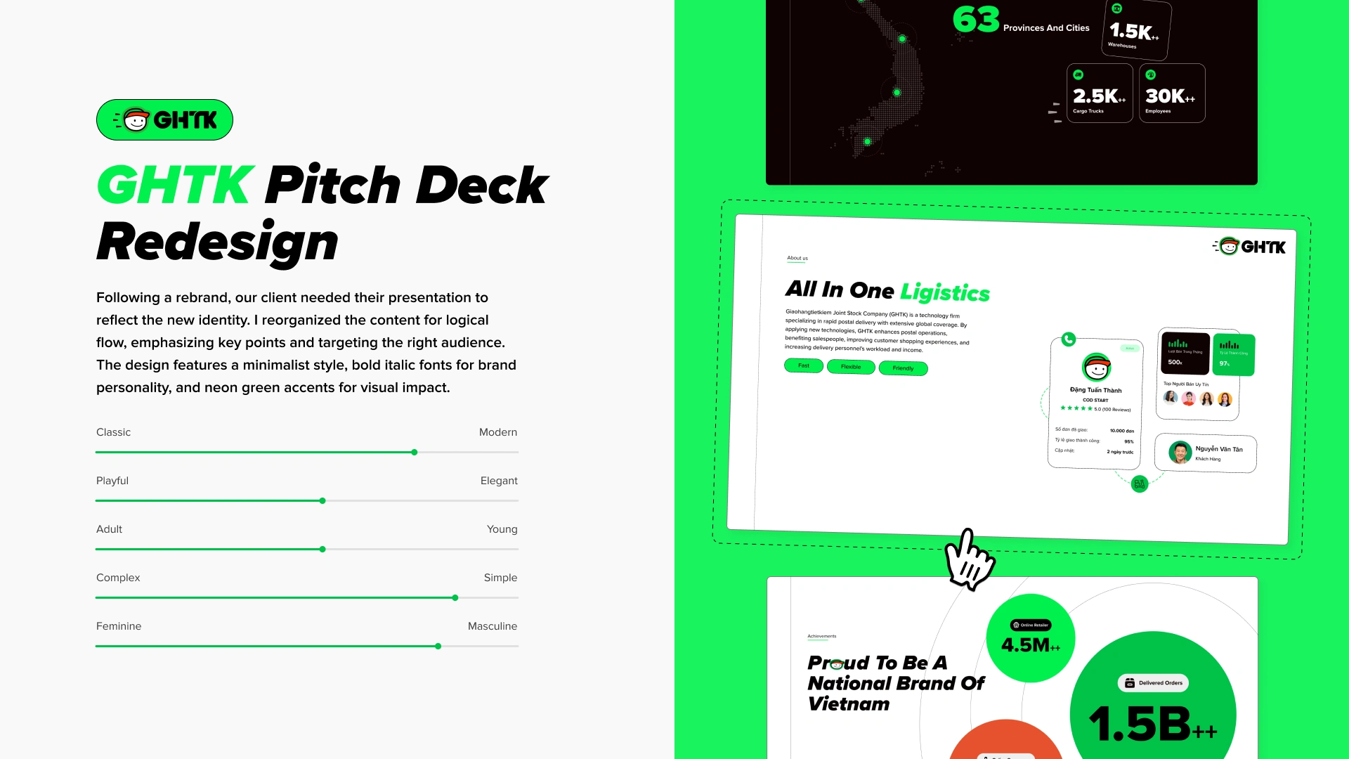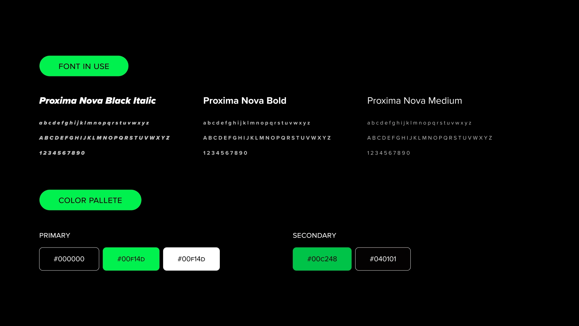 Visually, I applied a minimalist style to maintain clarity and sophistication. Bold italic fonts introduced a sense of brand personality, while neon green accents served as strong visual highlights to draw attention and reinforce the identity. This balance of restraint and energy created a polished yet impactful design.