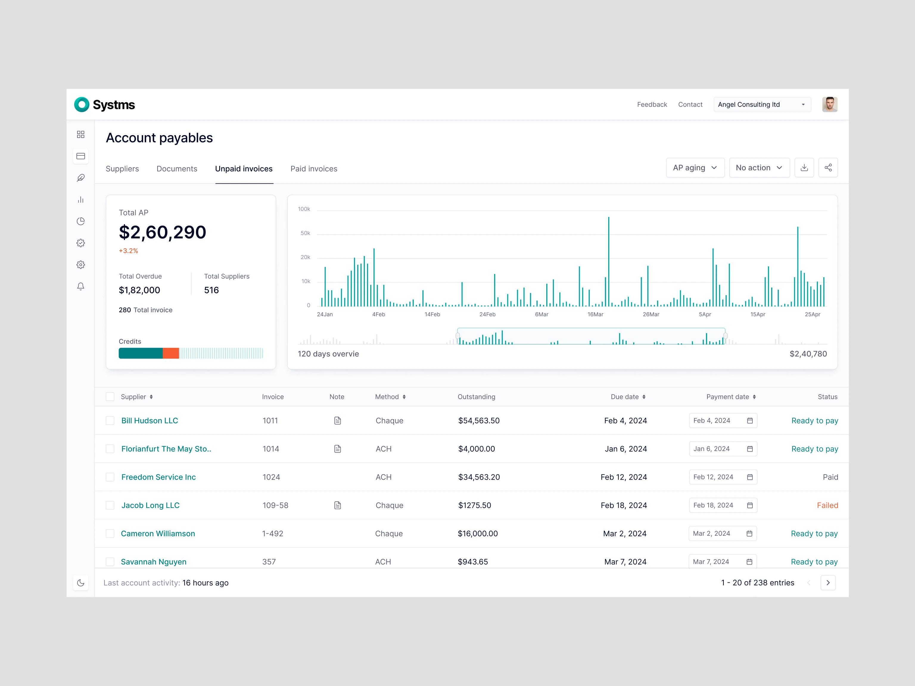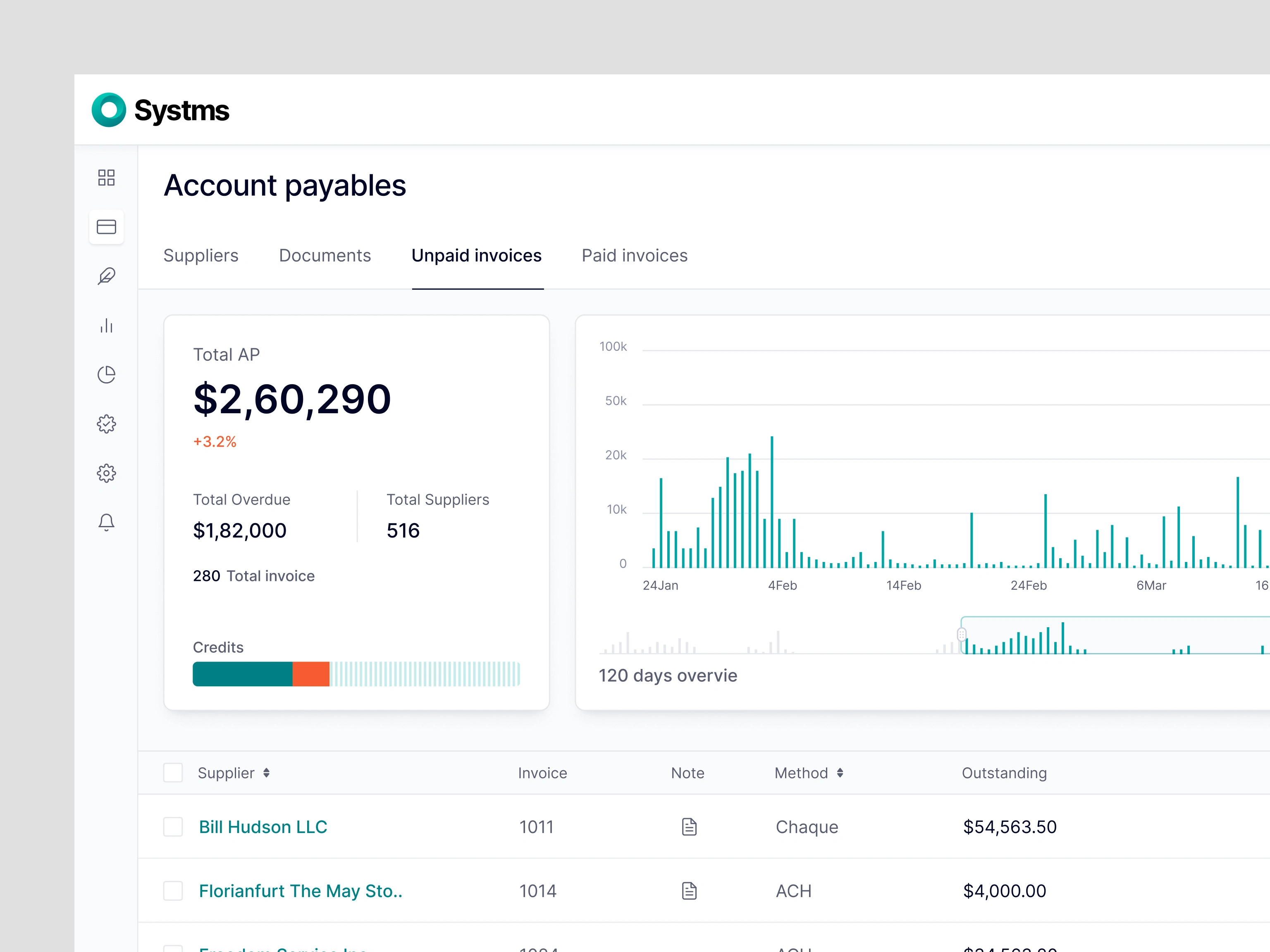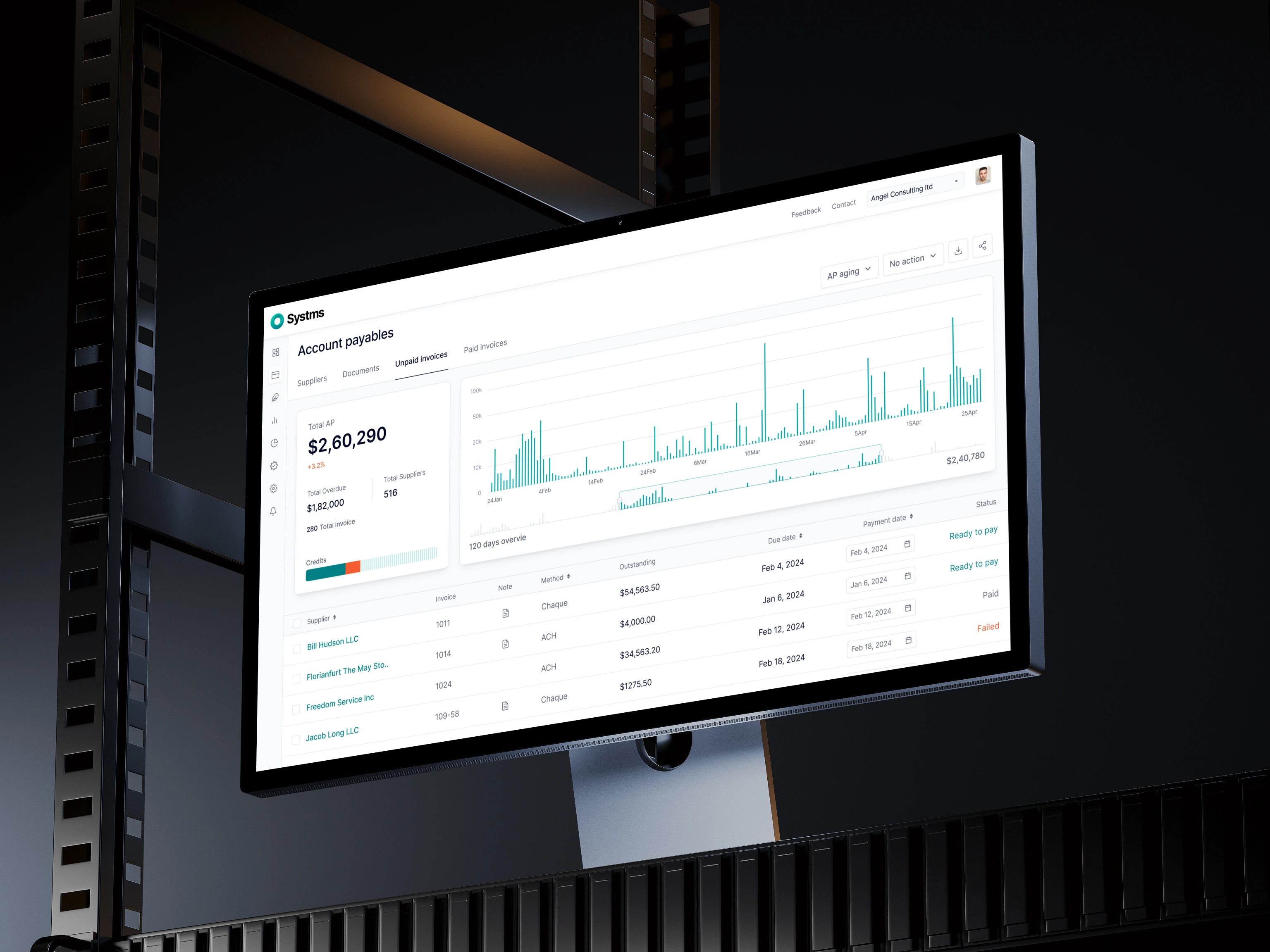 Designed a seamless AP experience for Systms, making it easier to track, manage, and automate payments with clarity and control.
