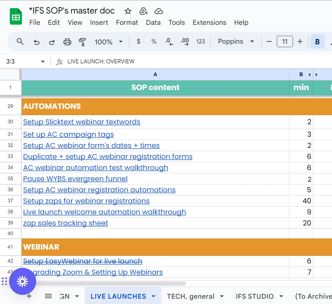 These are screenshots of some of the SOP's I've created for a client which link to Loom videos where I walk through all the automations and systems we had in the business.