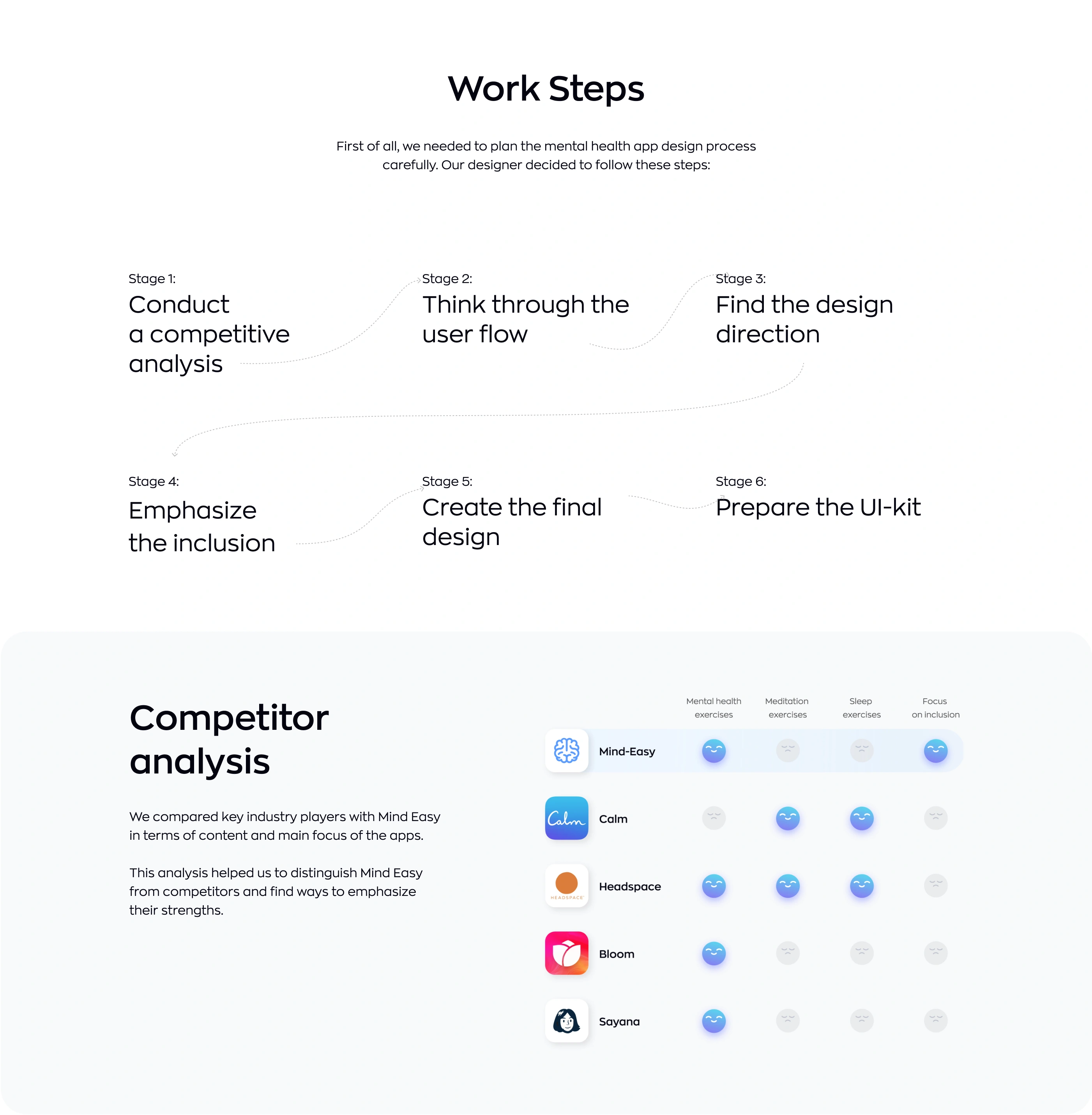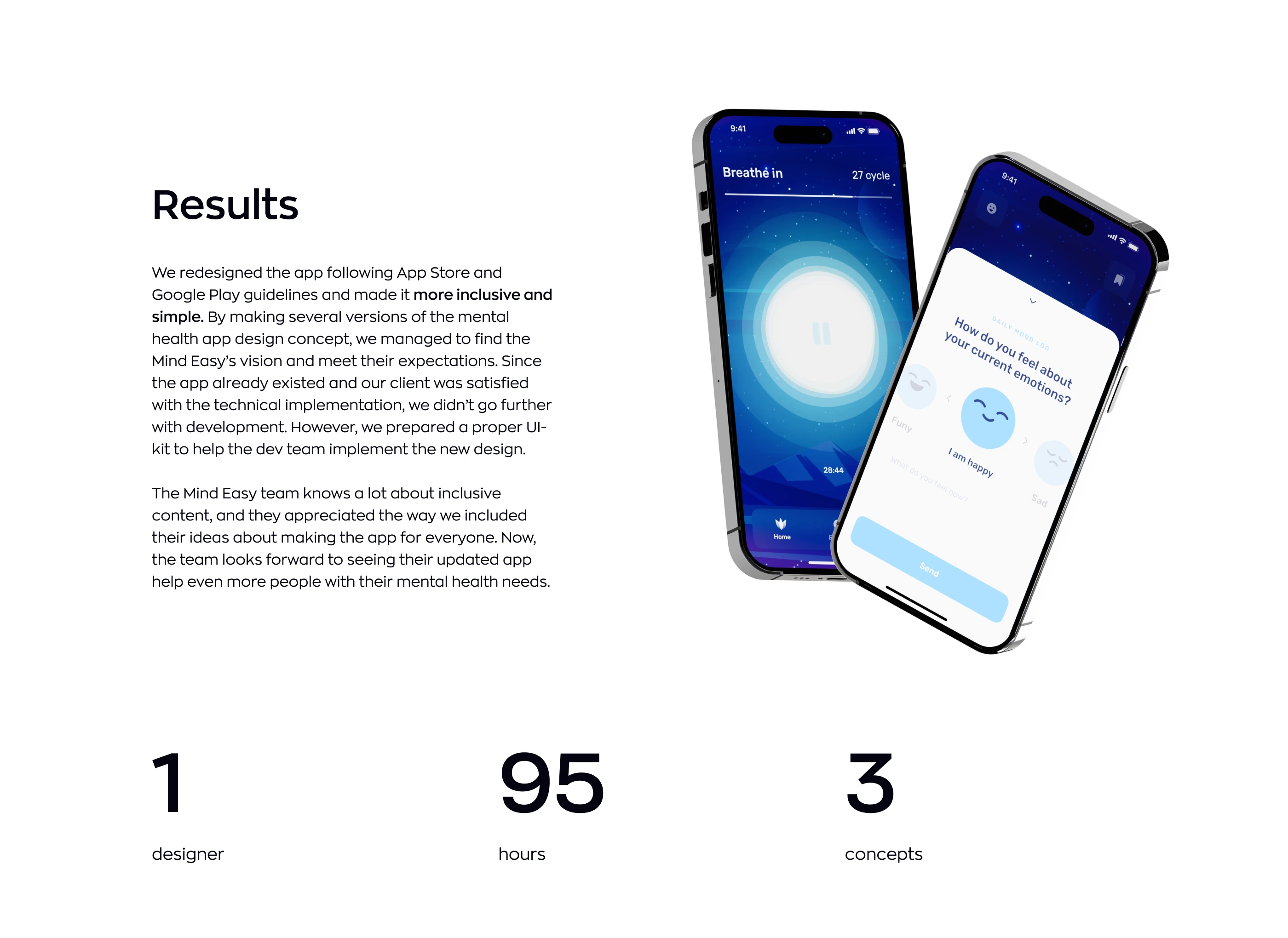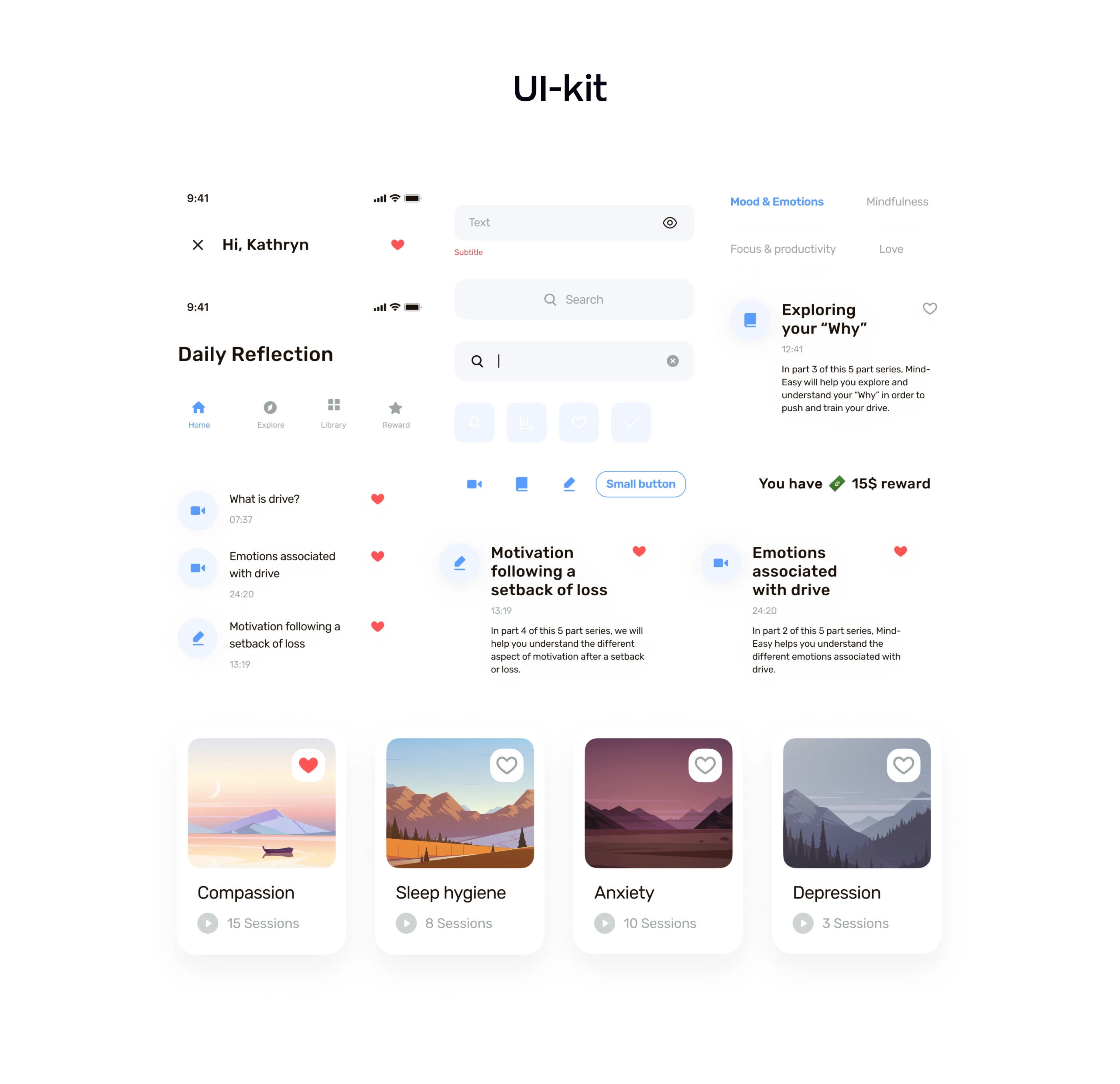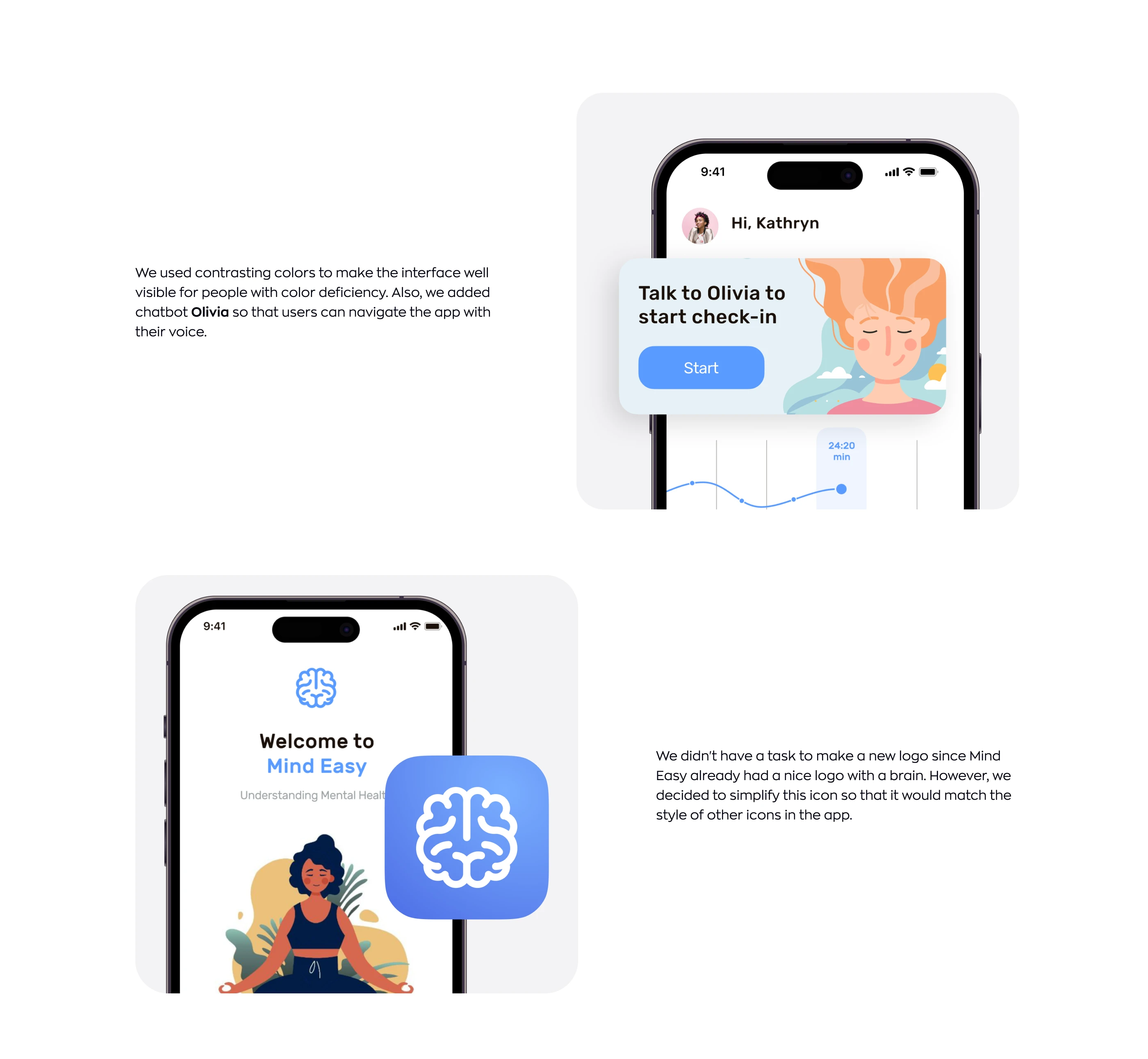Our team redesigned the Mind Easy mobile mental health app, conducting competitor research, experimenting with styles, and creating a minimalistic interface.