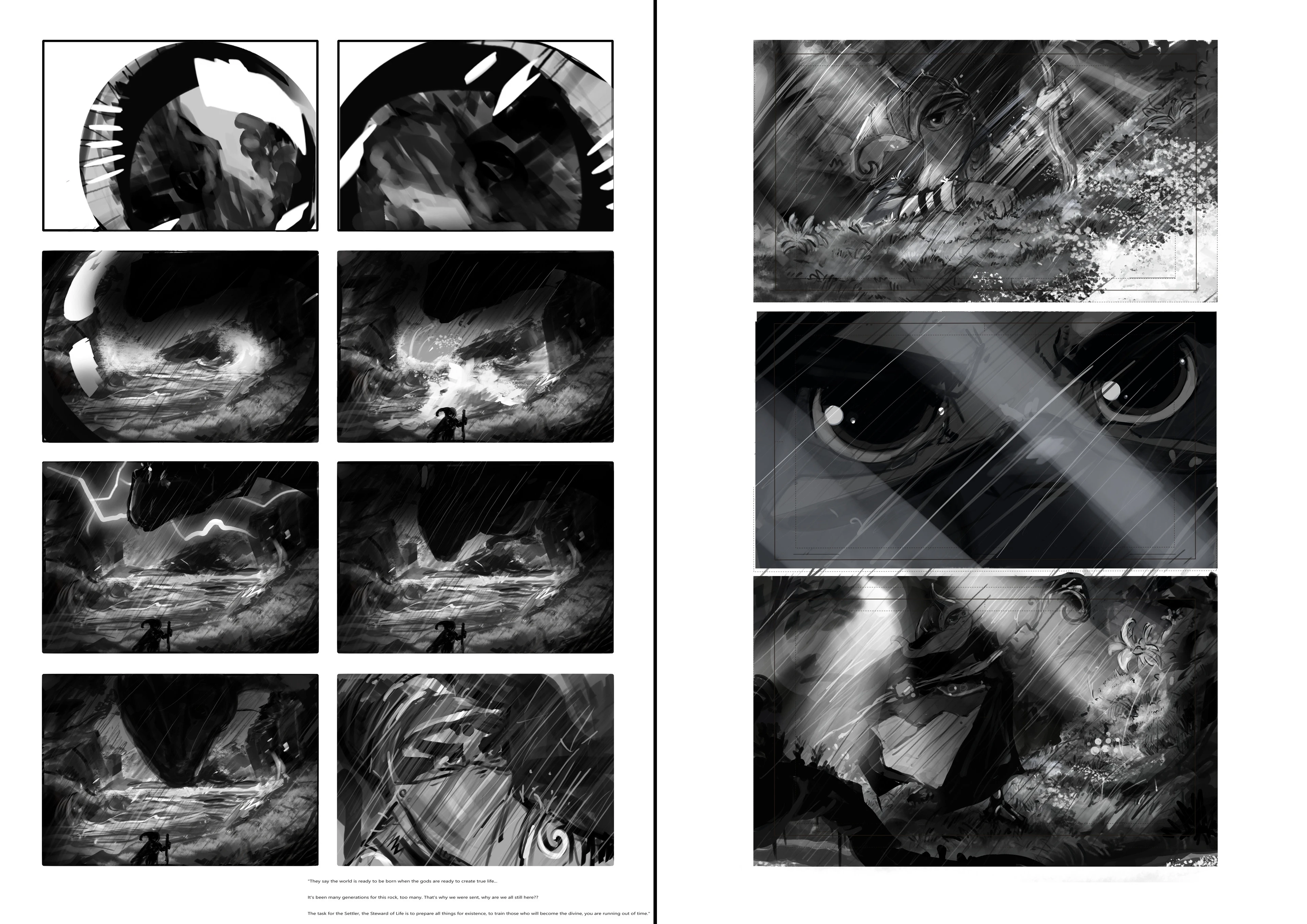 These are rough storyboards of the narrative introduction to the game