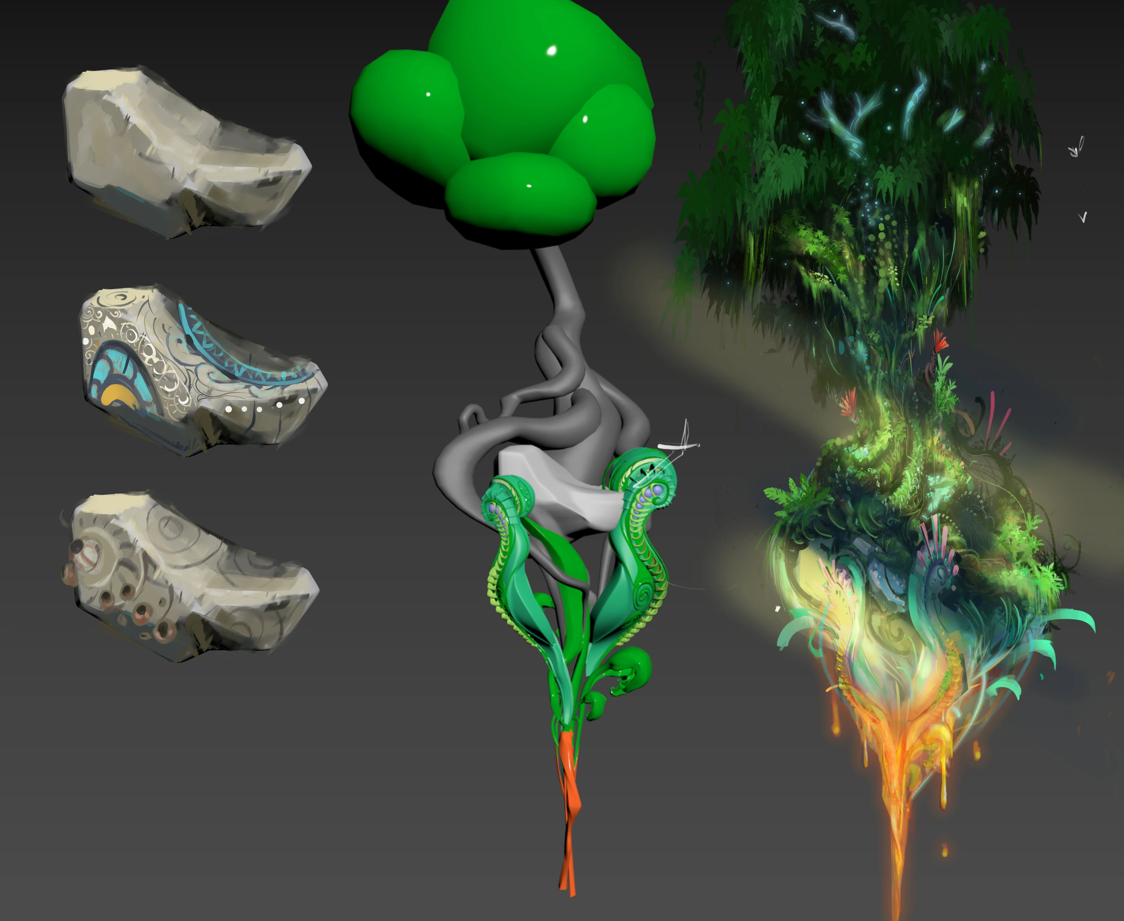 Proxy Mesh Paintover to explore different designs for trees and rocks