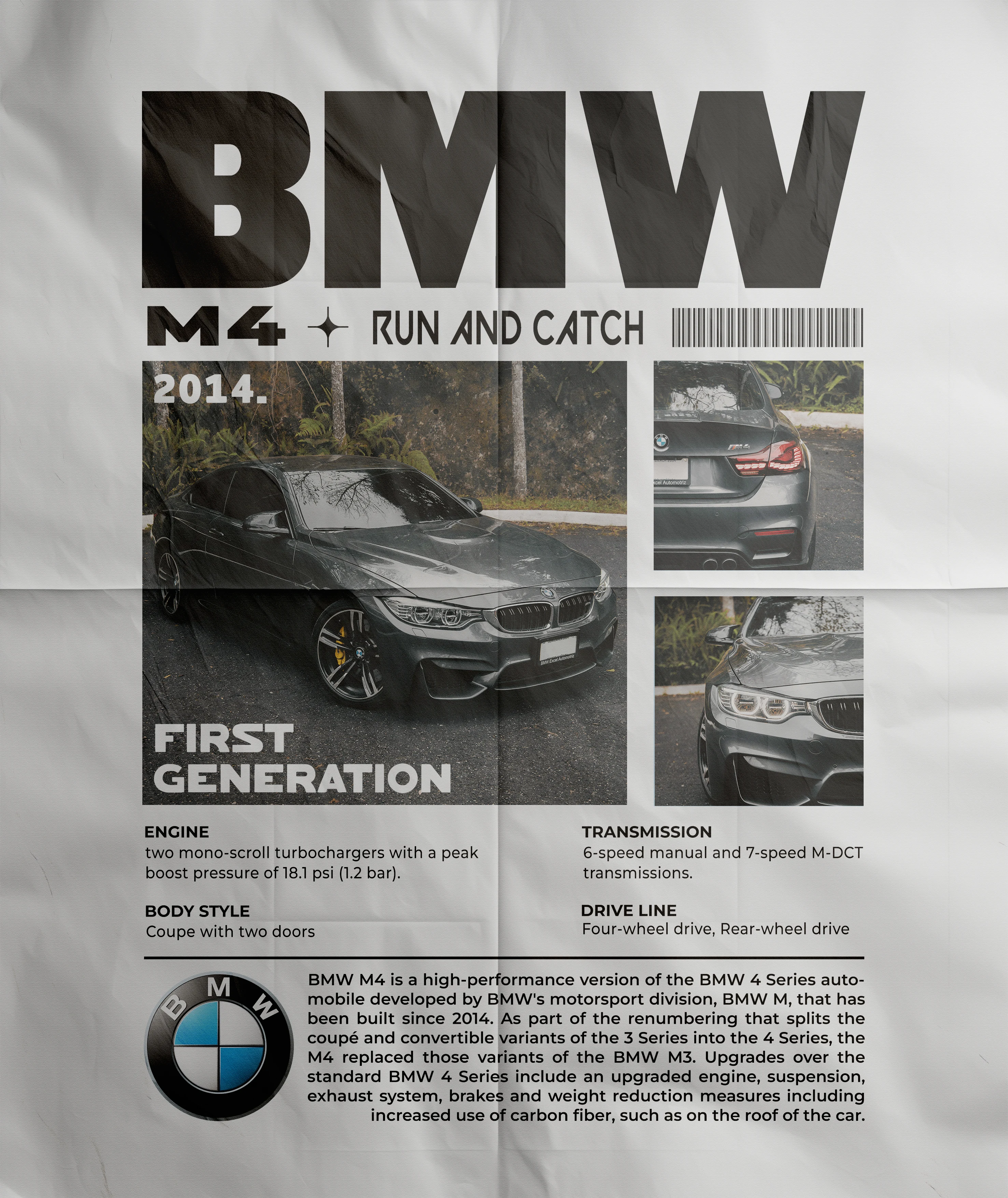 Futuristic and bold BMW M4 poster design, highlighting speed, performance, and modern aesthetics.