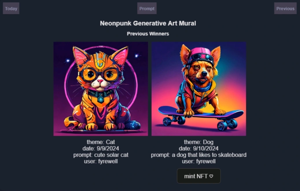 Developed an embedded app for DSCVR enabling community-driven NFT art creation and voting.
