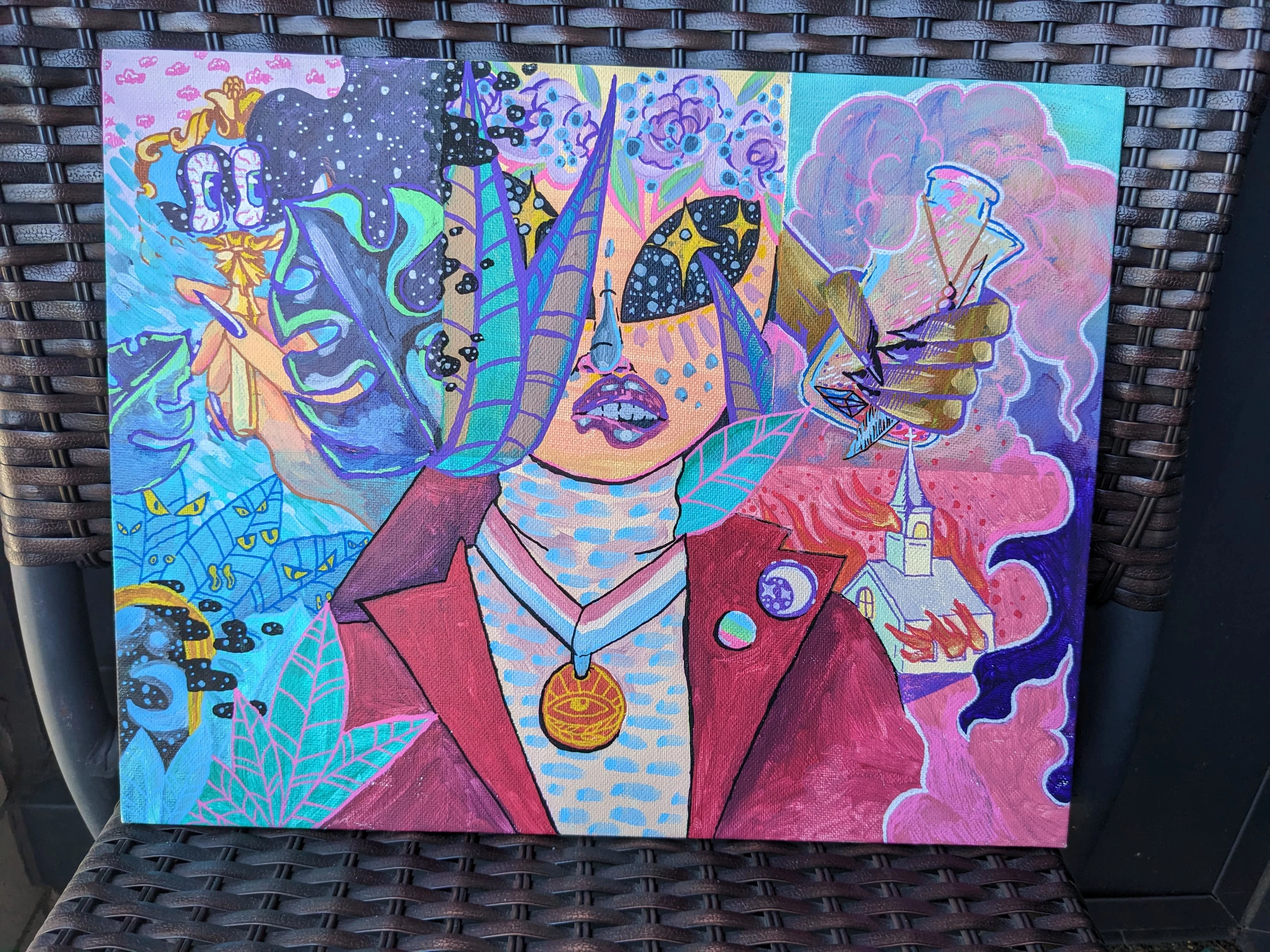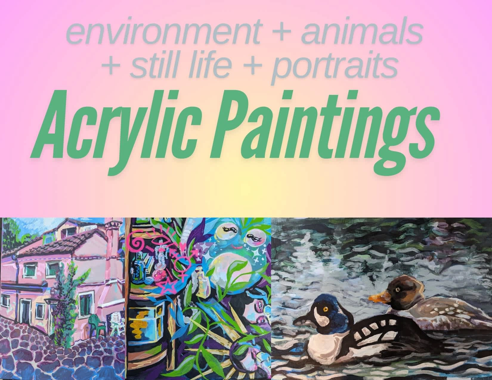 I start a few digital thumbnails for my clients to chose from as soon as I receive a deposit. Then I complete the acrylic piece.