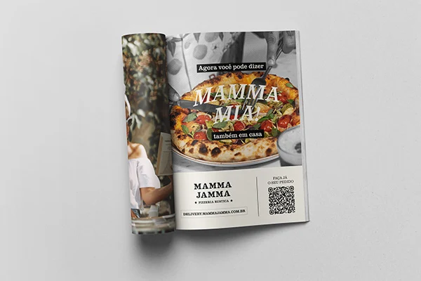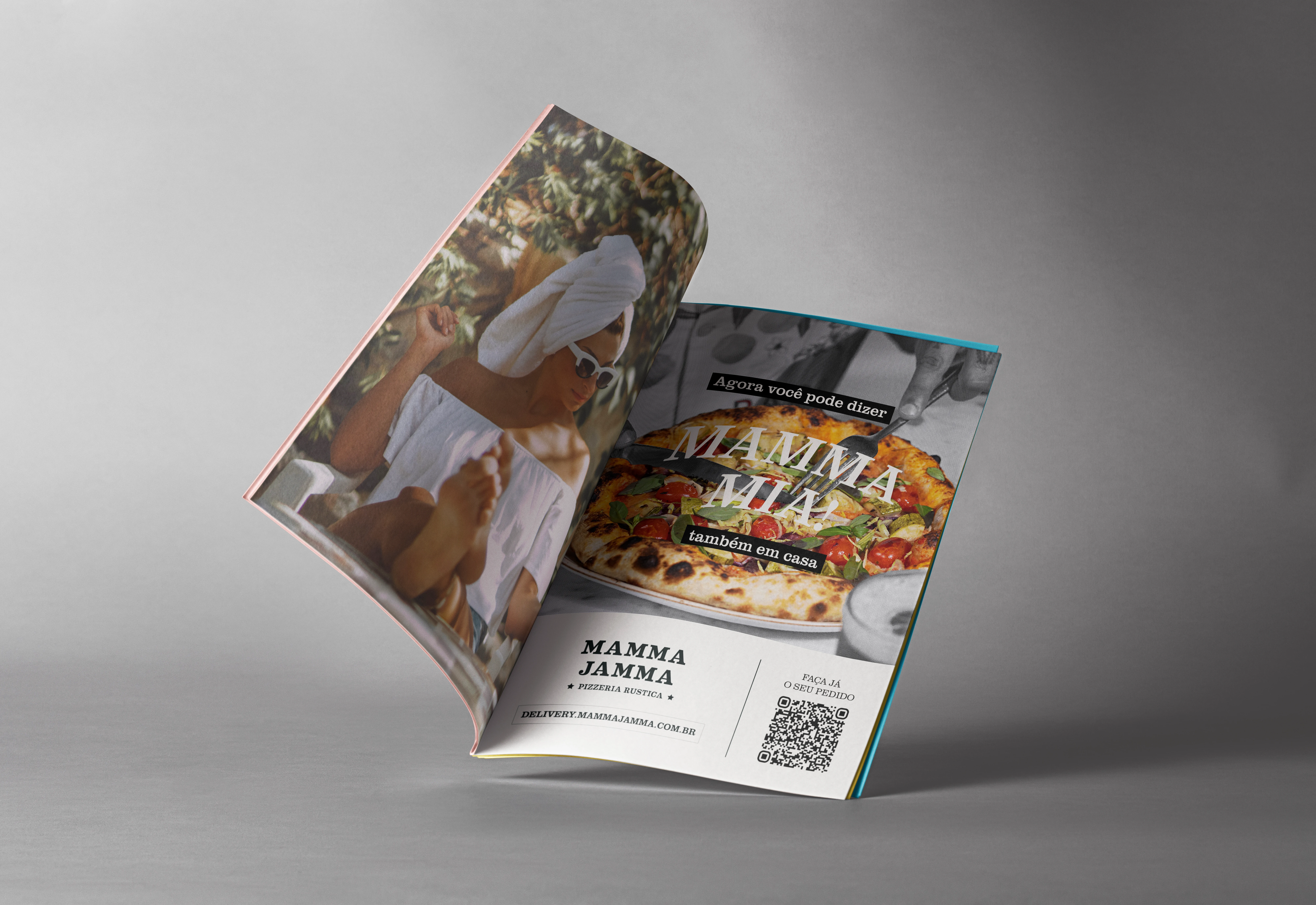 A conceptual magazine ad for Mamma Jamma's delivery service, utilizing selective color isolation and strategic copywriting to maximize appetite appeal.