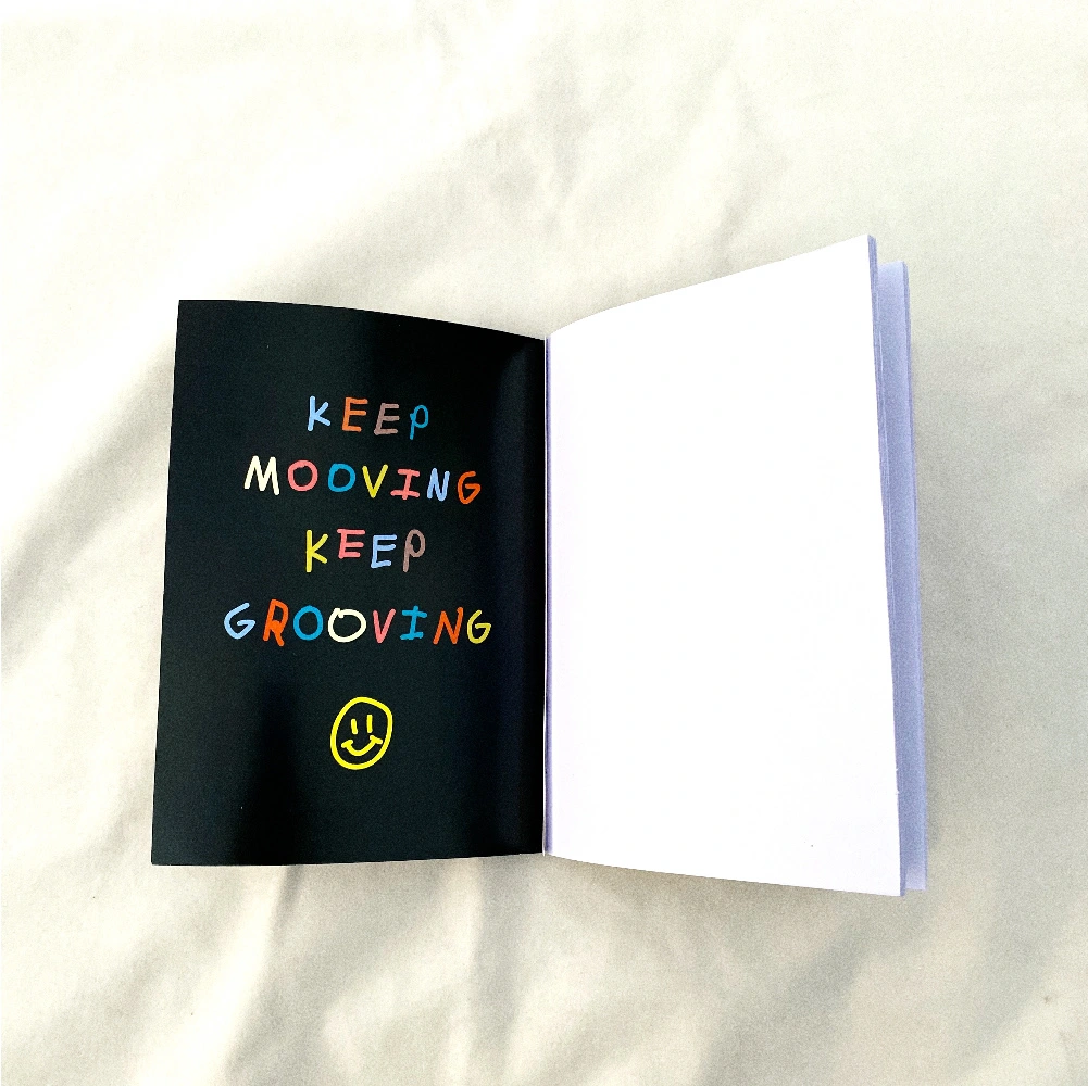 Extending the brand into creative culture, I designed a custom, blank-page notebook specifically for the brand's audience of artists and thinkers. This "Creative Companion" featured apparel graphics as large, removable, die-cut stickers on the covers, positioning the notebook as more than just merchandise; it became a reusable piece of art and a tool for creation.