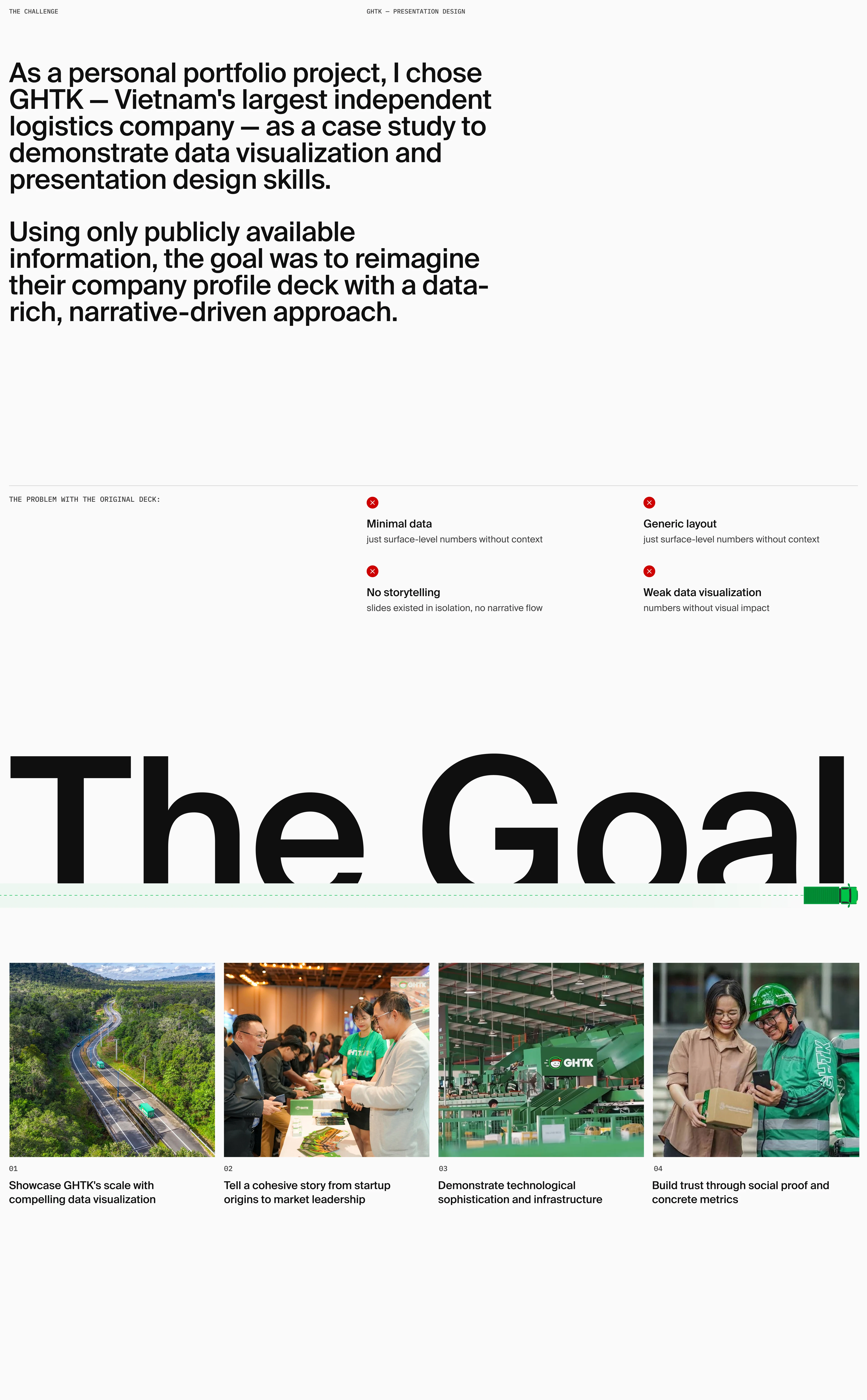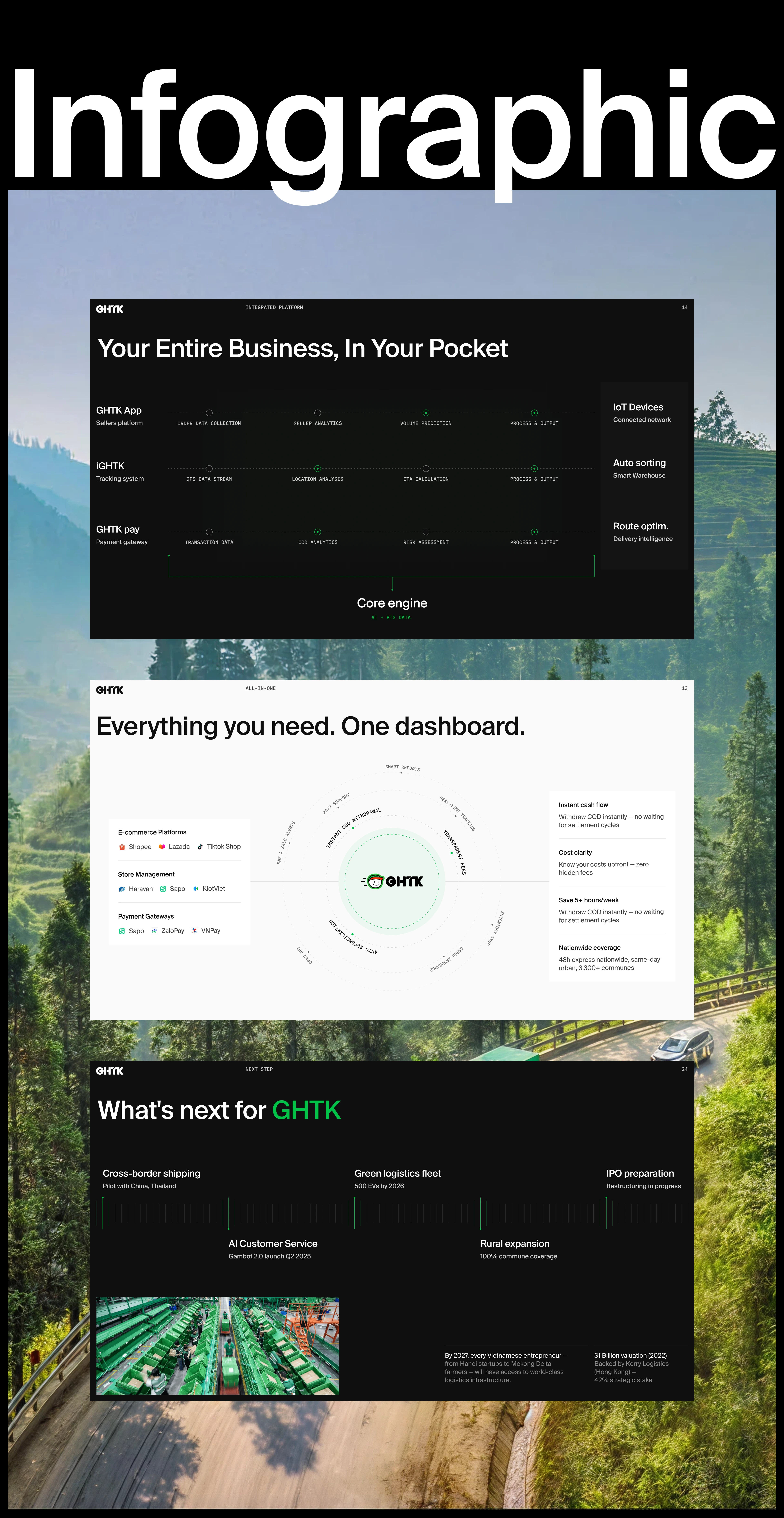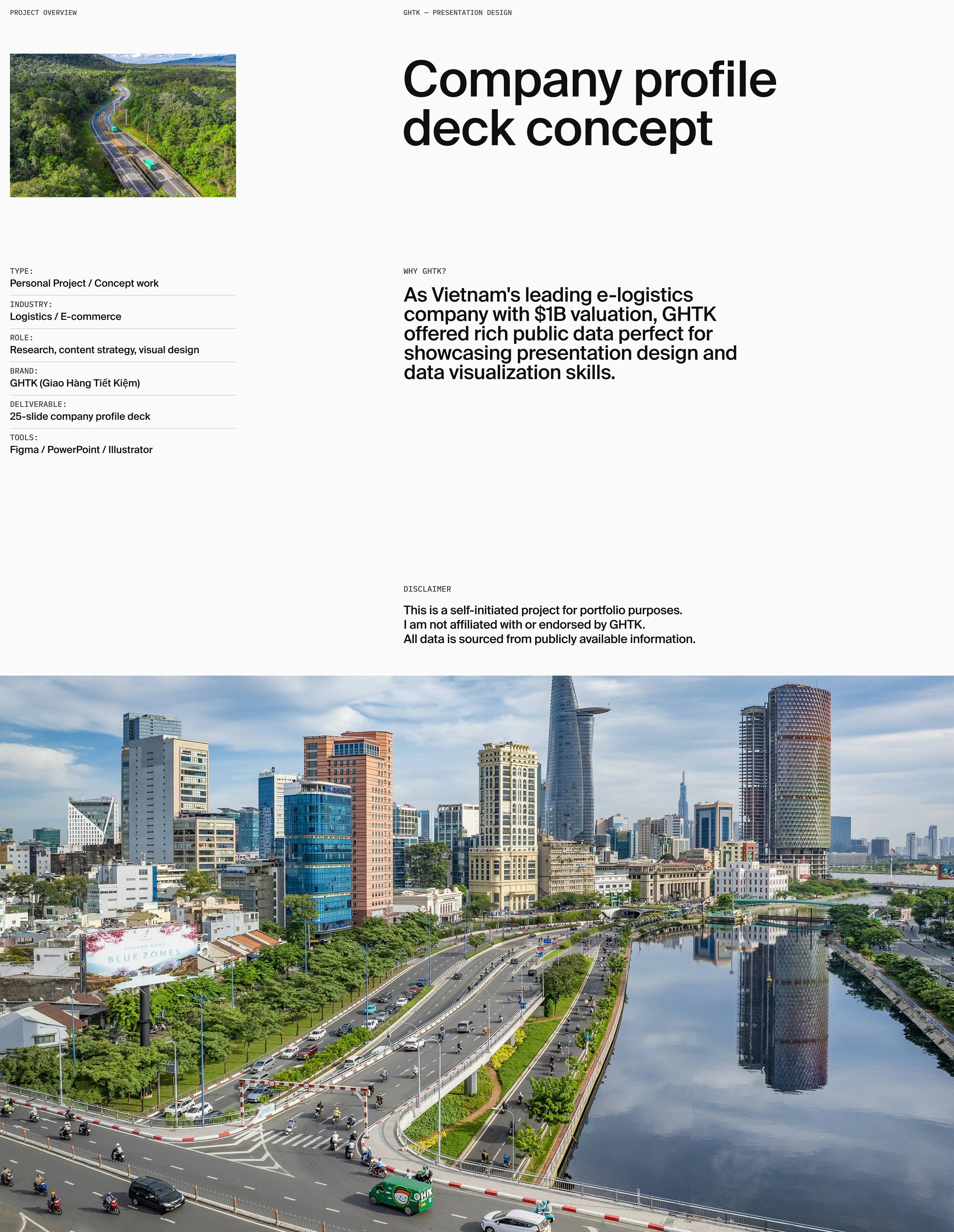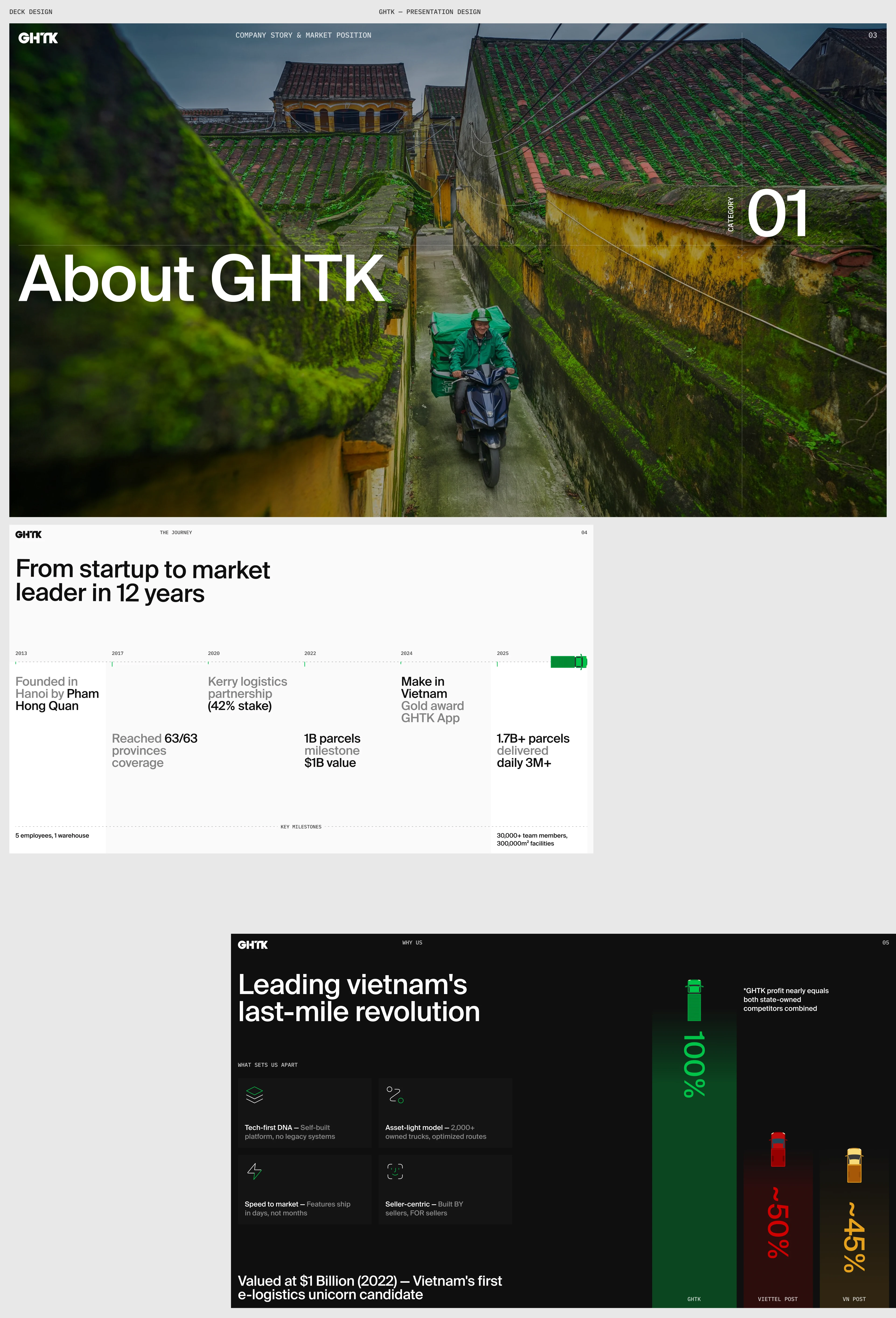 Redesigned the company profile deck for GHTK — Vietnam's largest last-mile delivery platform (valued at $1B, 1.7B+ parcels delivered).