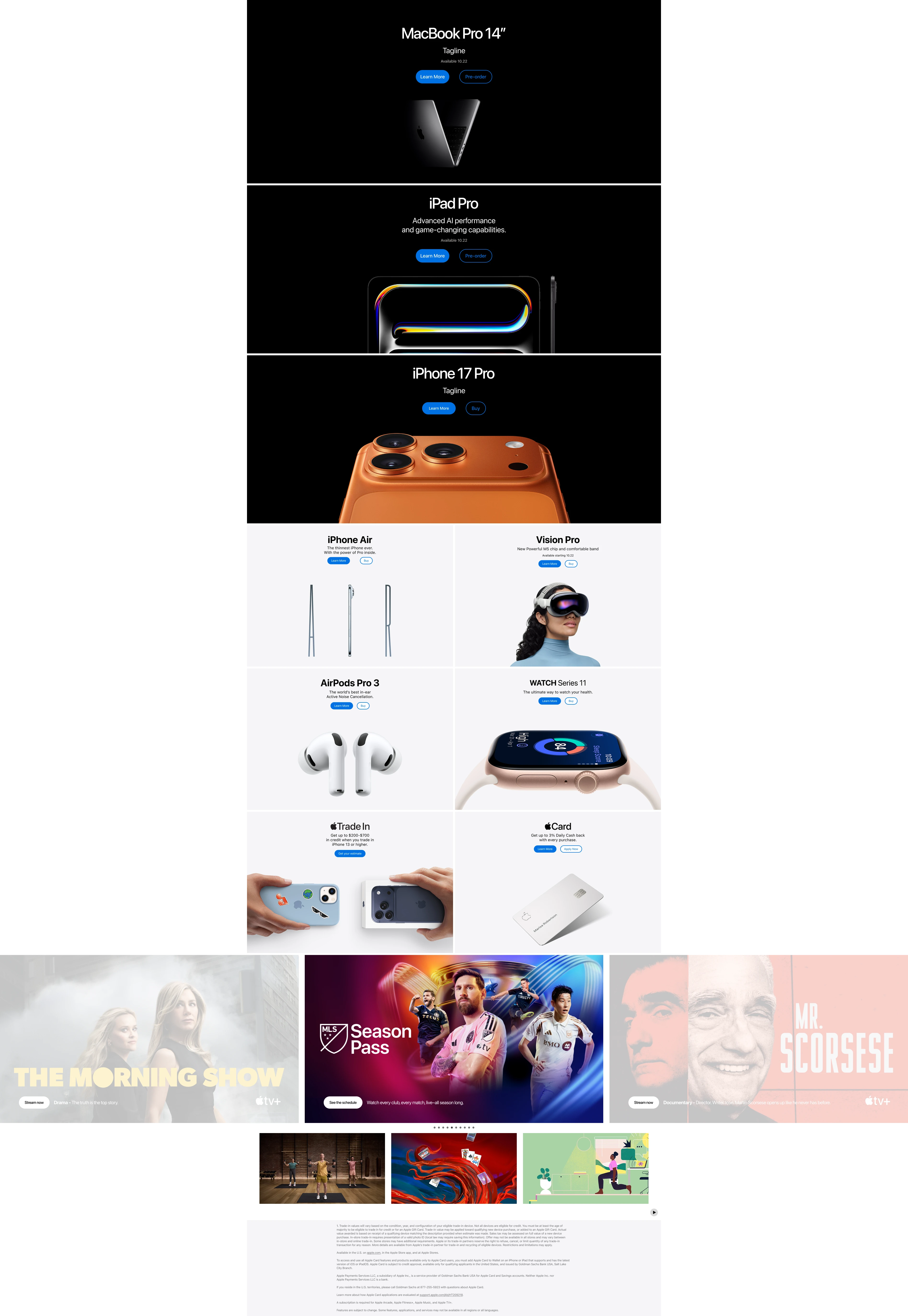 This wasn't a redesign or client project. I rebuilt Apple's existing design to practice layout, typography, and component structure in Figma.