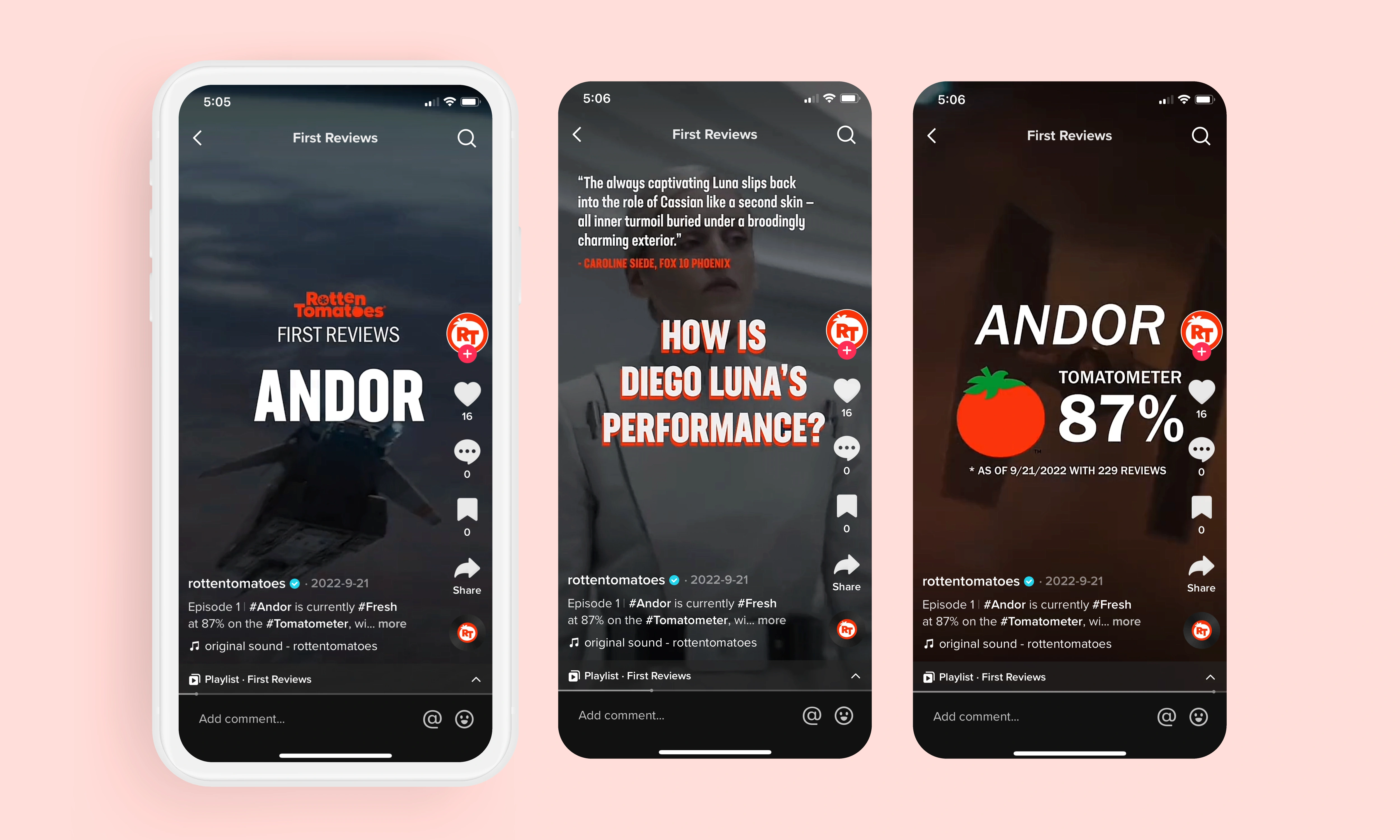 Developed custom Certified Fresh graphics and formatted template for First Reviews on TikTok to improve engagement.
