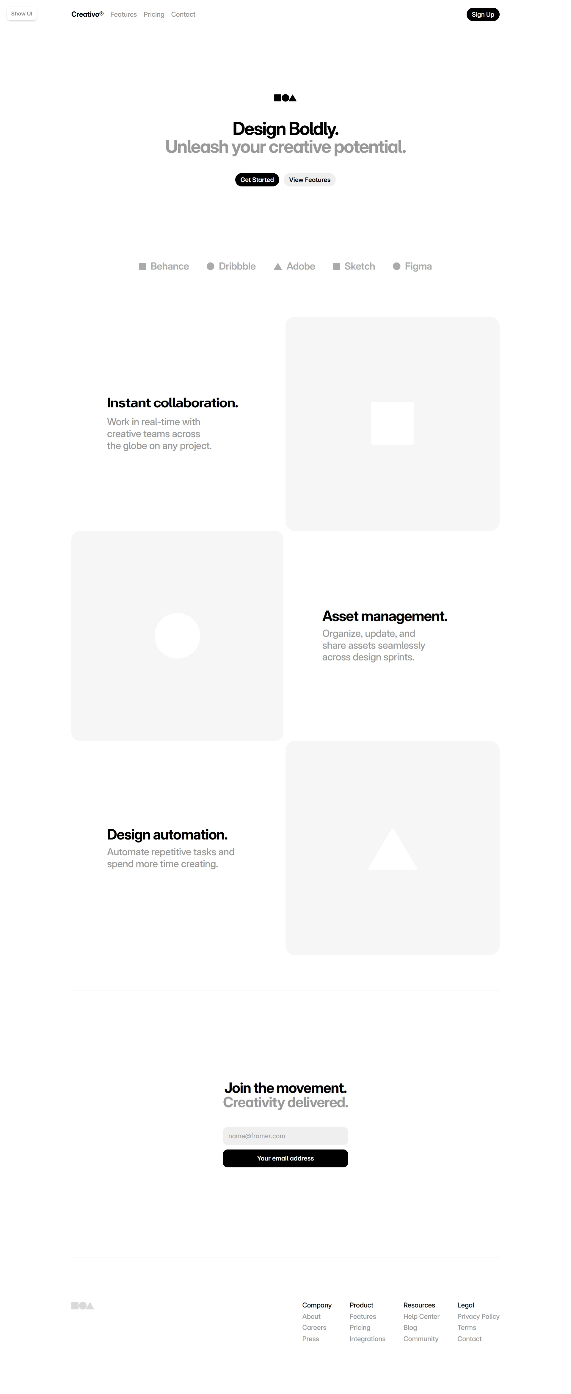 Creativo is a minimalist landing page concept designed and built in Framer, showcasing how creativity, structure, and clean typography can create a bold user experience.