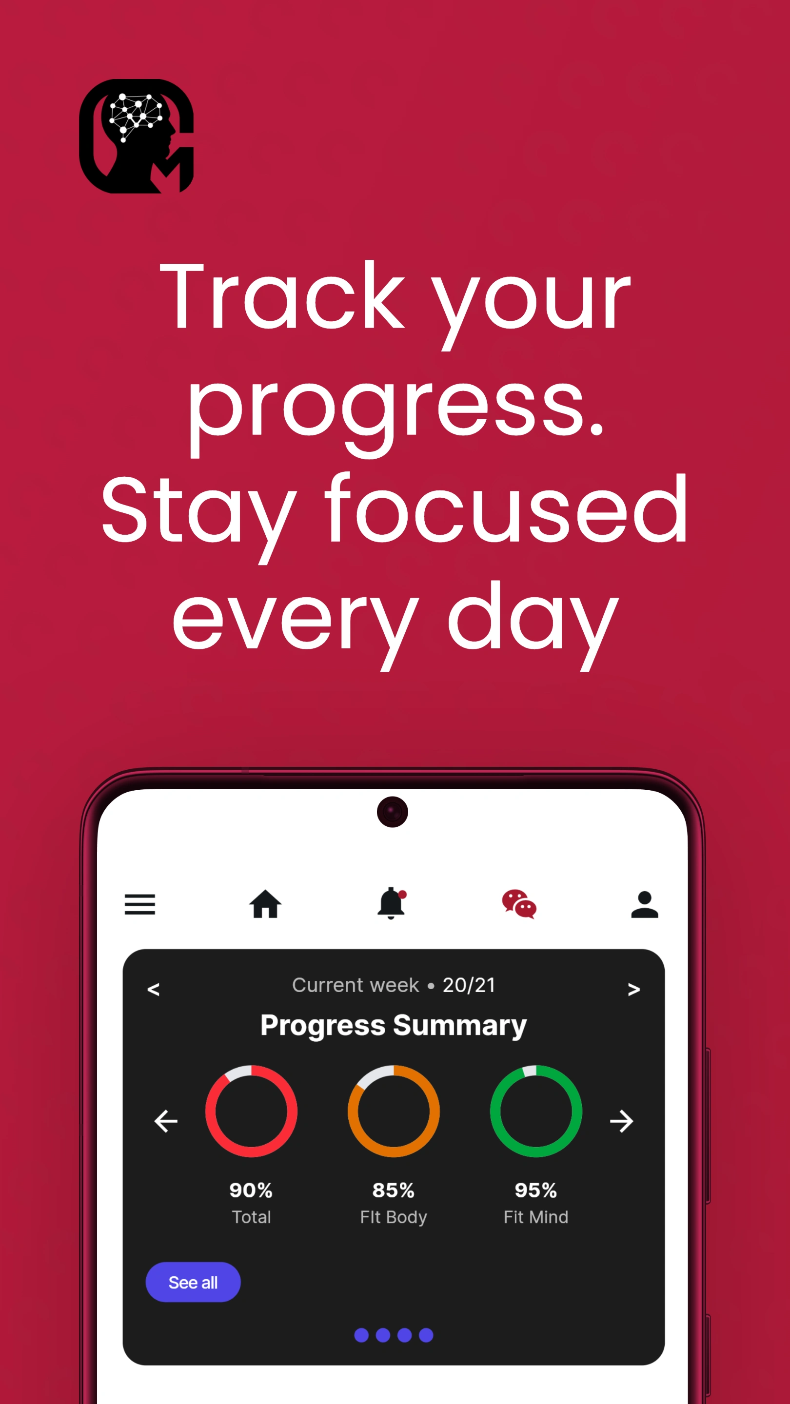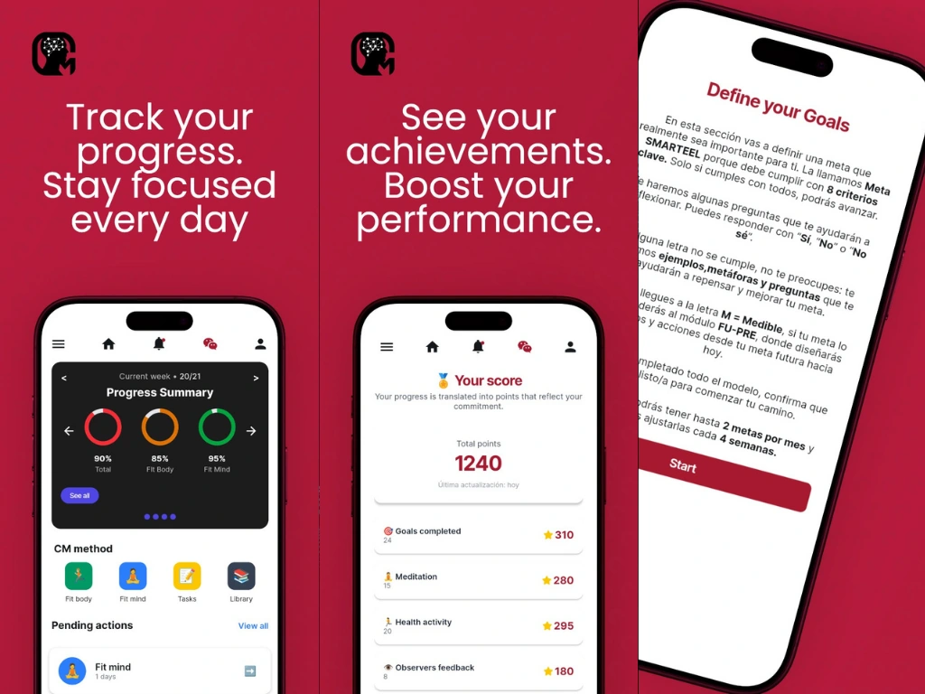 The app integrates health data and daily habits, allowing users to monitor physical and mental well-being in one place. It uses gamification techniques and progress analytics to reinforce consistency and motivation, while offering personalized exercises and reflective prompts adapted to each user’s profile.