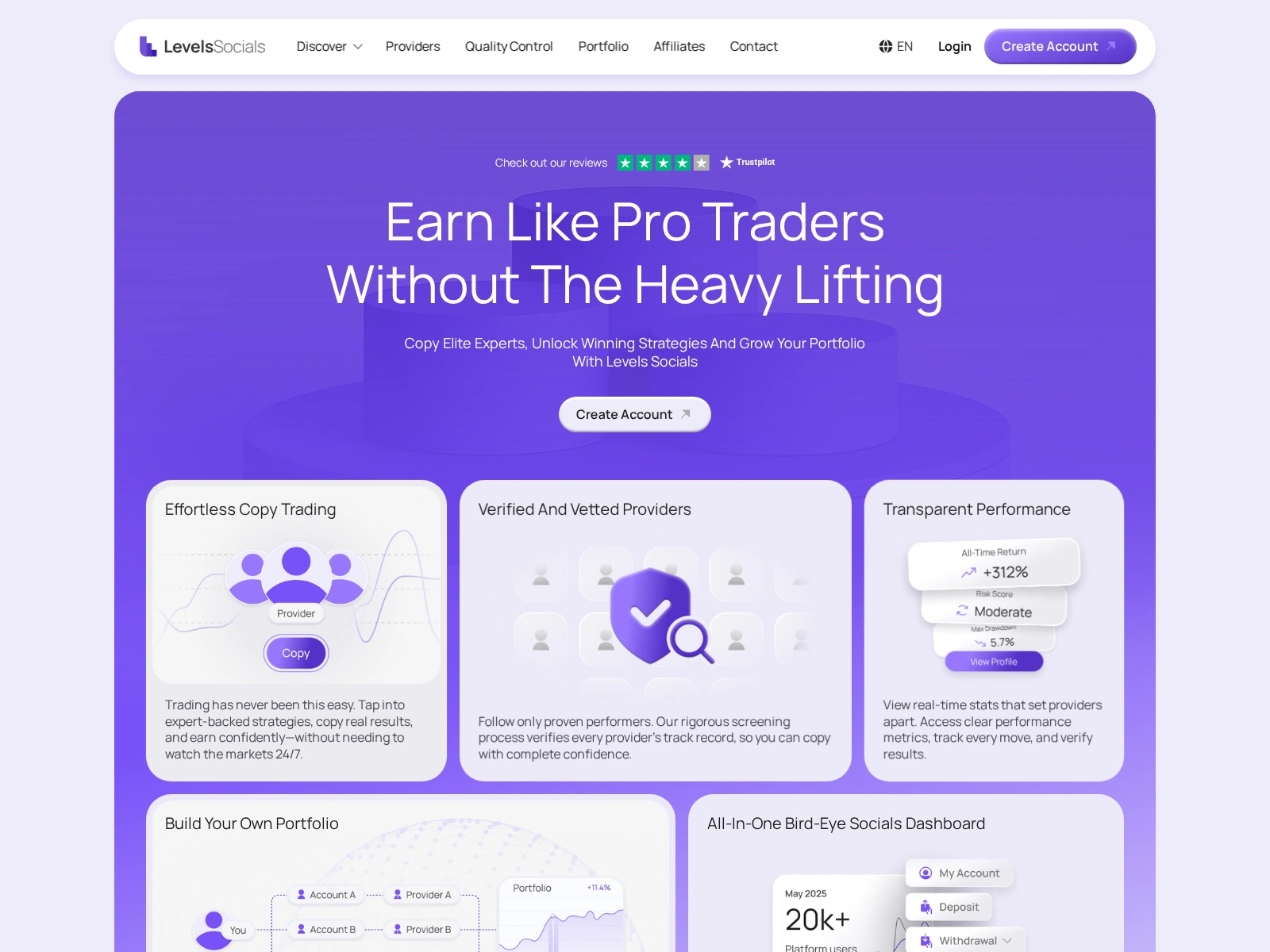 A clean and scalable copy trading platform built with intuitive UX, real-time data, and no-code development—designed to simplify investing for everyday users.