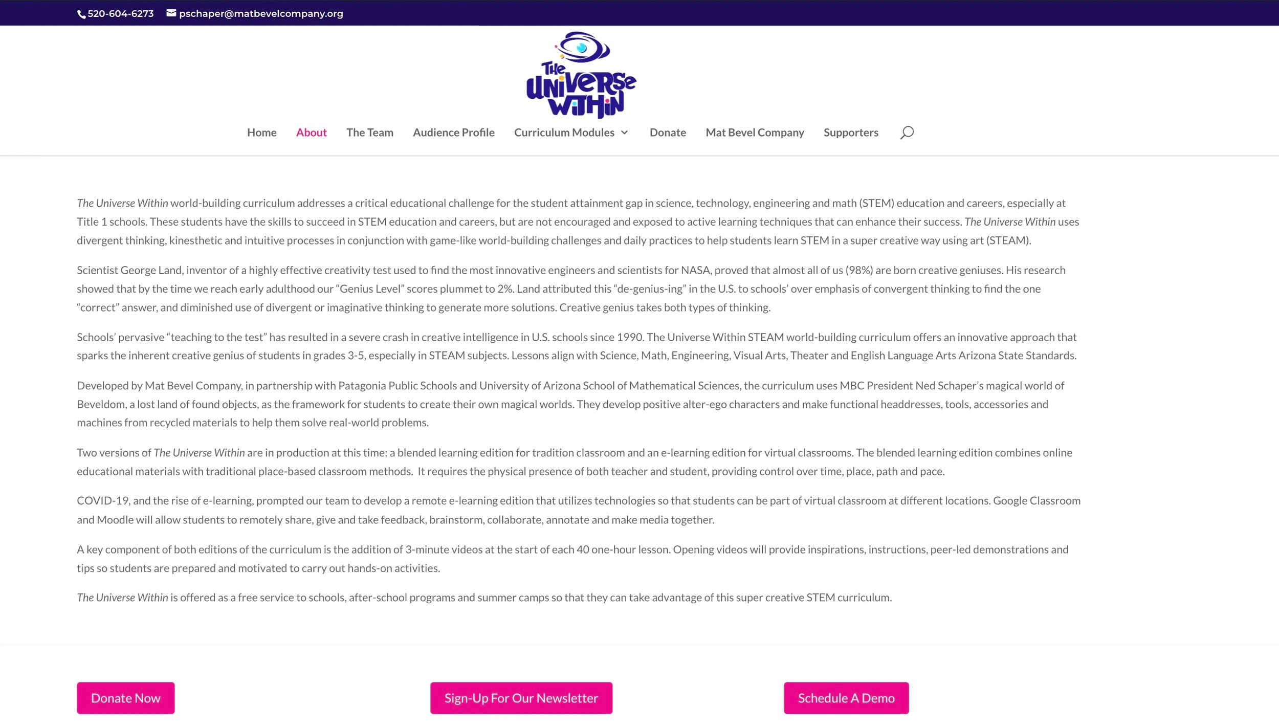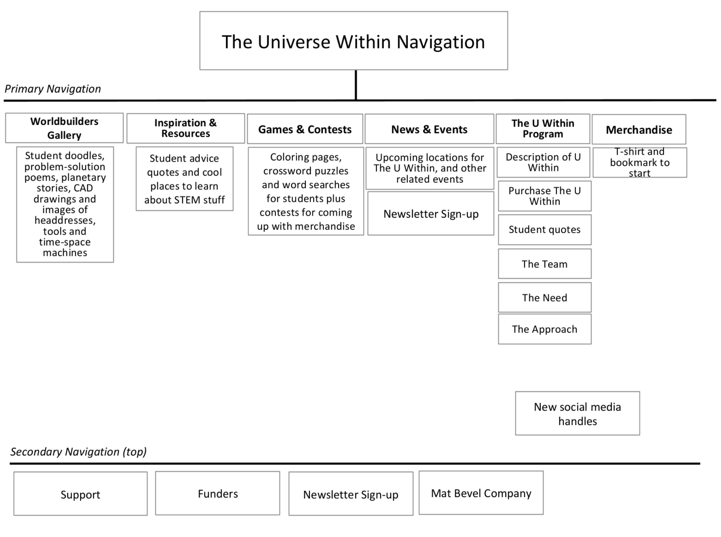 How might we create a re-design of The Universe Within website that engages students (age 7-13), scales curriculum, and corresponds with existing branding?