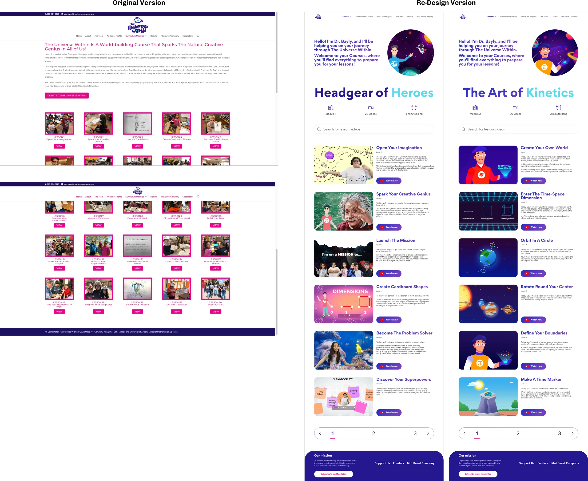 Website didn’t reflect the personality and tone of The Universe Within’s new 3-minute lesson introduction videos.