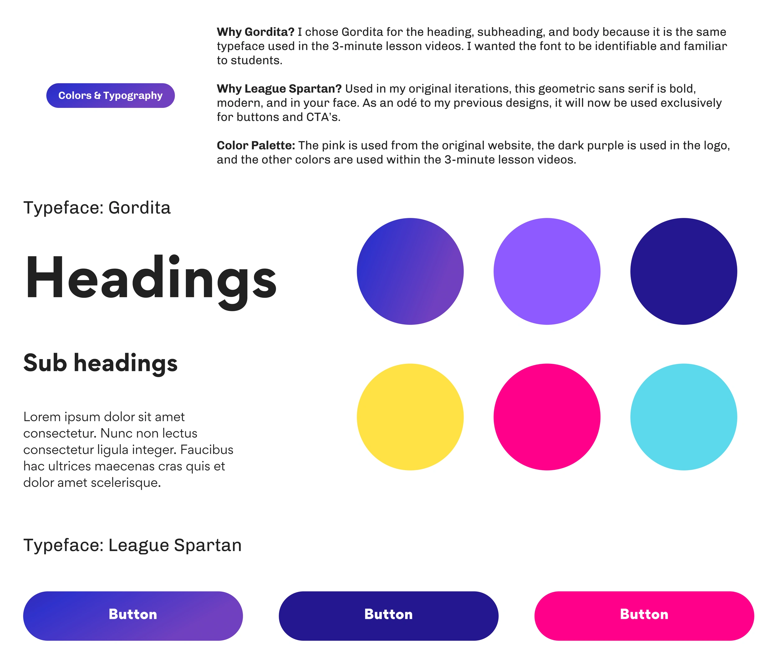 I realized what my old designs lacked: Inspiration and branding directly from the lesson videos themselves.