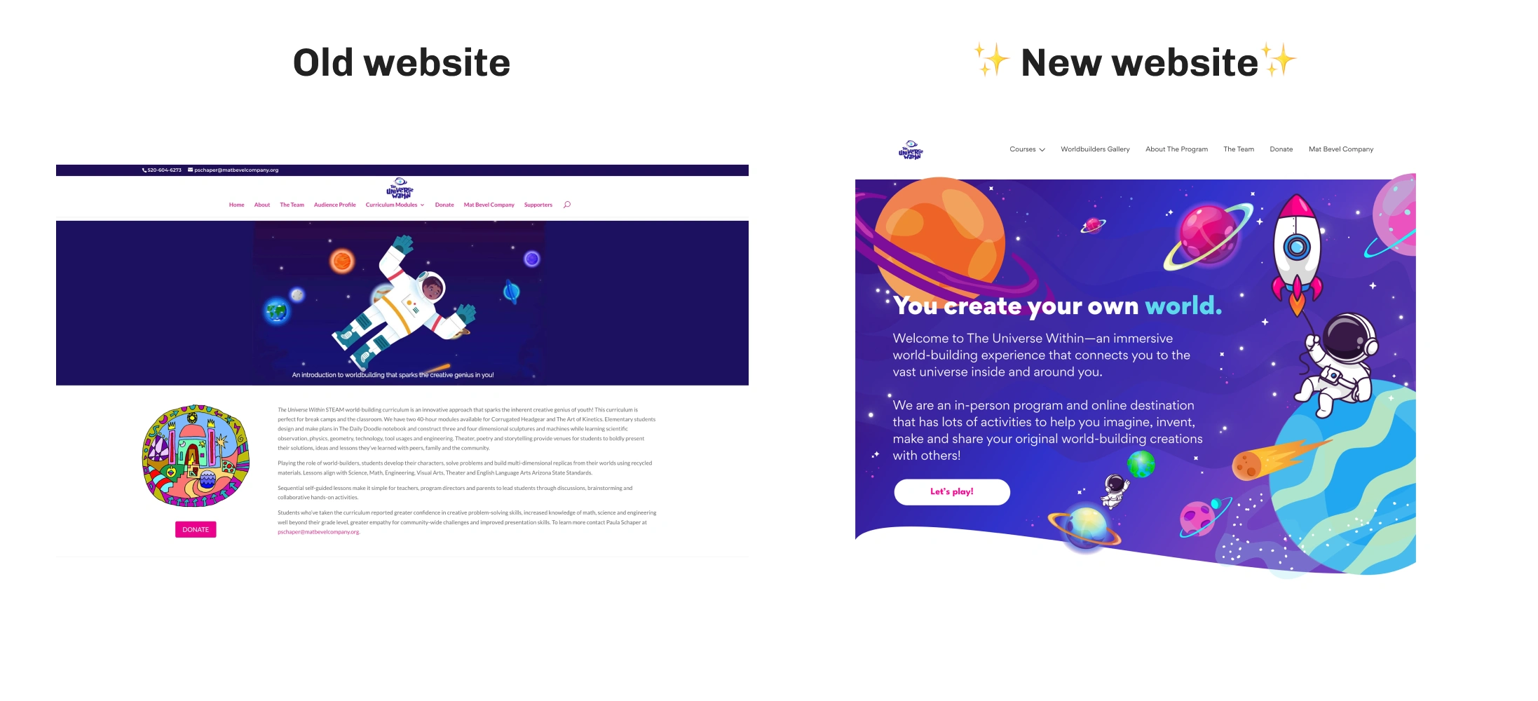Led the comprehensive redesign of 'The Universe Within,' transforming its branding to be more kid-friendly while also creating dedicated spaces for parents, sch