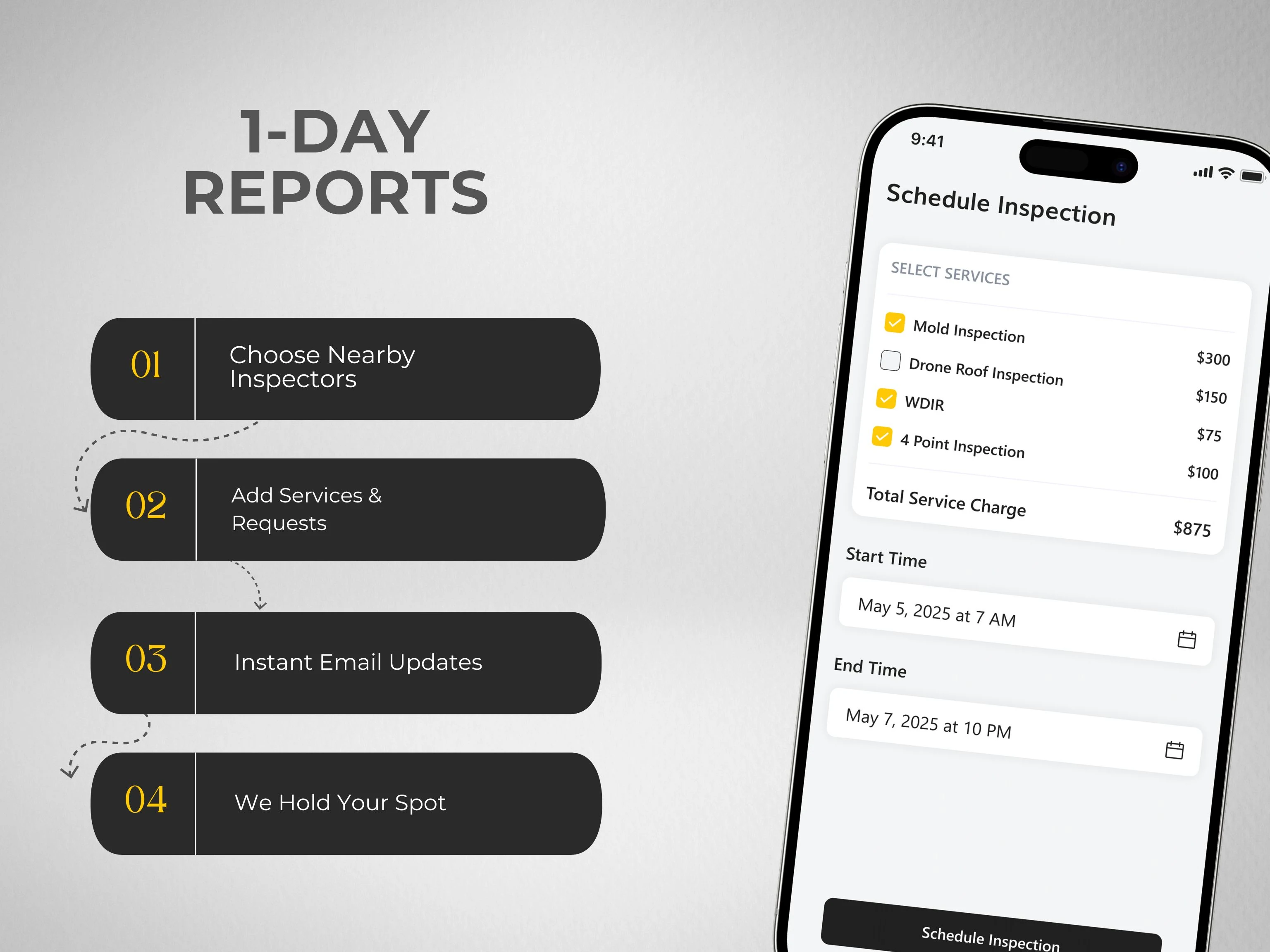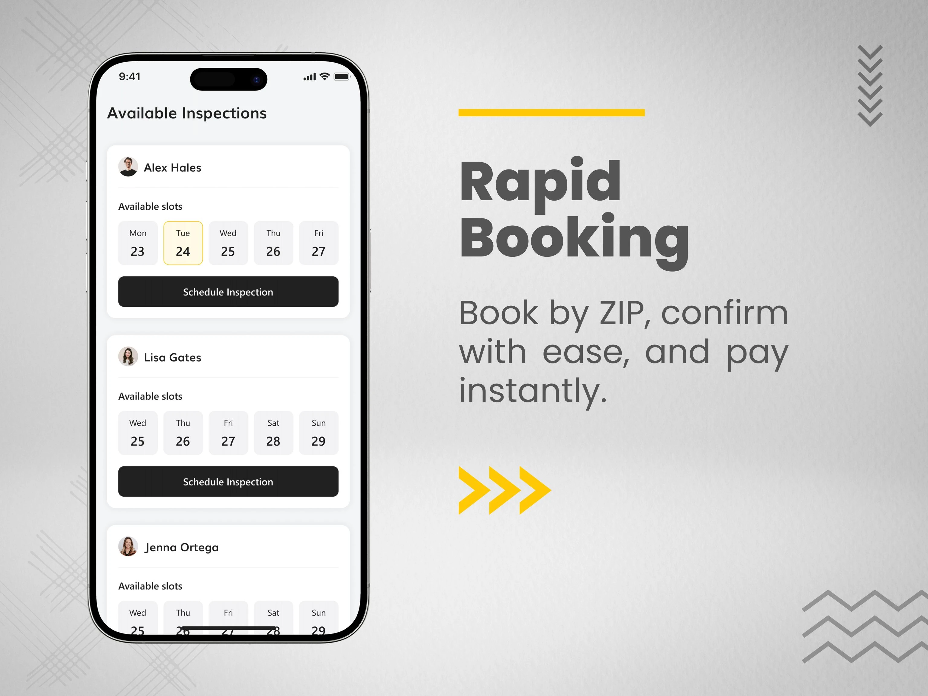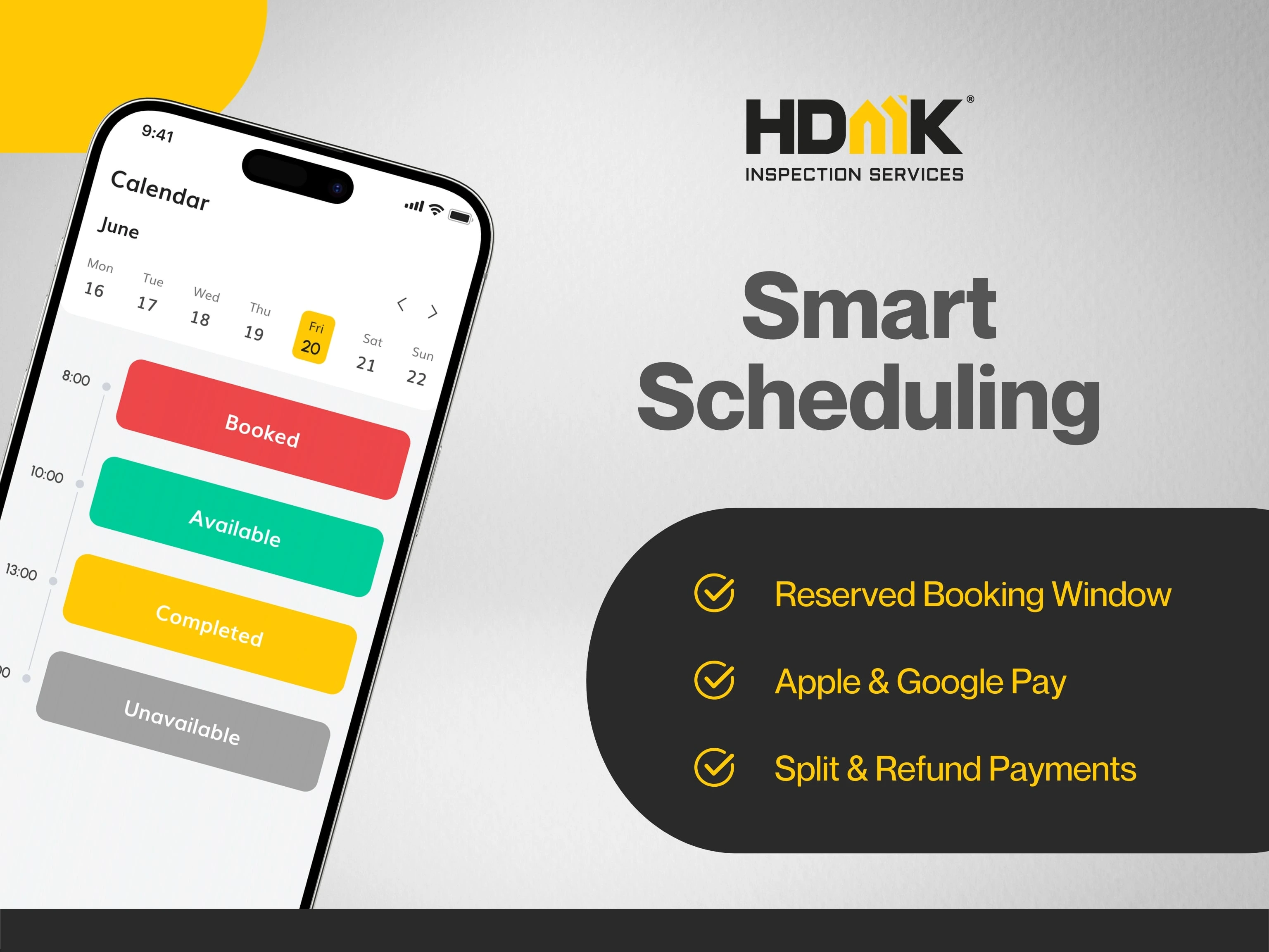 HDMK Scheduling is a real-time, ZIP code and map–based inspection booking platform built to simplify home inspection workflows for clients, real estate agents, and inspectors. With seamless calendar integration, e-signing, and automated email flows, the system ensures smooth coordination and rapid report delivery—from initial booking to post-inspection PDF generation.