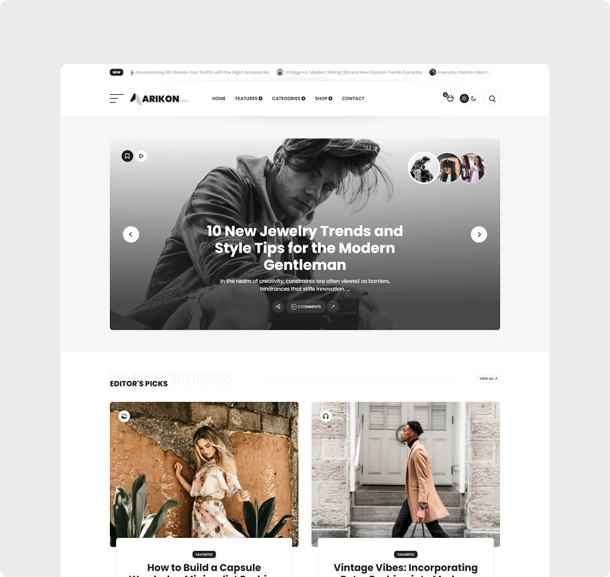 Developed Arikon, a clean WordPress blogging theme with multiple layouts.
