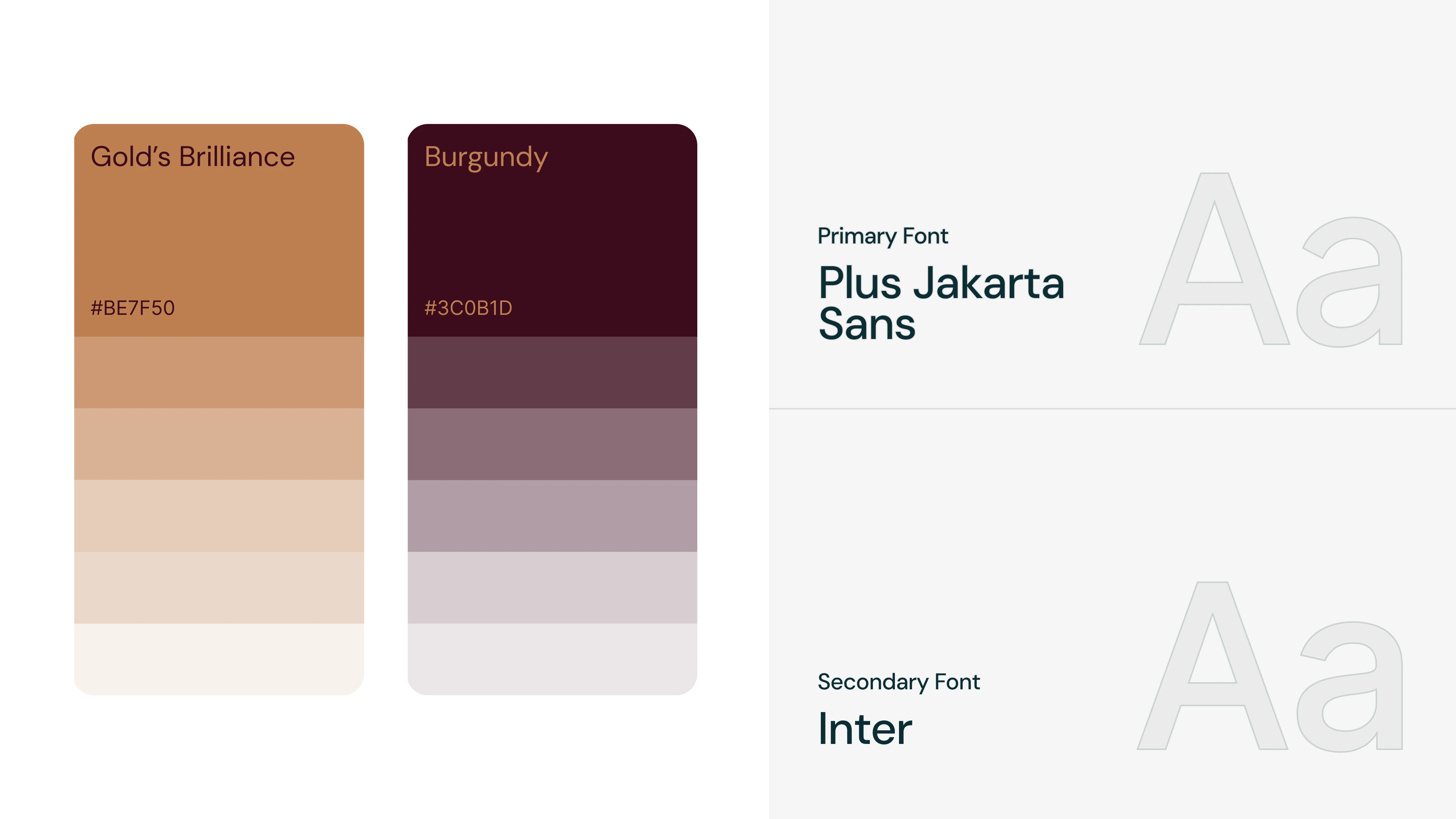 Burgundy & Gold palette: reflects heritage, discipline, and success
