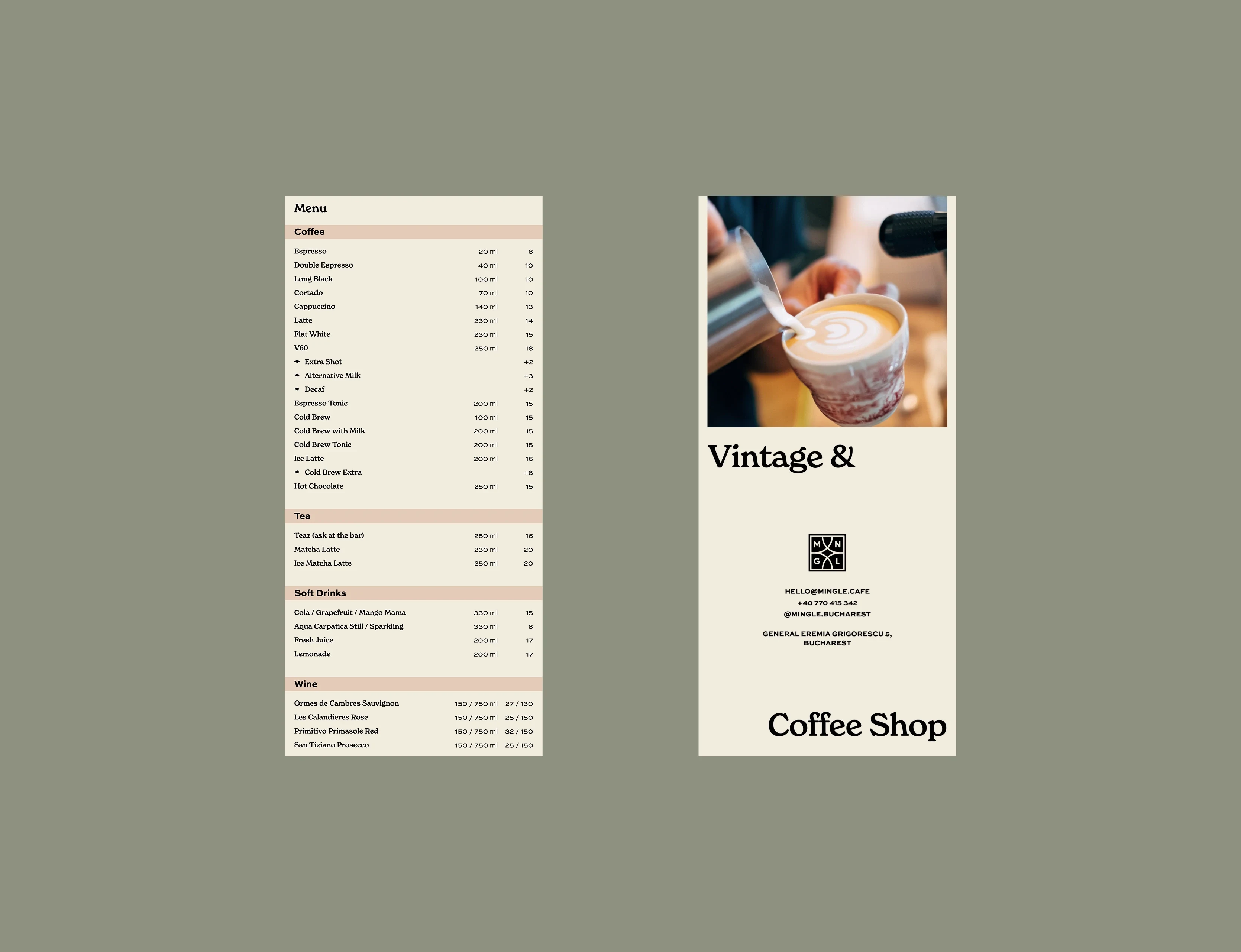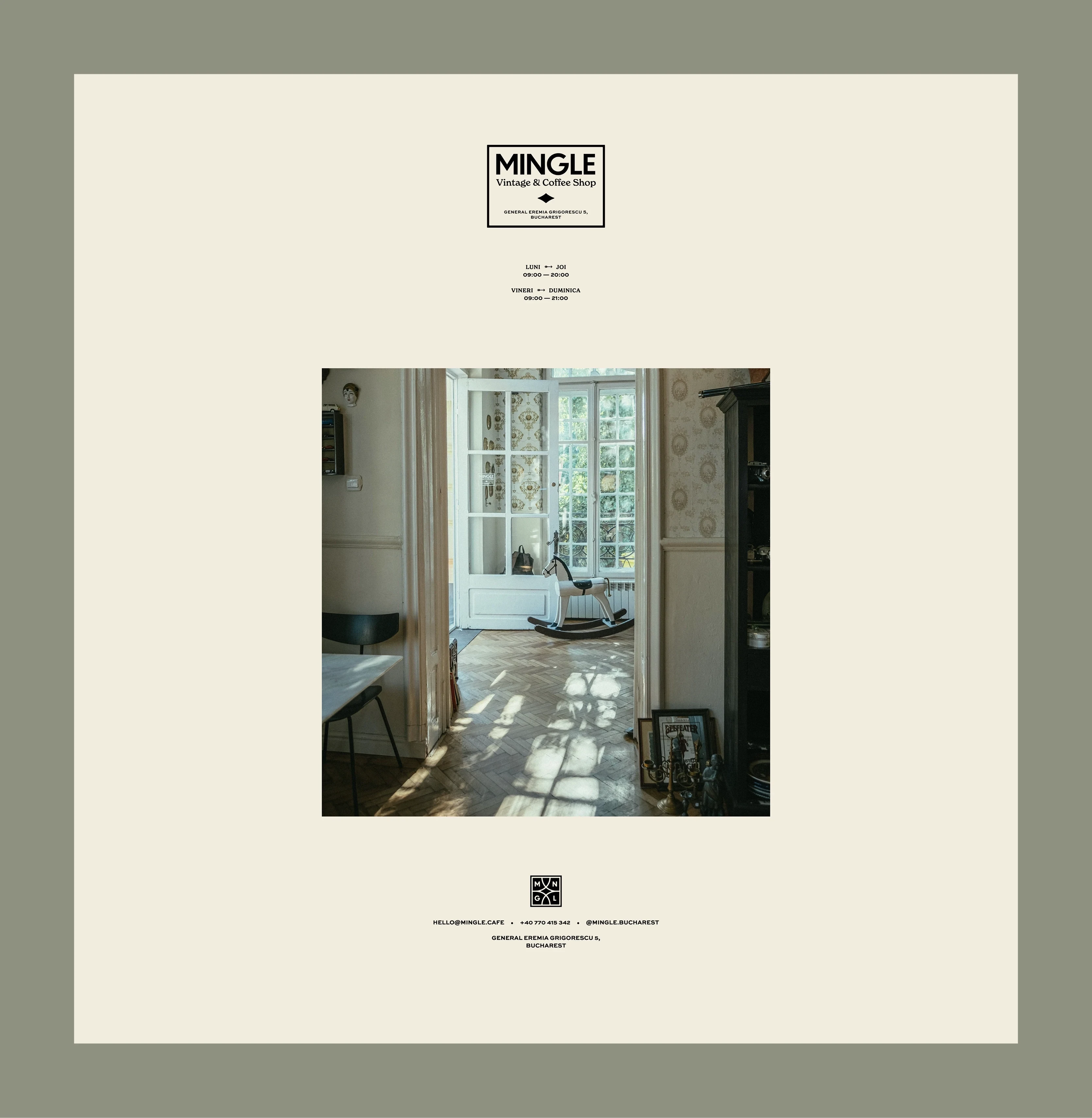 Mingle – Vintage & Coffee Shop: I worked on Naming, Visual Identity, and the landing page.