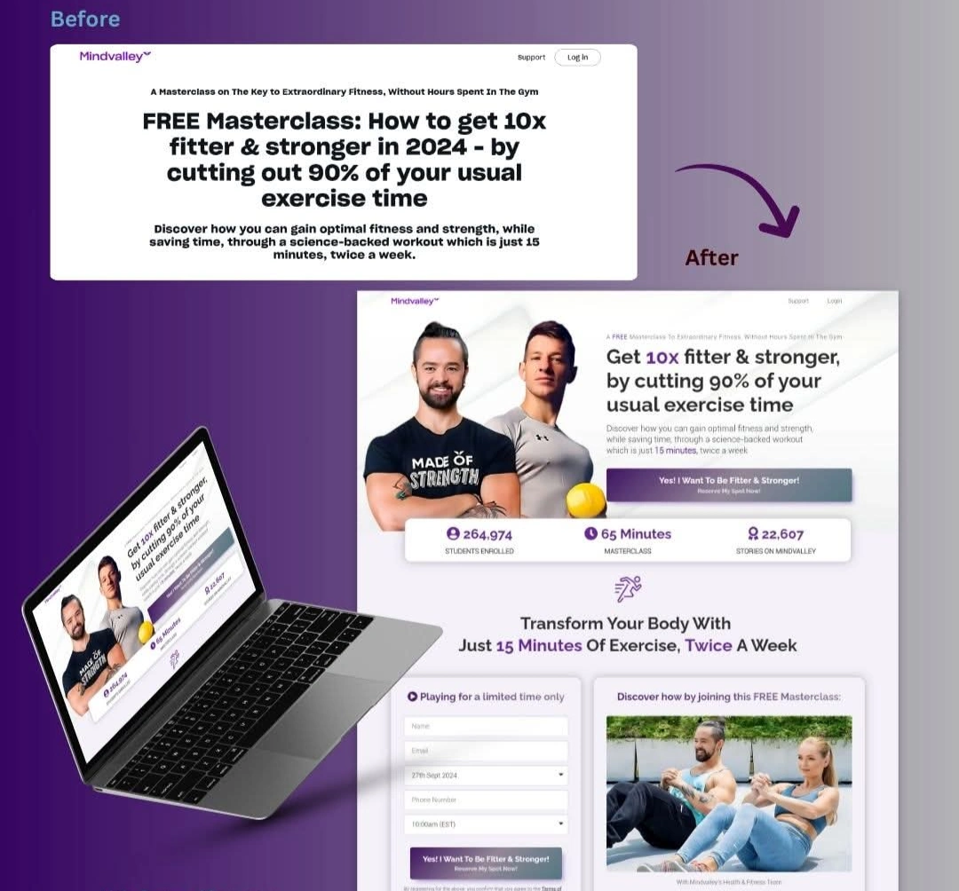 Built a responsive fitness sales funnel that boosted sign-ups and supported a successful product launch.