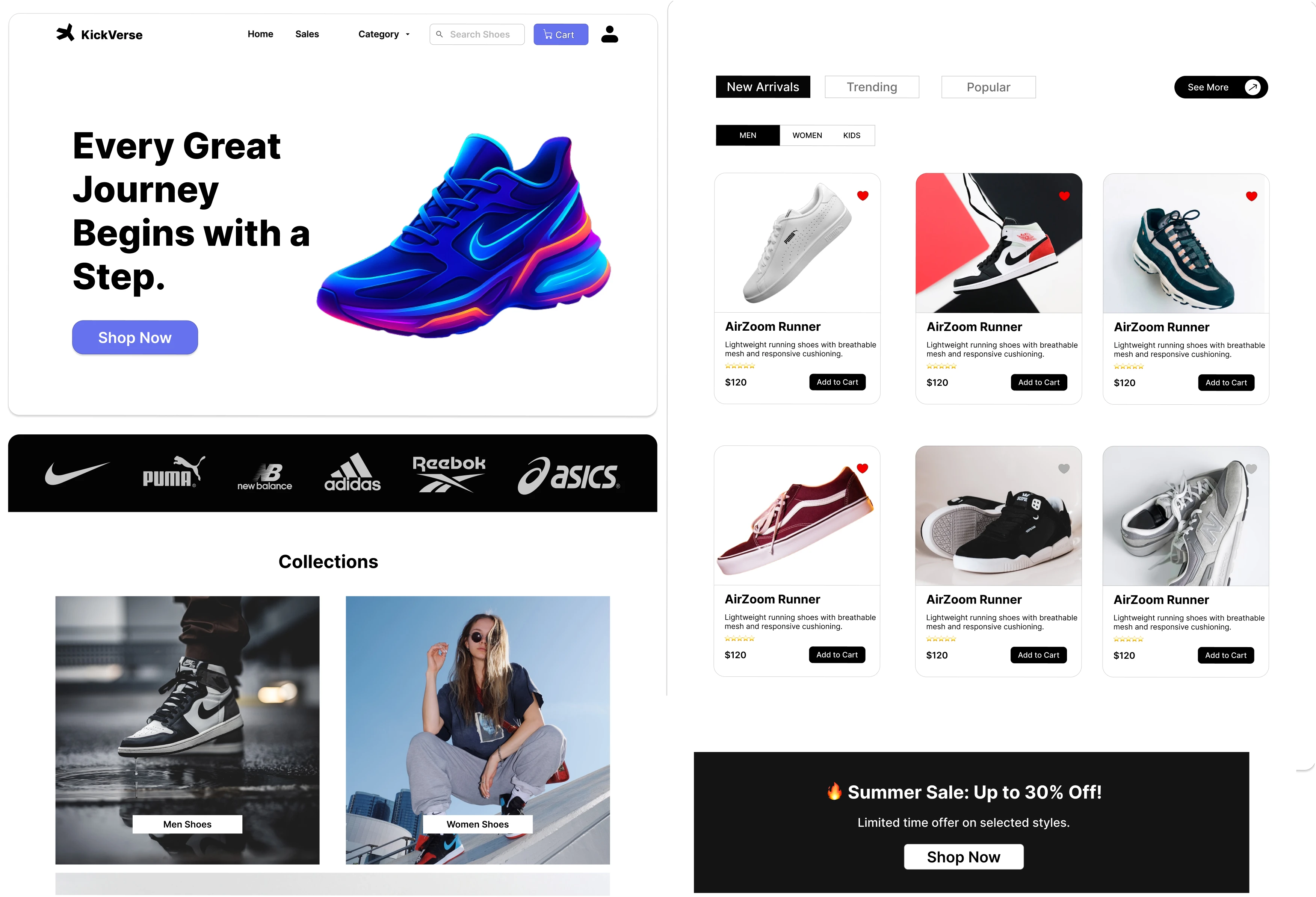KickVerse is a mobile-first e-commerce platform that simplifies sneaker shopping across multiple brands by centralizing checkout into one smooth experience.