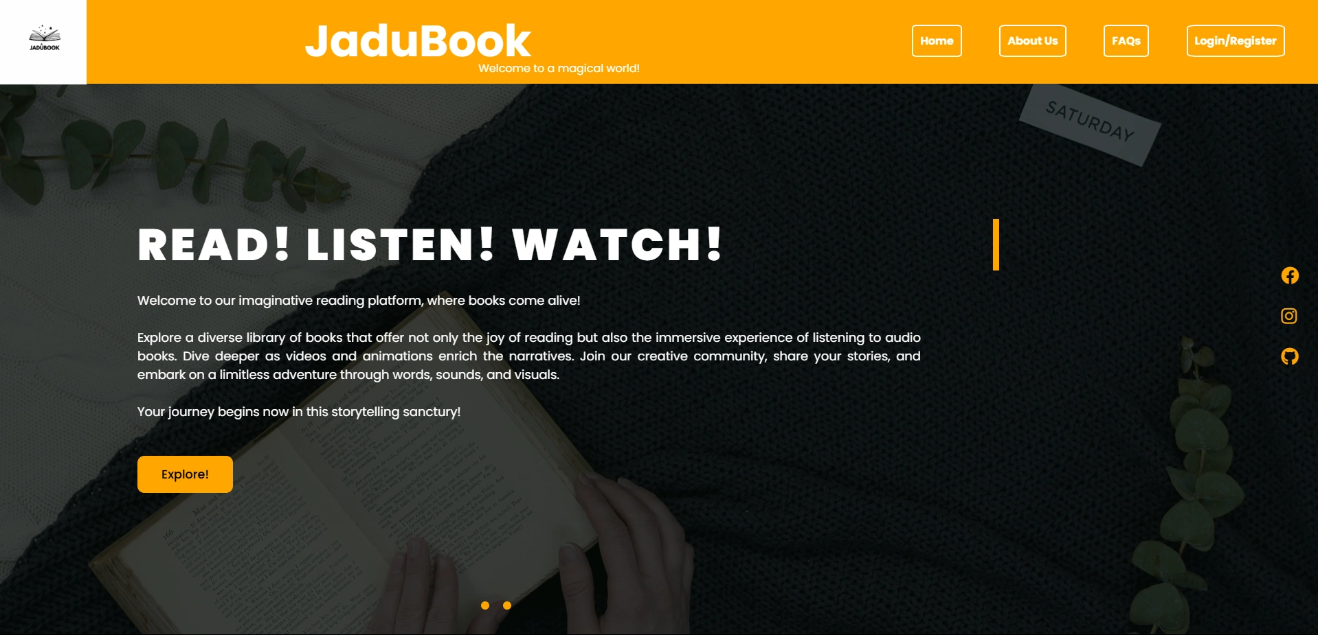 I developed JaduBook, a creative reading platform that transforms books into a multimodal experience with AI-generated audio narration and video storytelling. Readers can enjoy books in text form, listen to them as AI-narrated audiobooks, or watch AI-generated video companions that bring the stories to life.