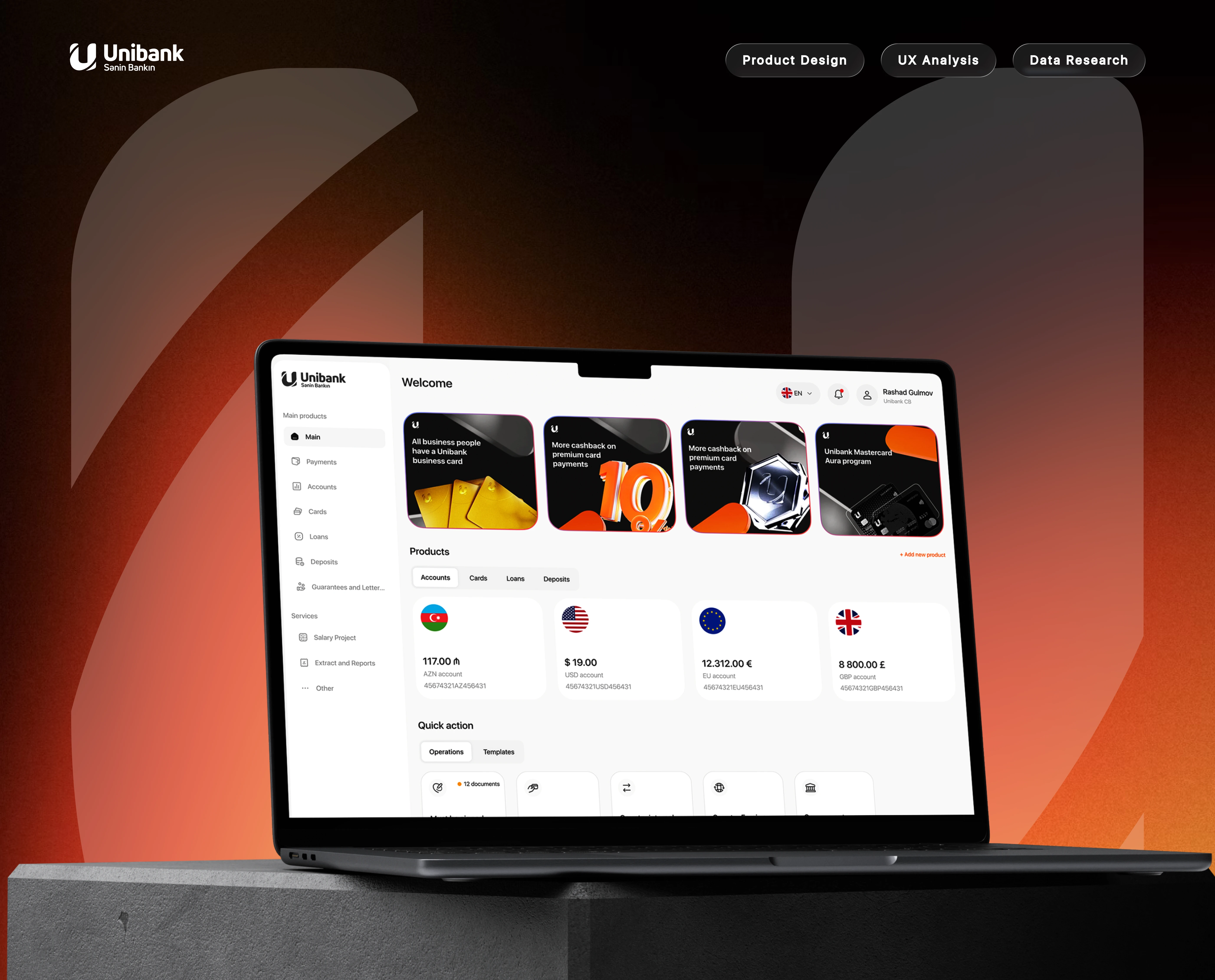 I led the product design process from UX analysis and user research to high-fidelity UI design in Figma. The platform enables companies to manage payments, transfers, accounts, approvals, and currency operations in one centralized environment. Special attention was given to usability, performance, and security, ensuring critical tasks can be completed quickly and with confidence.