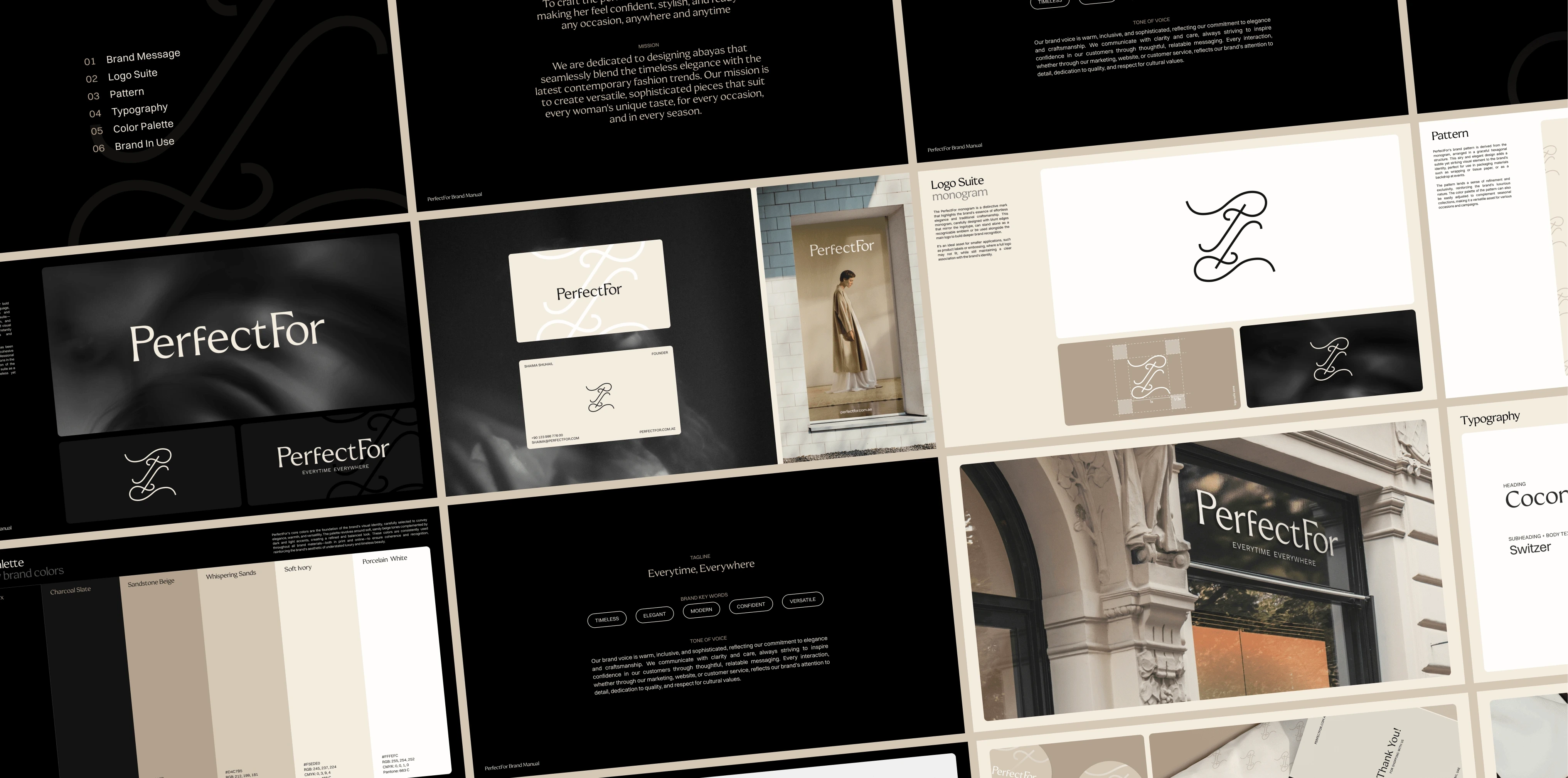 To ensure brand consistency across all touchpoints, PerfectFor was equipped with a full set of comprehensive brand guidelines. These guidelines cover everything from logo usage, typography, and color palettes to patterns and design applications across both print and digital platforms. The guidelines were designed to be a powerful tool, allowing PerfectFor to communicate its brand values clearly to other creatives, printers, developers, and partners involved in bringing the brand to life. This ensures a unified, on-brand presence no matter where or how the brand is represented.