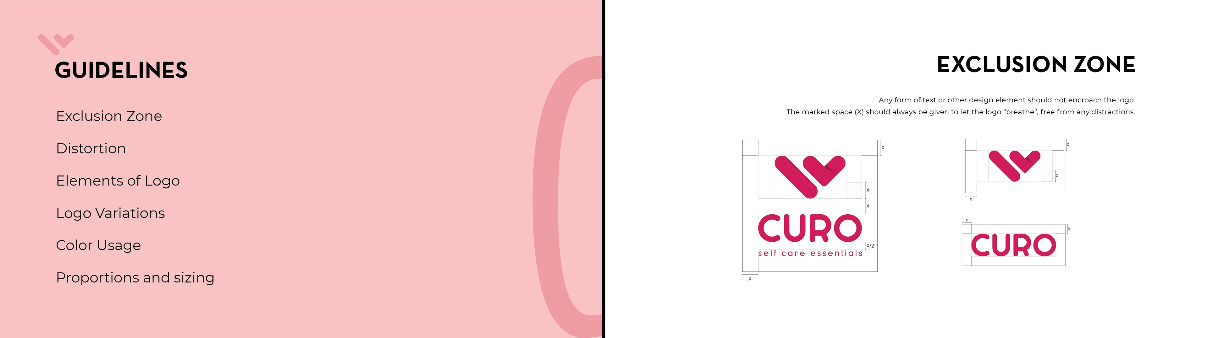 Brand Design for a self care product brand called CURO. Includes Logo, Typography, Color, and in depth brand guidelines.
