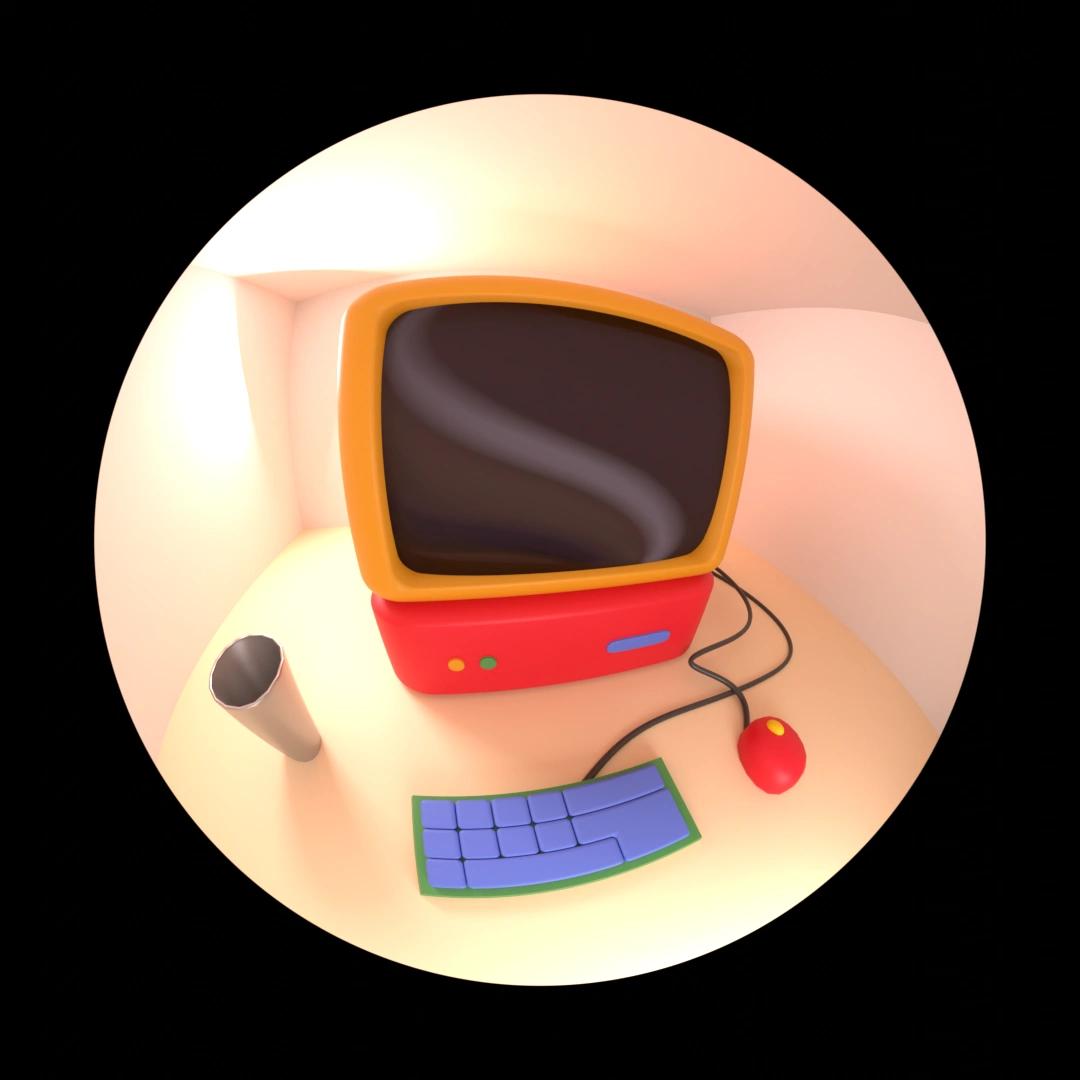 Artistic rendition of my computer and office, made in blender.