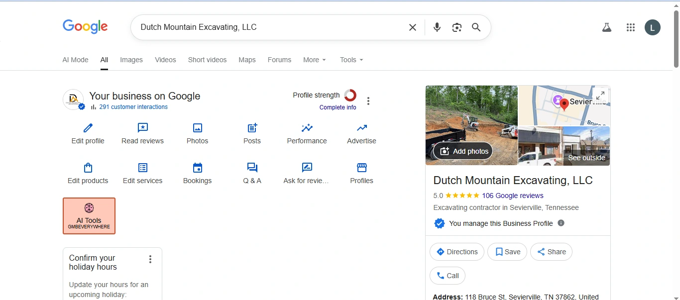 Dutch Mountain Excavating, LLC is a professional excavation and site preparation company offering a wide range of earthmoving, land clearing, and grading services for residential and commercial clients. The business relies heavily on local search visibility to attract property developers and homeowners in need of excavation services.