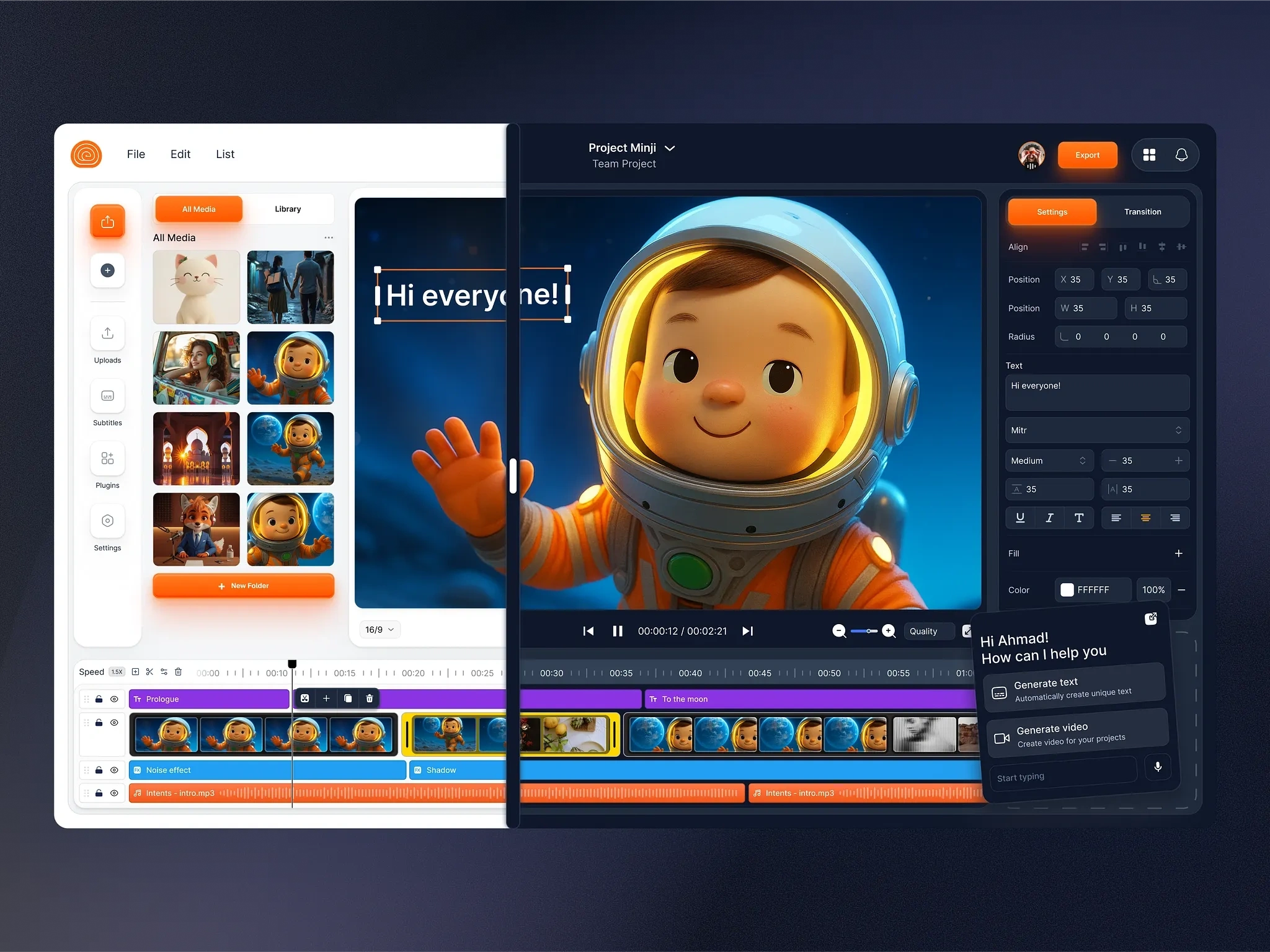 AI-powered Video Editor Interface: This concept is designed to make video creation more intuitive, fun, and collaborative and from drag-and-drop editing.
