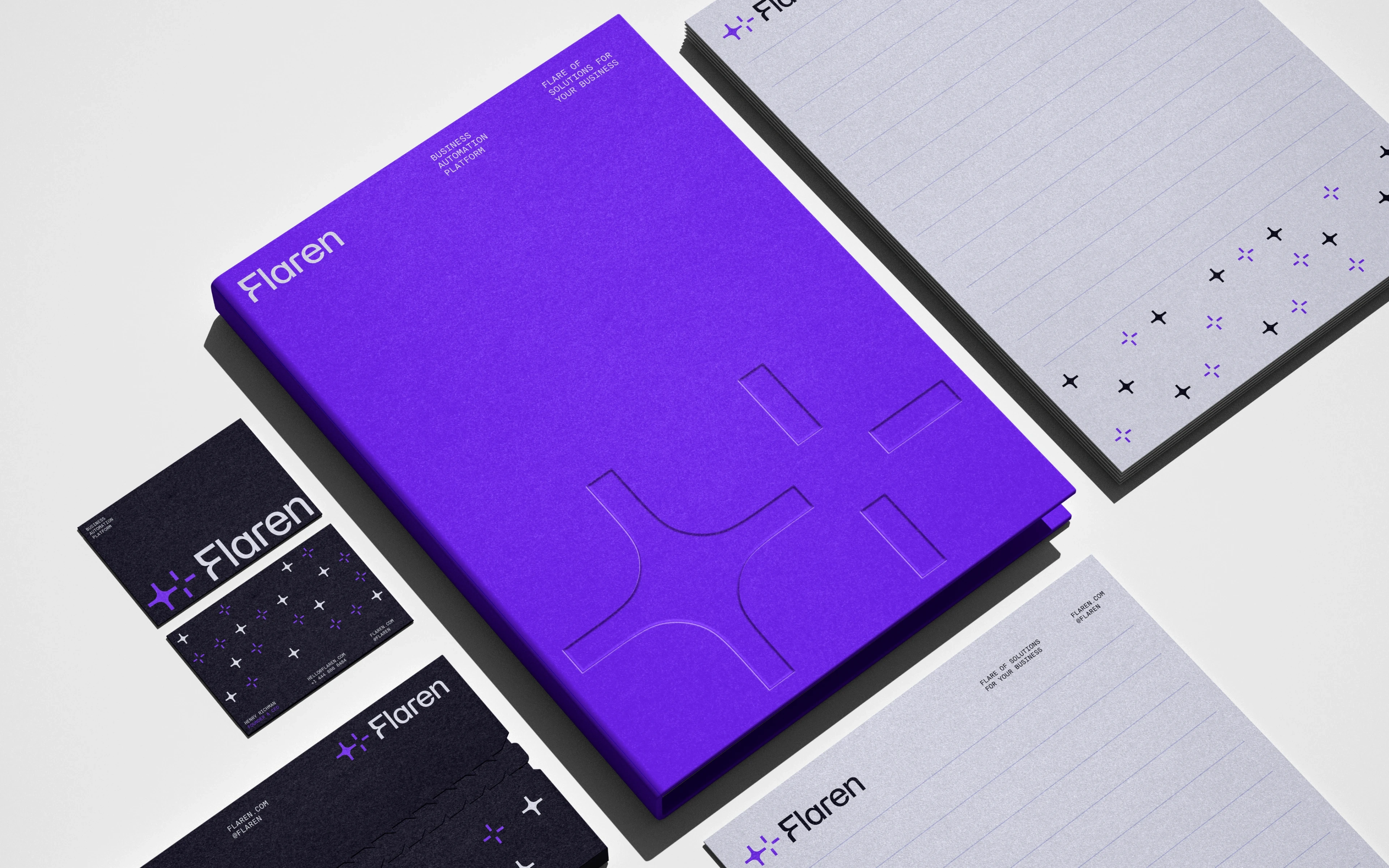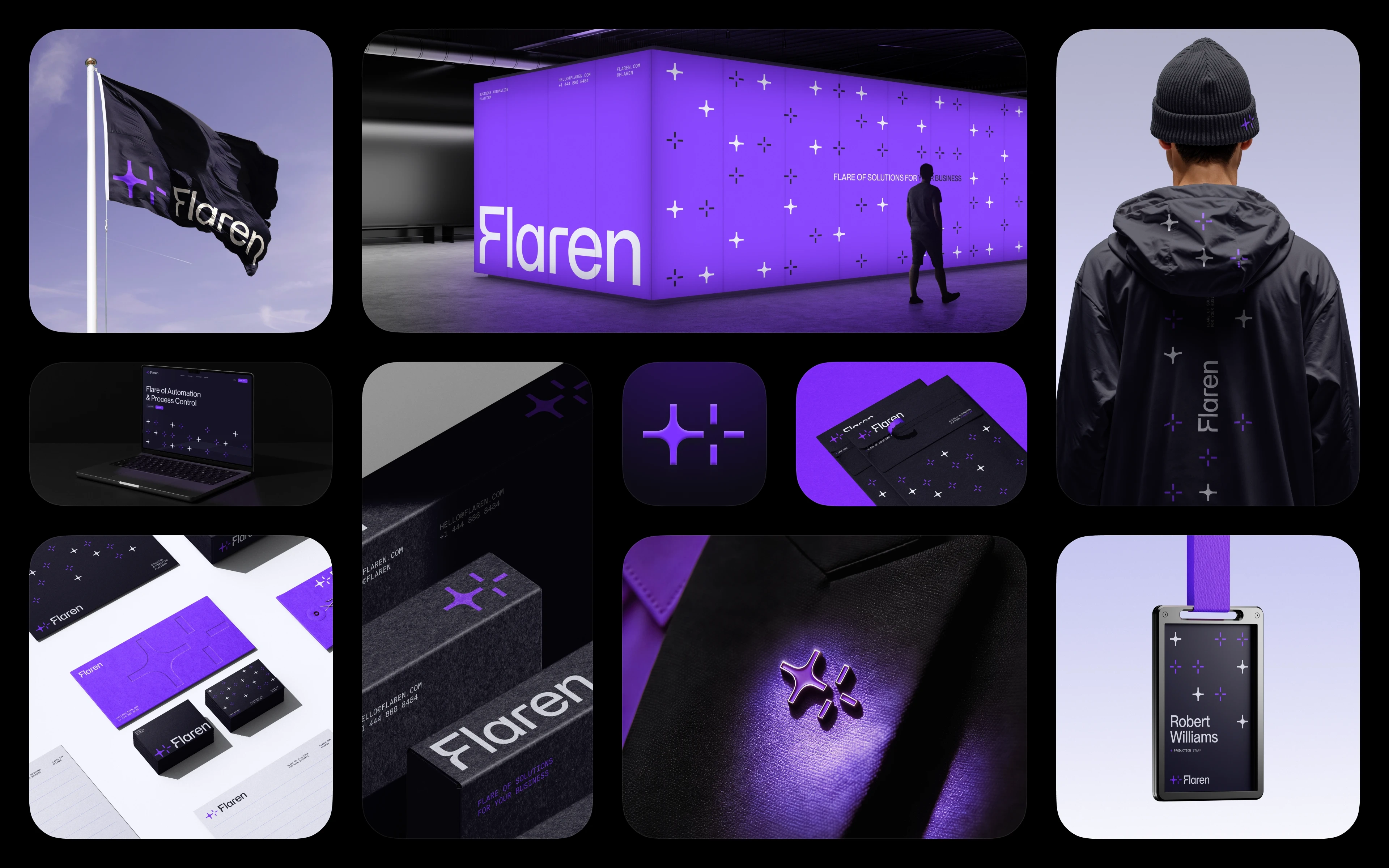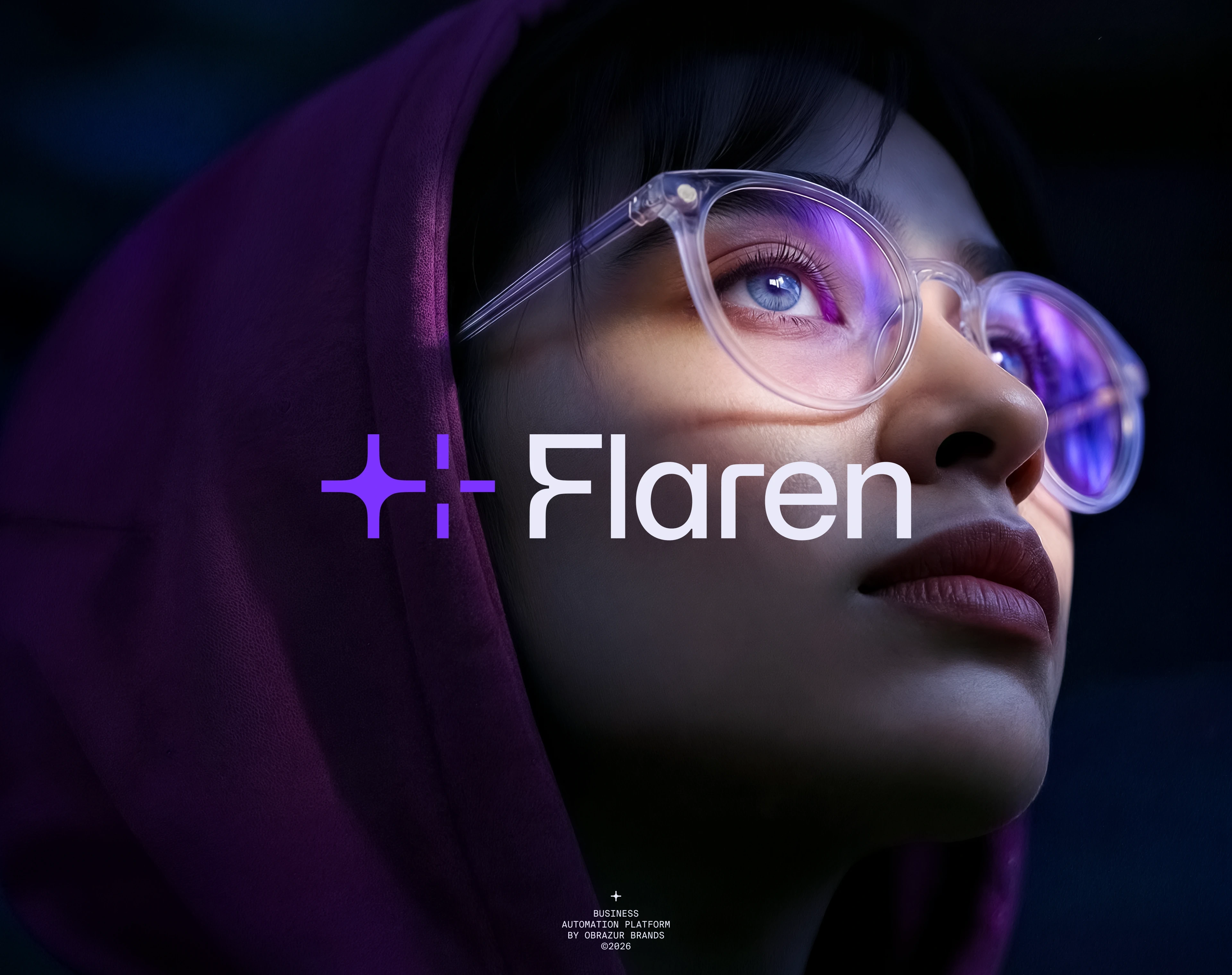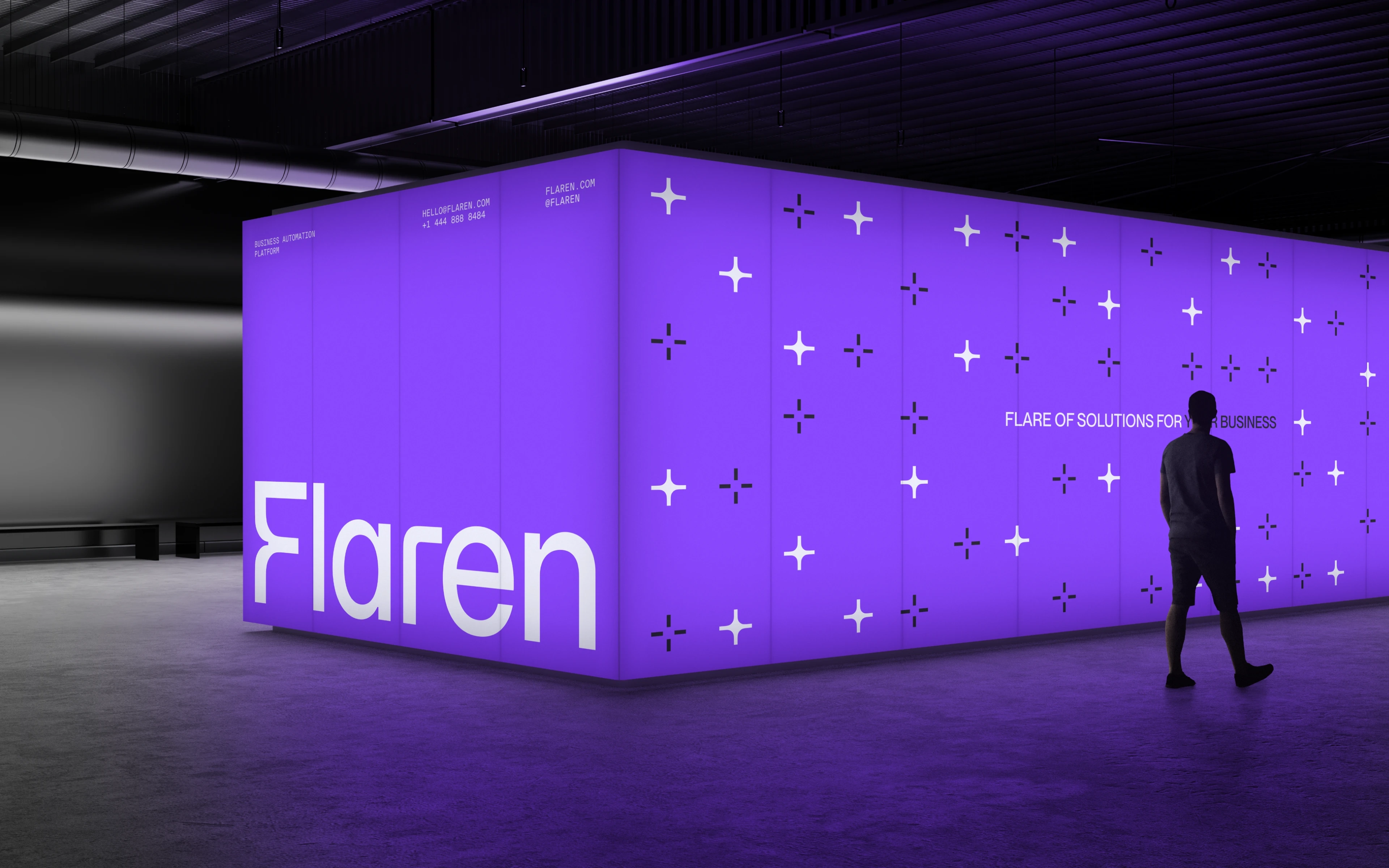 Flaren is a young startup in the field of business management automation powered by AI technologies. At the core of the logo is a symbol that merges the imager…