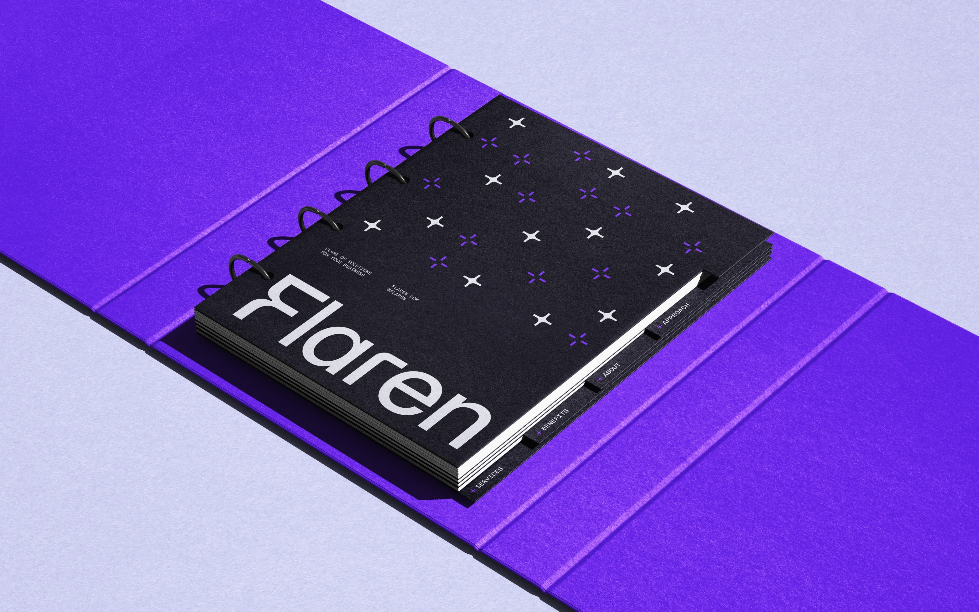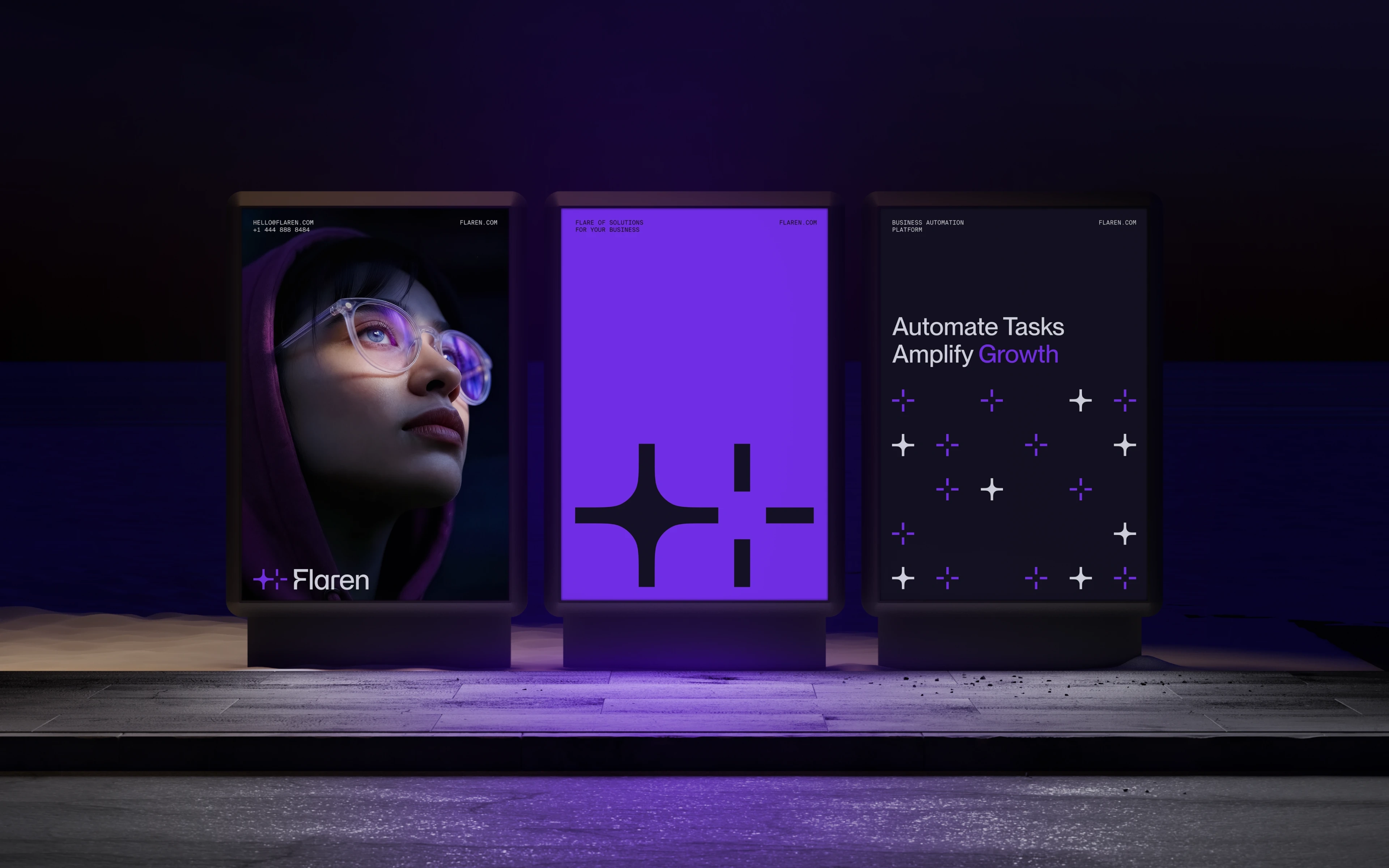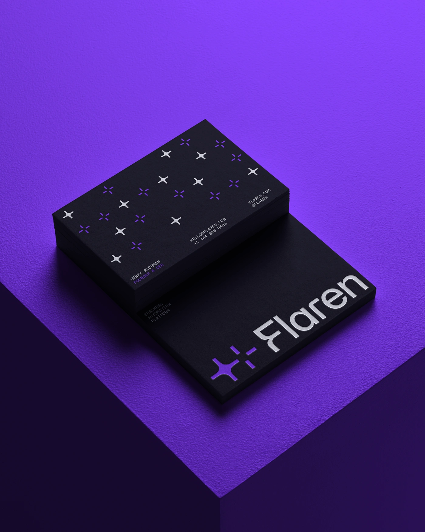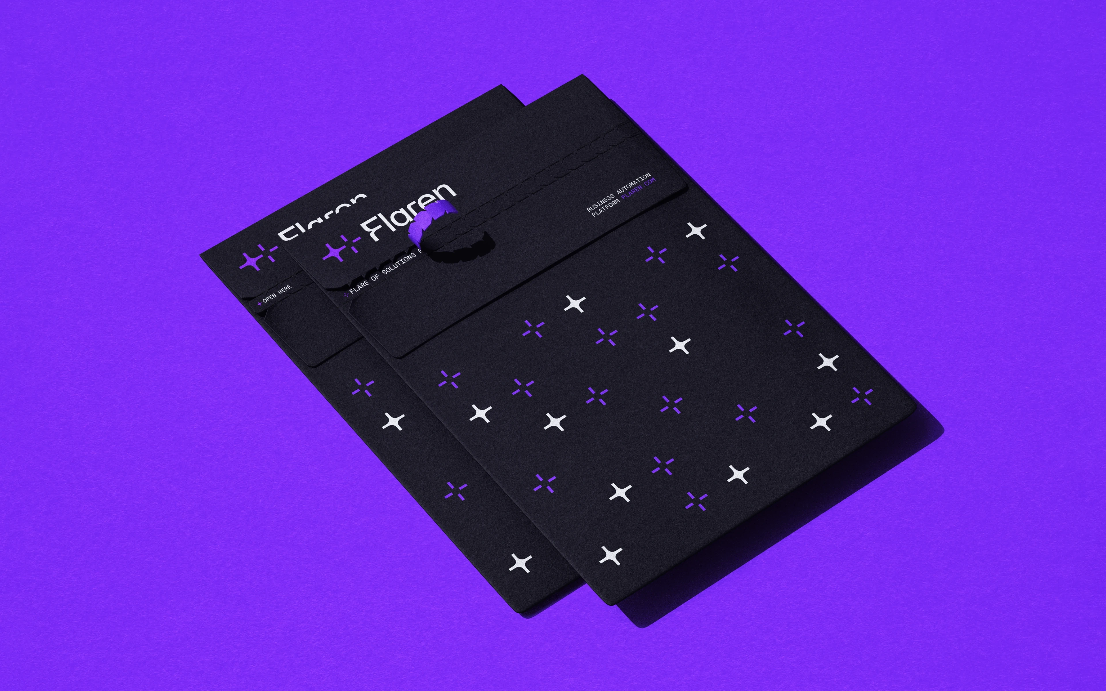 Flaren is a young startup in the field of business management automation powered by AI technologies. At the core of the logo is a symbol that merges the imager…