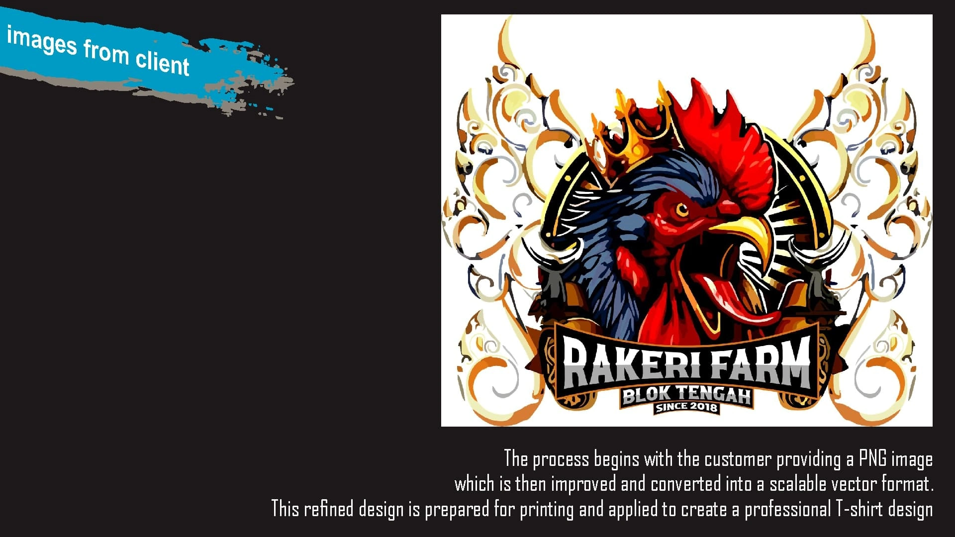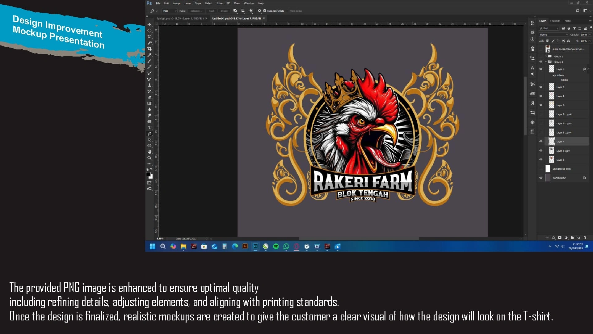 This project showcases the complete T-shirt design process, from enhancing a PNG image to vectorization, color separation, mockups, and printing.